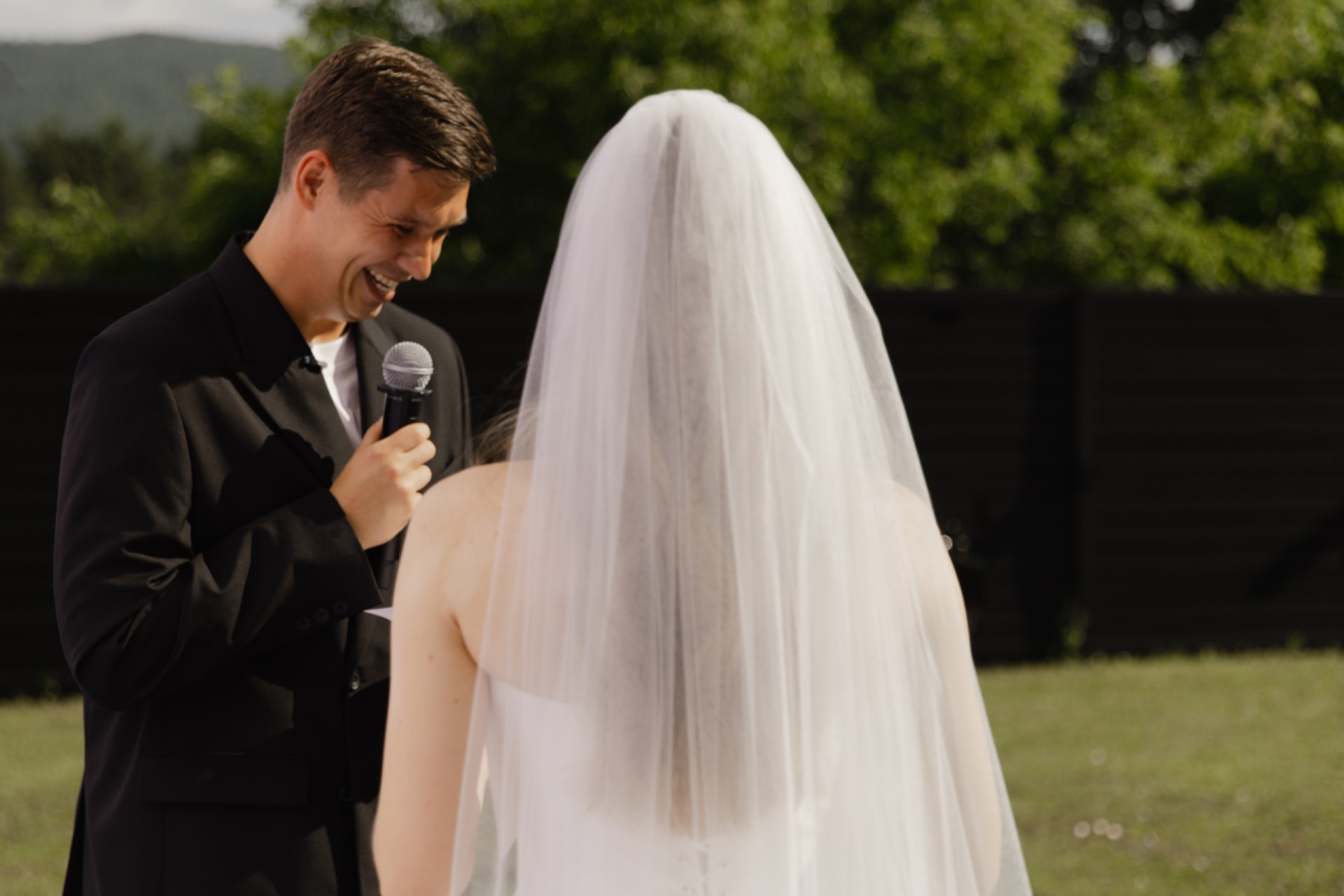Больше всего нам запомнилась церемония. За десять минут до её начала погода резко испортилась: гроза, сильный ветер, ливень и даже град. Мы изначально планировали провести церемонию на природе, но когда от порыва ветра снесло арку, нам показалось, что мечте не суждено сбыться.