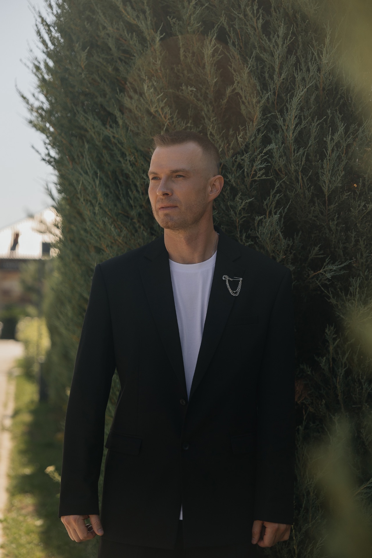 Костюм для Лёши мы тоже искали долго. В одном из магазинов я увидела идеальный образ жениха: брюки и пиджак в стиле оверсайз, а вместо рубашки — белая футболка.