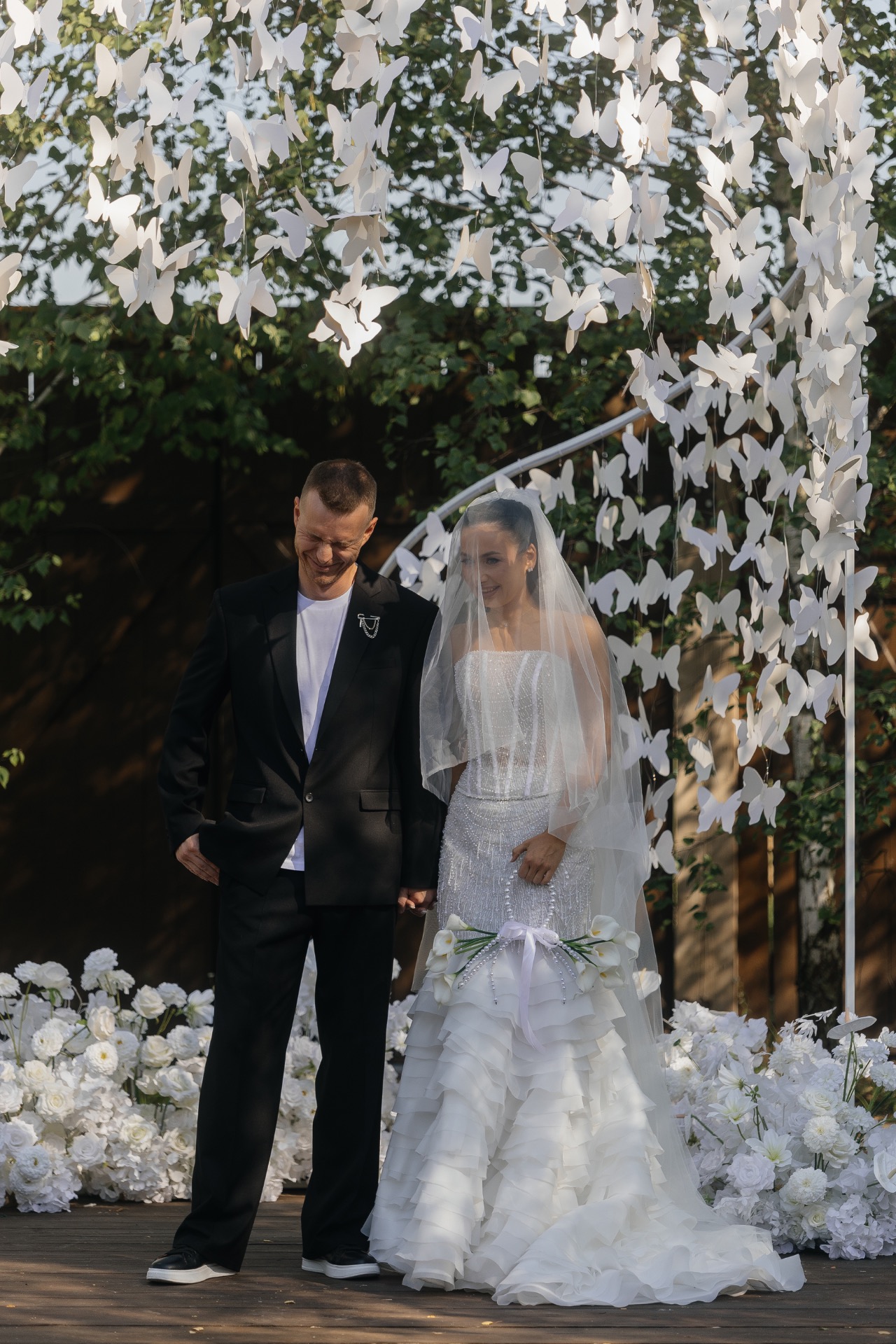 Готовиться к свадьбе мы начали в январе 2025 года. Я точно знала, чего хочу: чёрно-белая классика, лёгкость, минимализм и элементы в форме бабочек в декоре. Этой идеей я вдохновилась, листая свадебные подборки на просторах интернета.