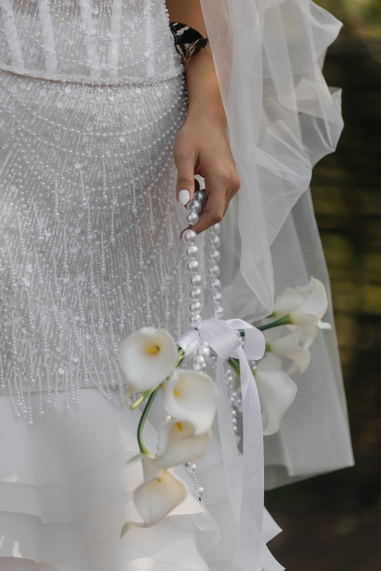 У нас получилось идеальное платье-трансформер со шлейфом, который я отстегнула после окончания церемонии. Сначала Татьяна сшила корсет и короткую юбку, а потом передала их мне, чтобы я сама нашивала бусины и декор.