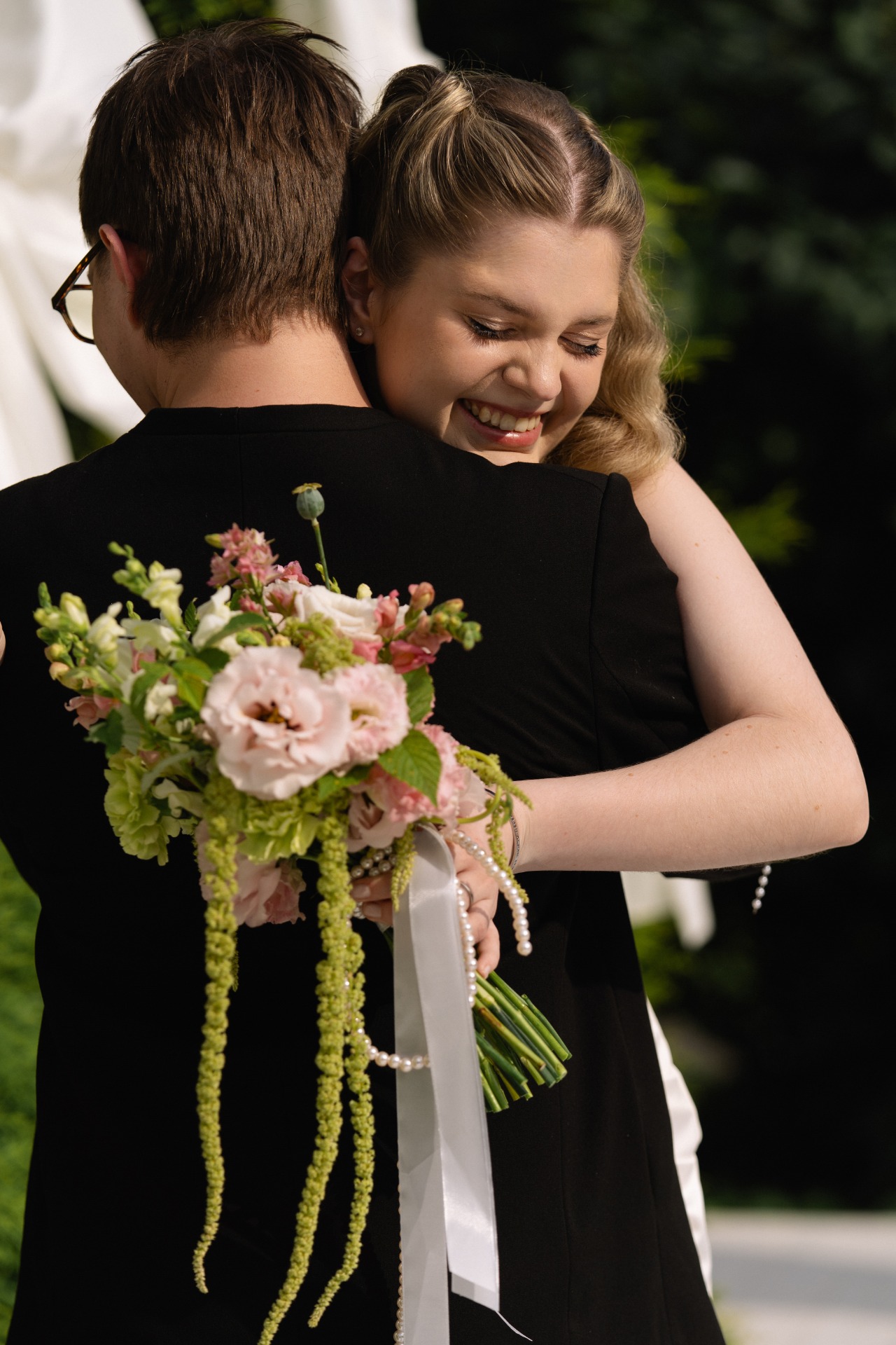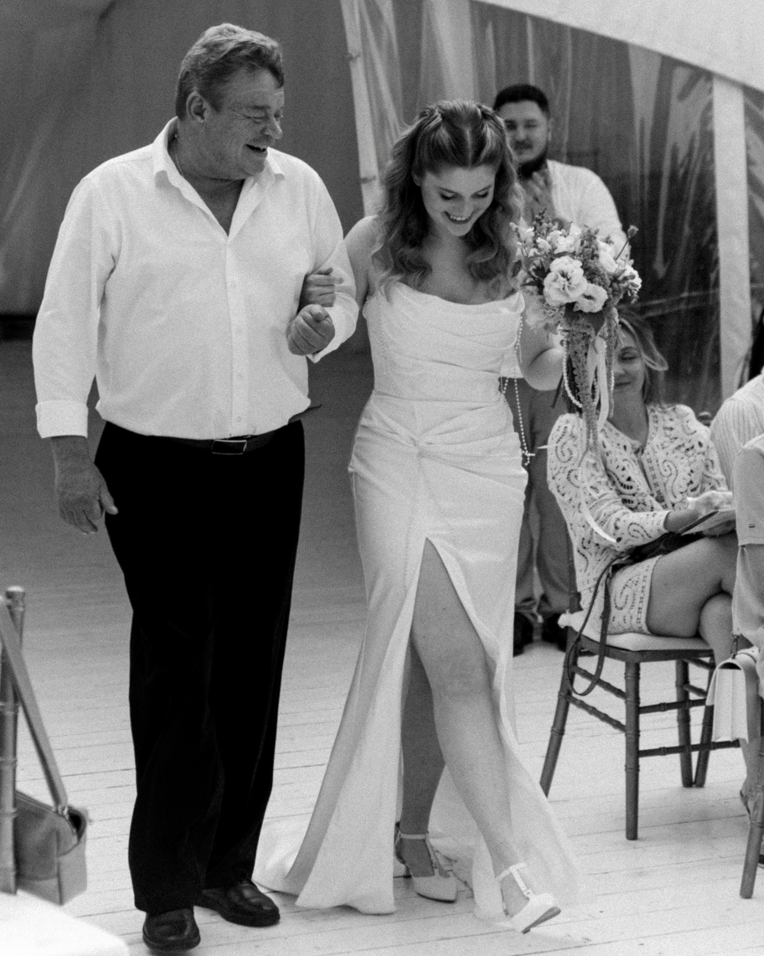 Макс, наш ведущий, подготовил такую речь на церемонии, что гости начали рыдать ещё до выхода Руслана. Пока я стояла и ждала своей очереди выходить, мой папа старался меня смешить, чтобы макияж не потёк. Всеми силами я старалась держать себя в руках, но всё равно заплакала, как только посмотрела на Руслана.