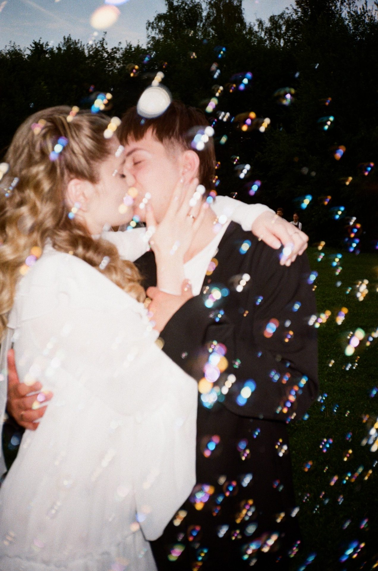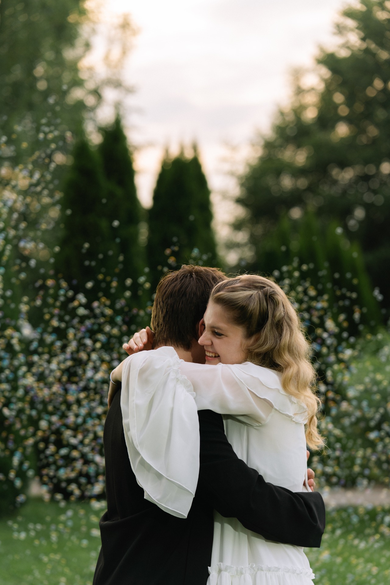 Ещё один трогательный момент случился во время нашего первого танца: наши подрядчики на припеве запустили тысячу мыльных пузырей, которые медленно долетели до нас и создали атмосферу сказки.