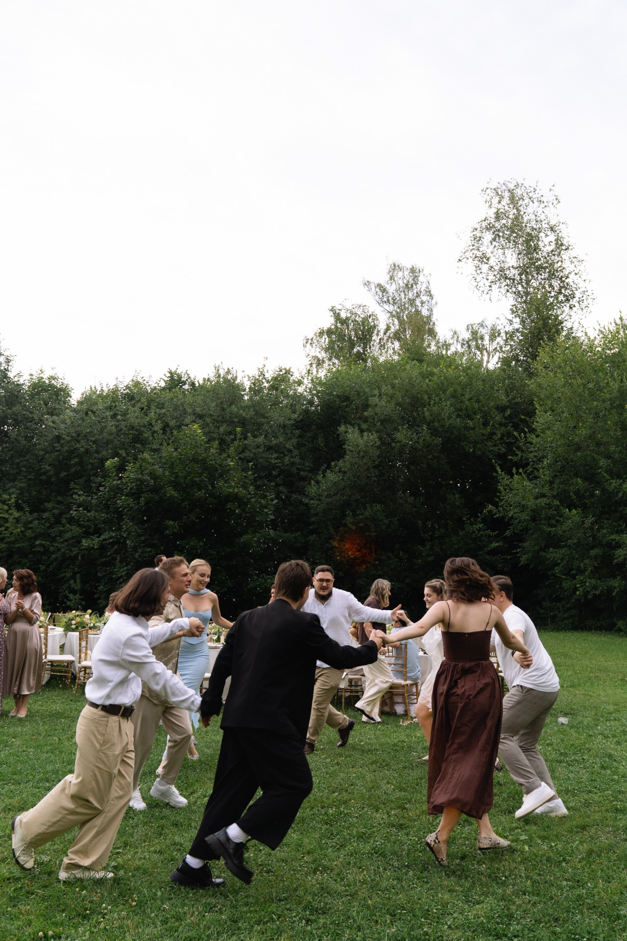 Особенно сильно мне запомнилось, как гости снимали свою обувь и танцевали босиком на траве! Никто не хотел сидеть за столами, все бесконечно танцевали и пели.