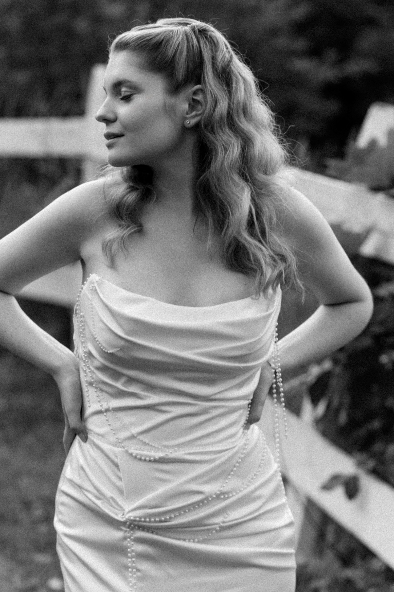 Мы вместе перемерили 10 платьев за 2 часа, и я нашла то самое совершенно случайно. Оно оказалось в моём размере, и подшить нужно было только талию и длину. А ещё оно было бракованным, так как ленты из бусин должны были быть закреплены на корсете, но в итоге они свободно висели, и мне это особенно понравилось! Благодаря этой детали создавалось впечатление небольшой небрежности и лёгкости.