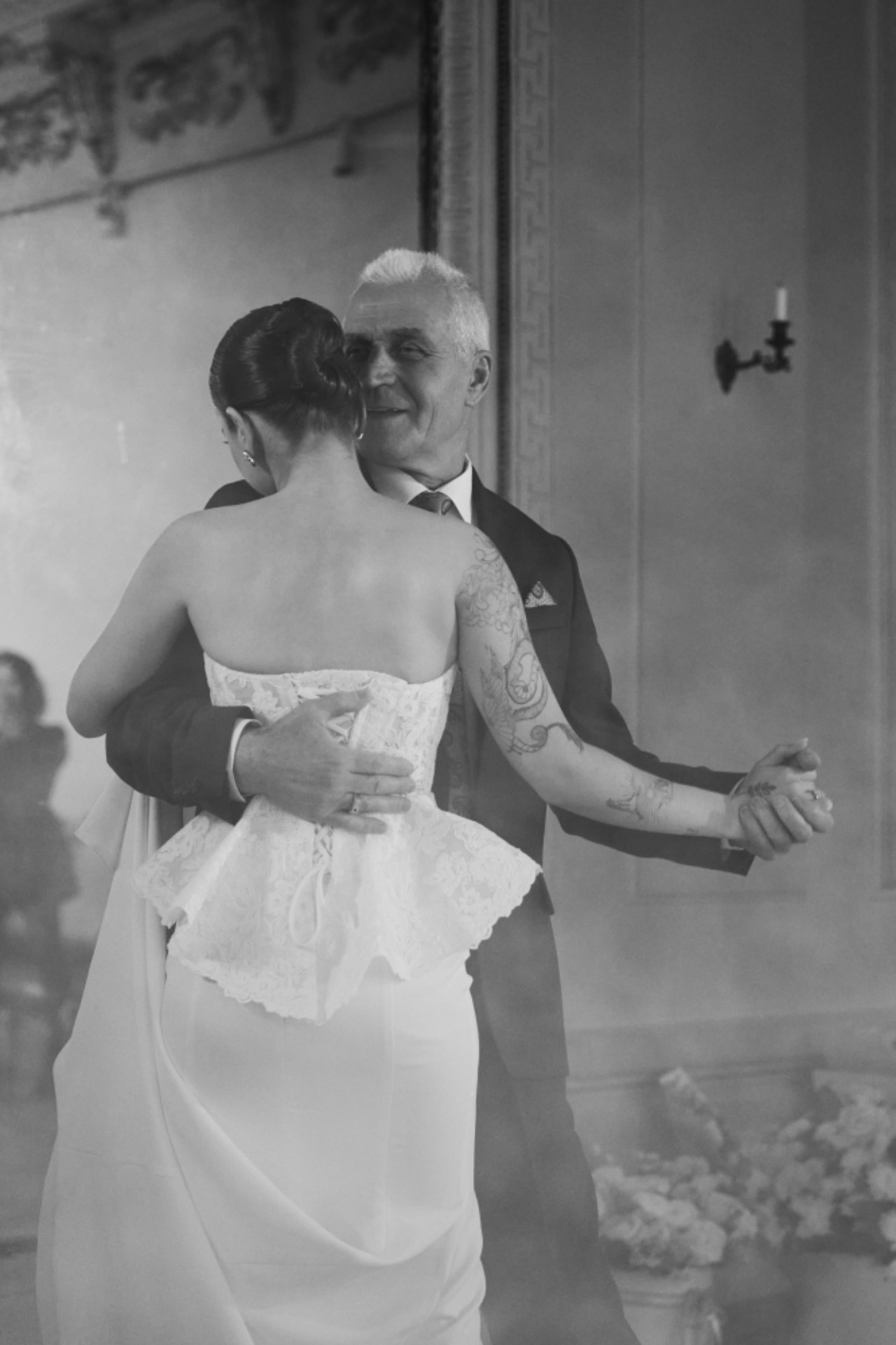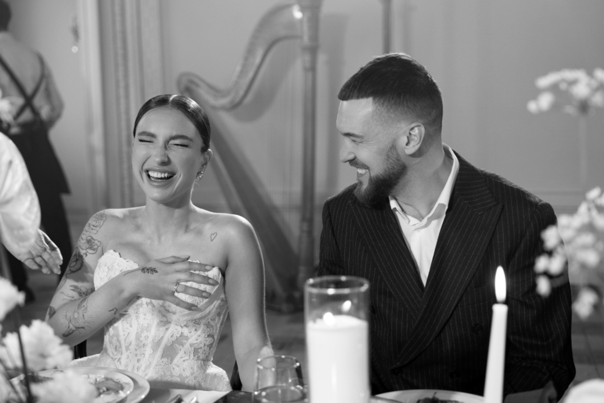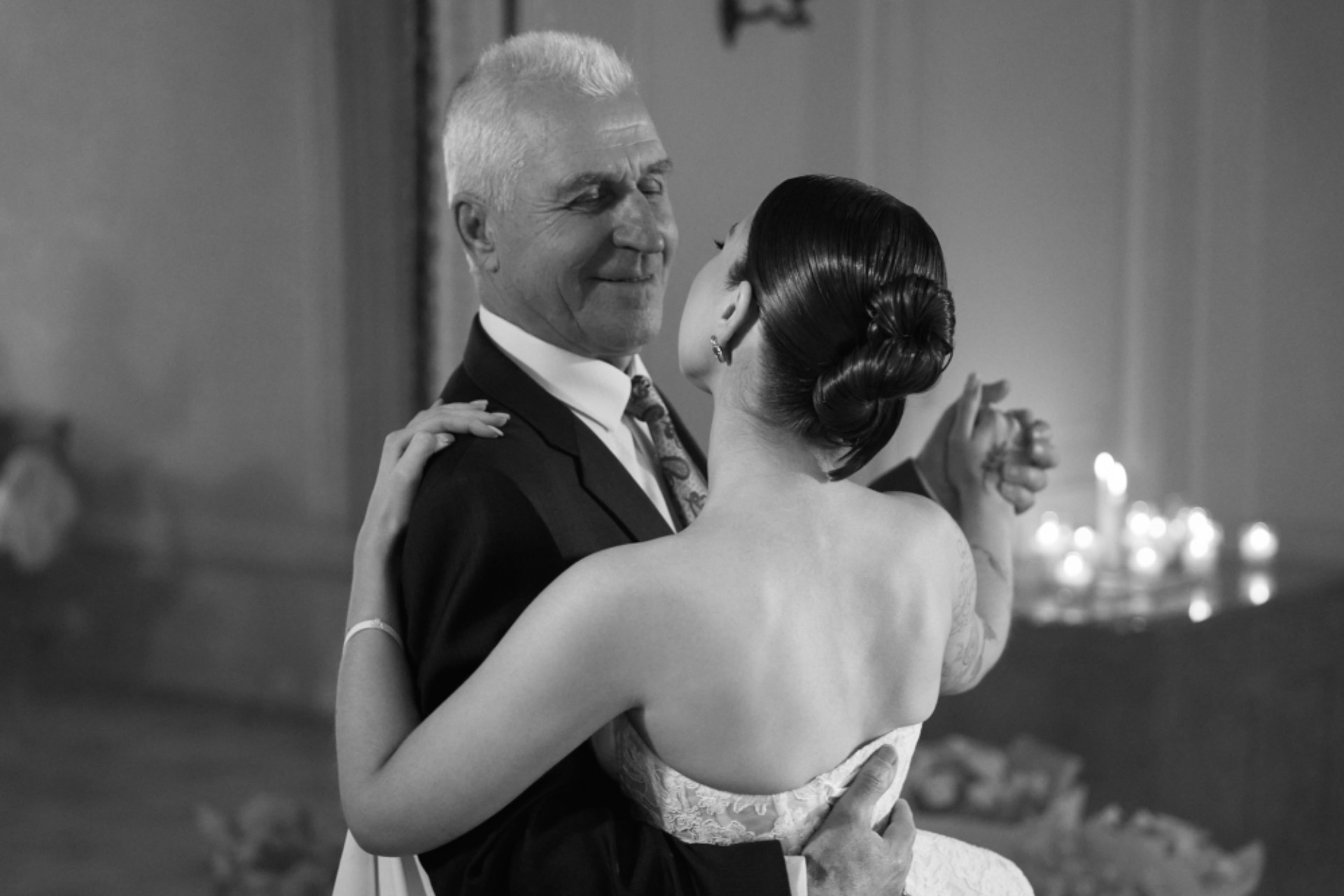 У нас была камерная свадьба на 25 самых близких человек, а такая компания уже сама по себе залог душевности и настоящей ценности момента. Я сильно переживала и за организацию, и за свои эмоции, и за то, как пройдёт сам день. Но в какой-то момент отпустила всё и позволила себе просто чувствовать. Улыбка буквально не сходила с моего лица. Было место и для слёз: во время церемонии, когда говорили мои родители, и в момент первого танца с папой.