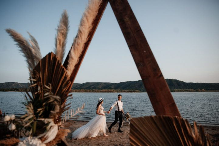 Наш флорист приехала на локацию первой. И не знаю, каким чудом она разогнала всех рыбаков с пляжа. Мы прибыли в обед, когда монтировали декор, и решили не упускать момент. Решили поснимать с жёстким светом, поэтому фотографии вышли очень разные, что хорошо разбавило серию. Как пролетела съёмка мы не заметили, очнулись от этих эмоций только тогда, когда лучи уходящего солнца уже почти скрылись за горизонтом.