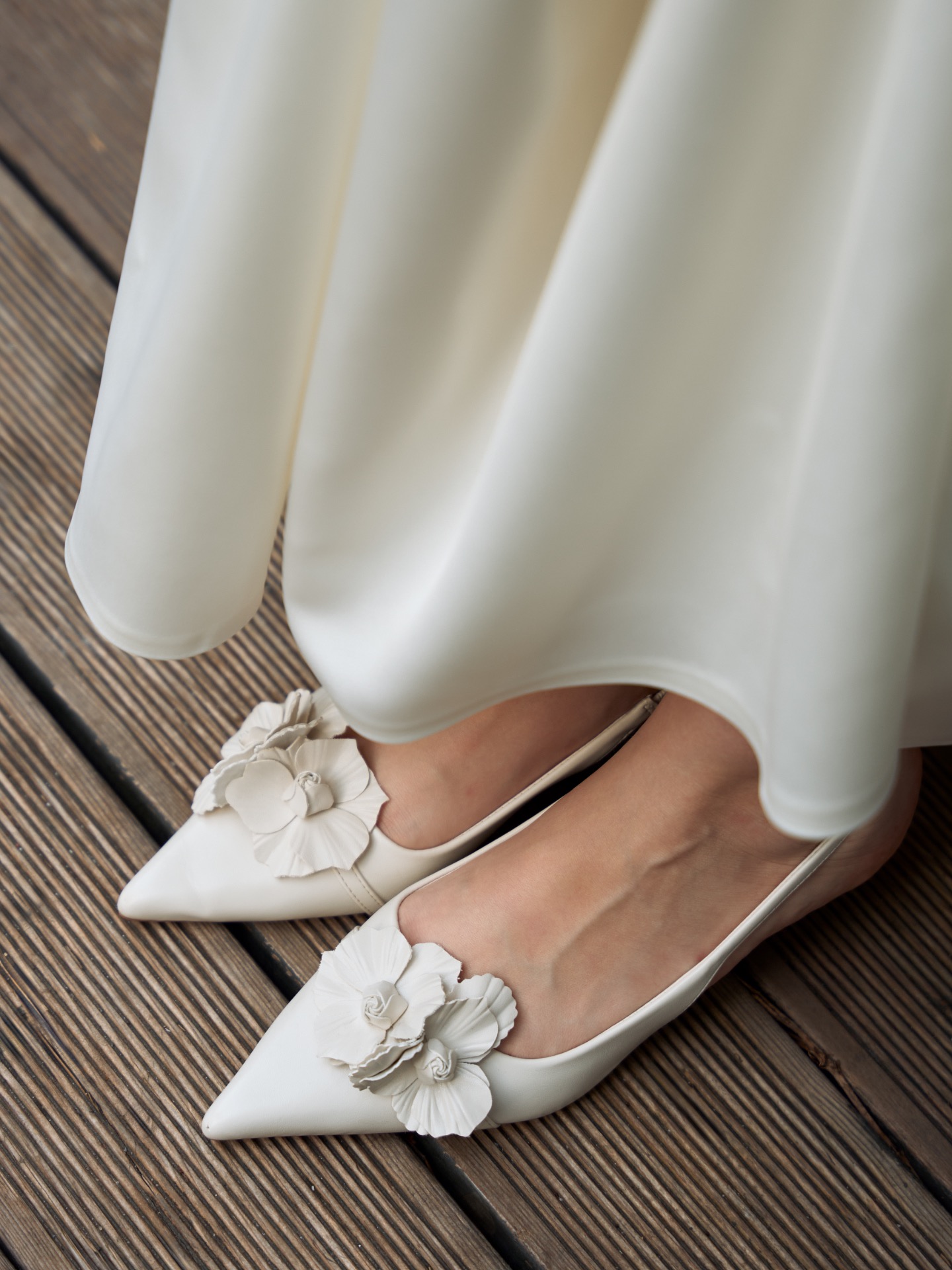 Моё платье шили в ателье, и я уделила особое внимание деталям: туфли и украшения мы выбирали вместе с организатором, чтобы всё гармонично сочеталось.