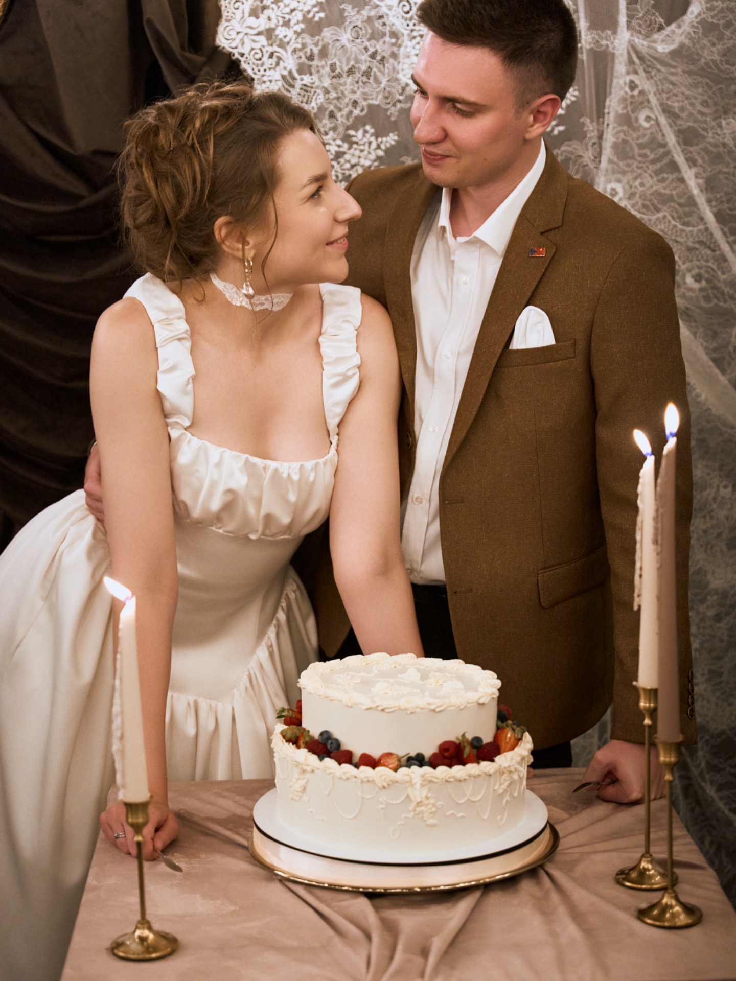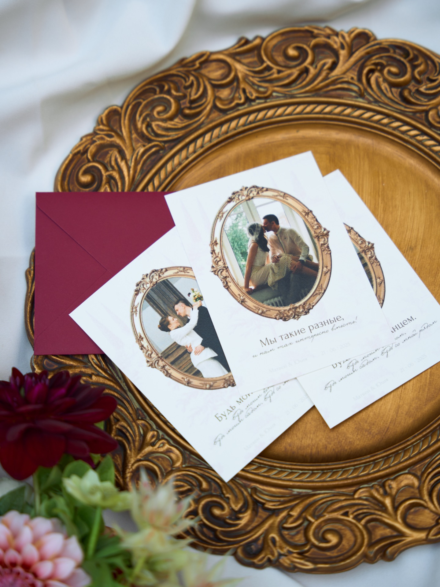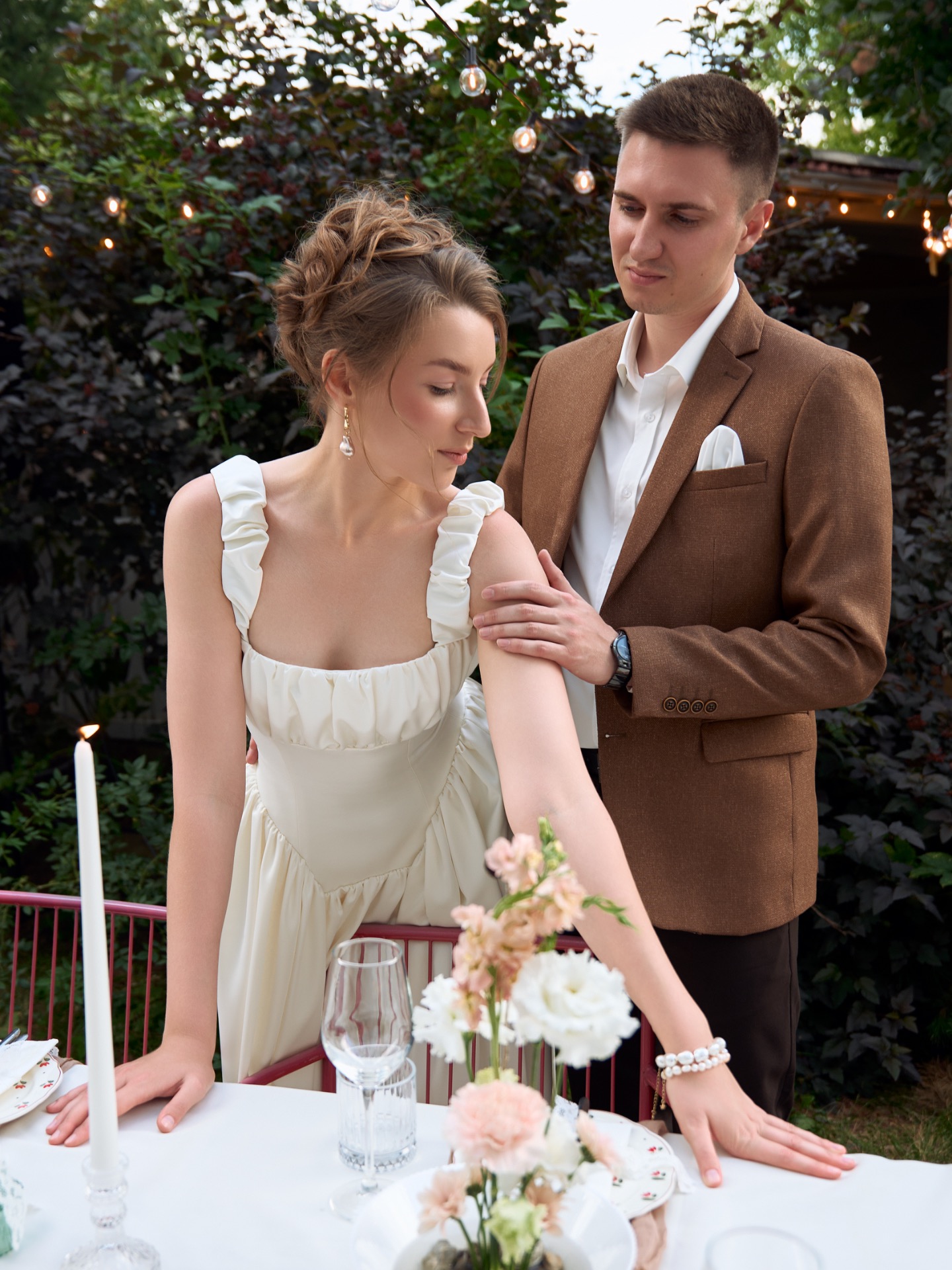 В день свадьбы наши образы идеально дополняли друг друга, создавая атмосферу романтики и утончённости. Я чувствовала себя настоящей героиней романа о любви — литературной, нежной и элегантной.