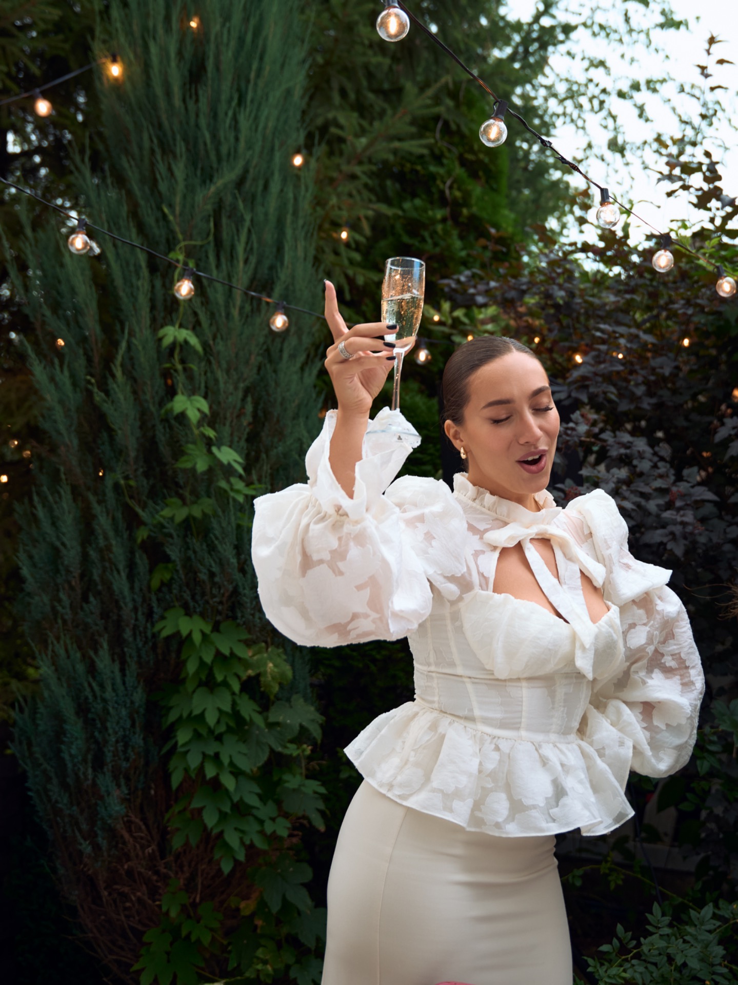 Я провела репетицию образа у стилиста, что помогло мне расслабиться и довериться профессионалу в самый важный день. Спонтанной деталью стал чокер из кружевной ленты, который мы с подругой сделали в конце вечера. Он стал милым акцентом и добавил индивидуальности моему образу.