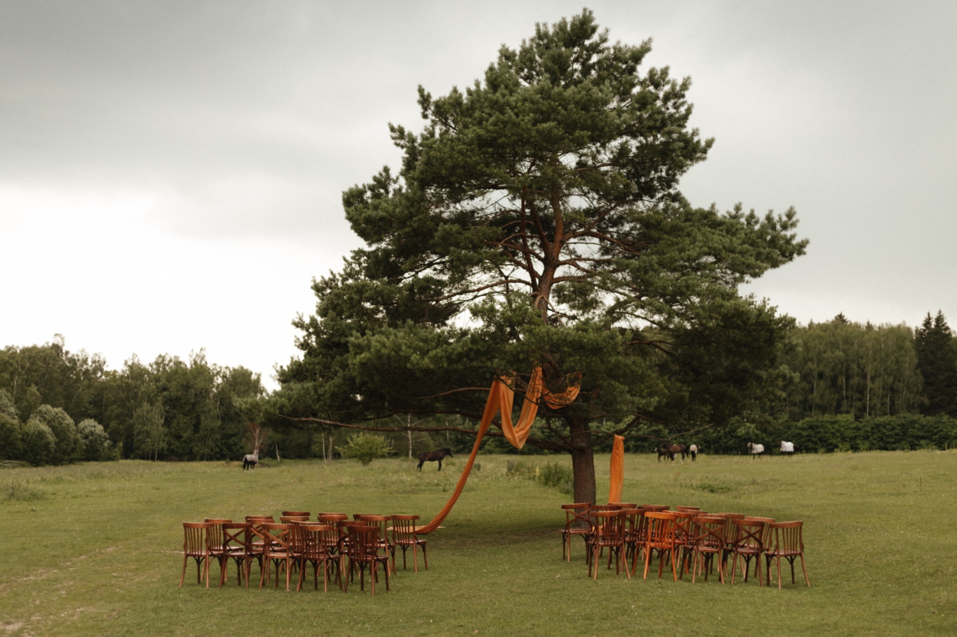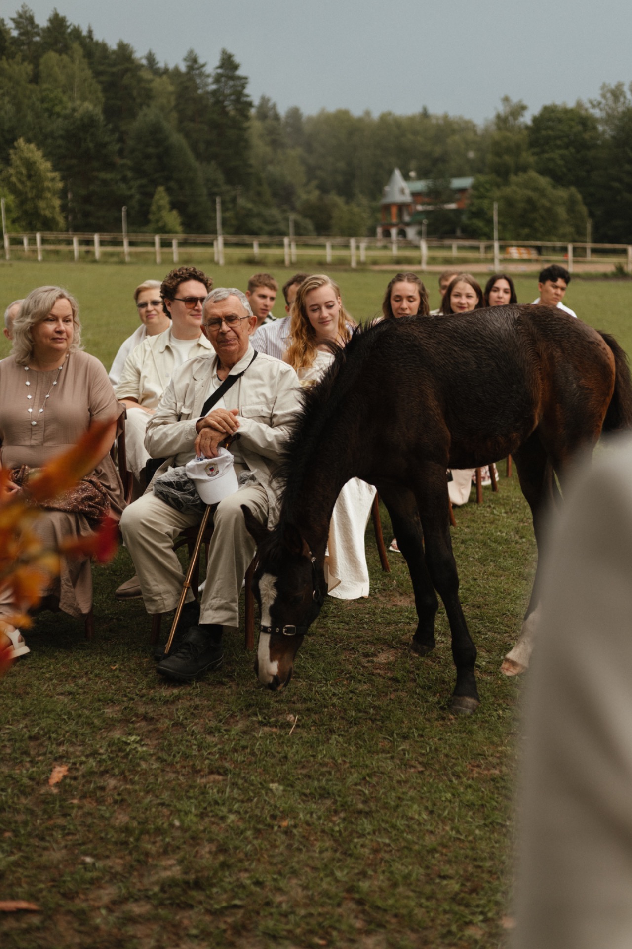 Самым трогательным моментом стала церемония. Во время неё к нам вышли две лошади — мать и жеребёнок. Они были среди гостей, подходили знакомиться, некоторых пытались поцеловать. Владельцы площадки сказали, что это был первый случай, когда лошади сами вышли к людям во время церемонии.