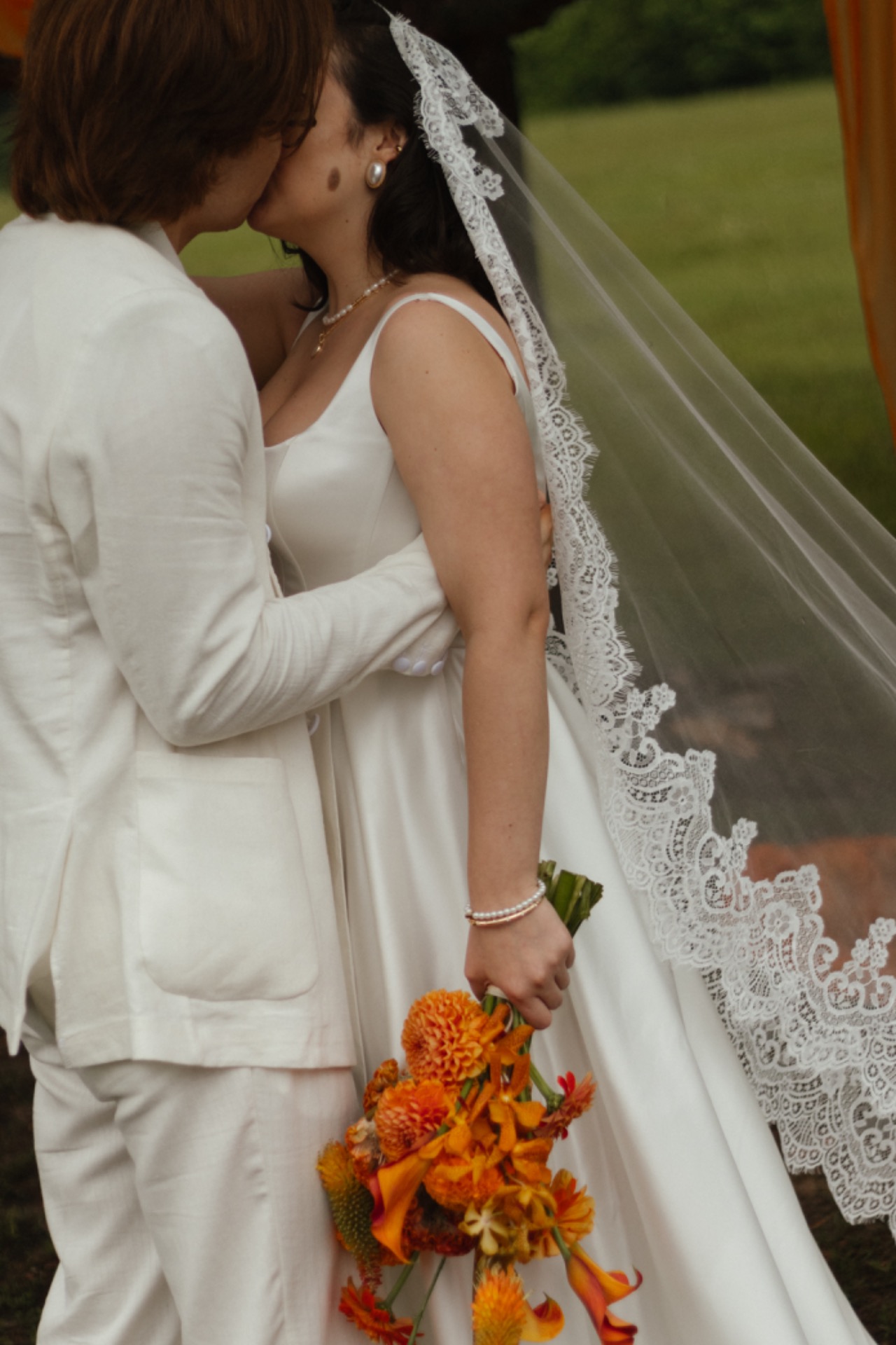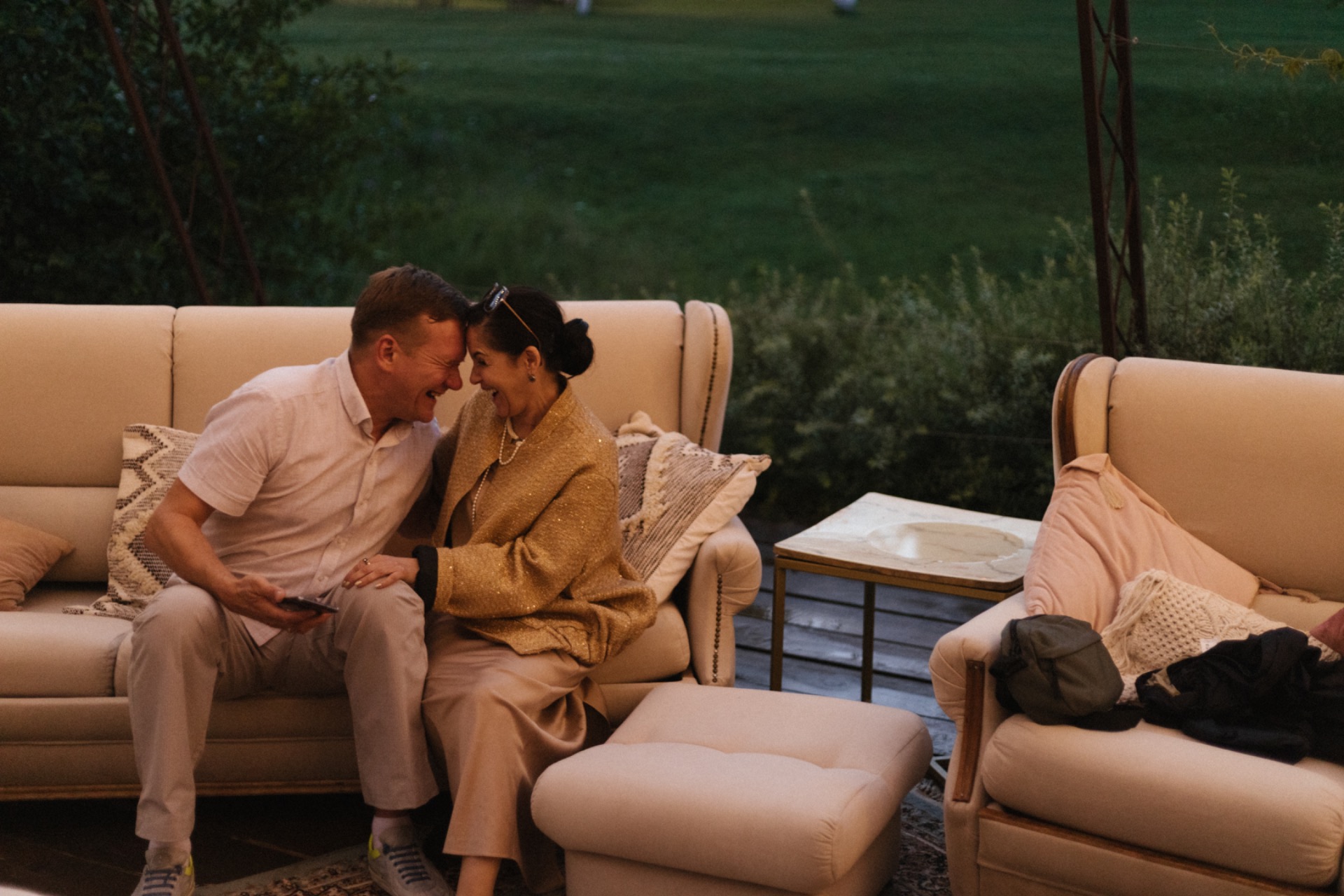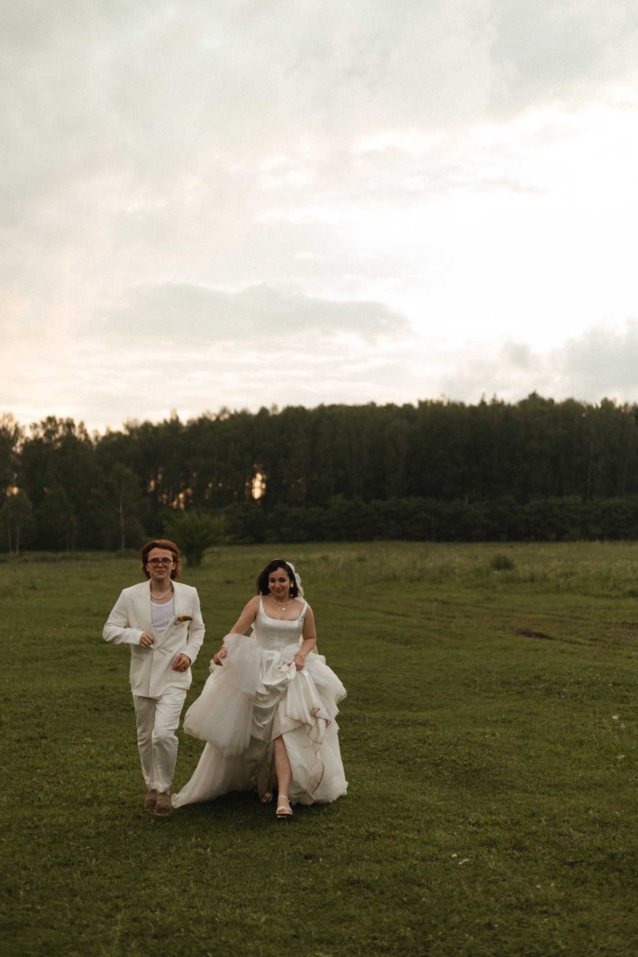 У жениха был льняной костюм в стиле old money и любимые украшения из белого камня.