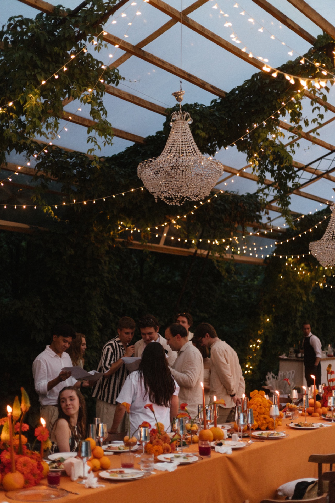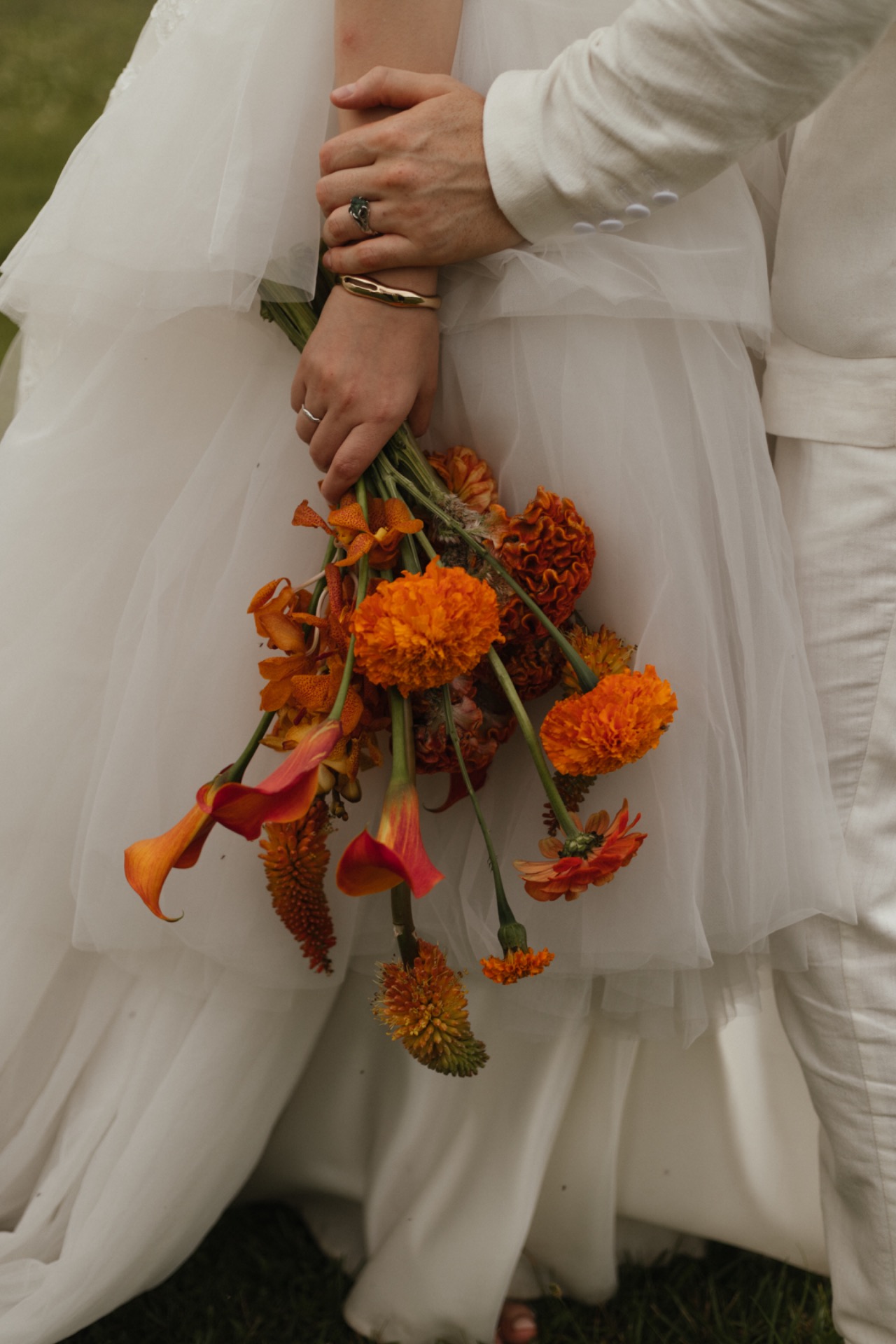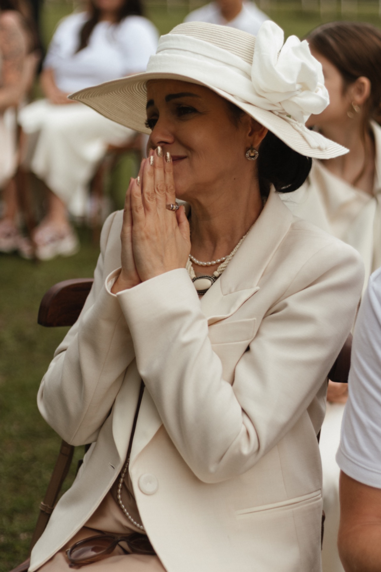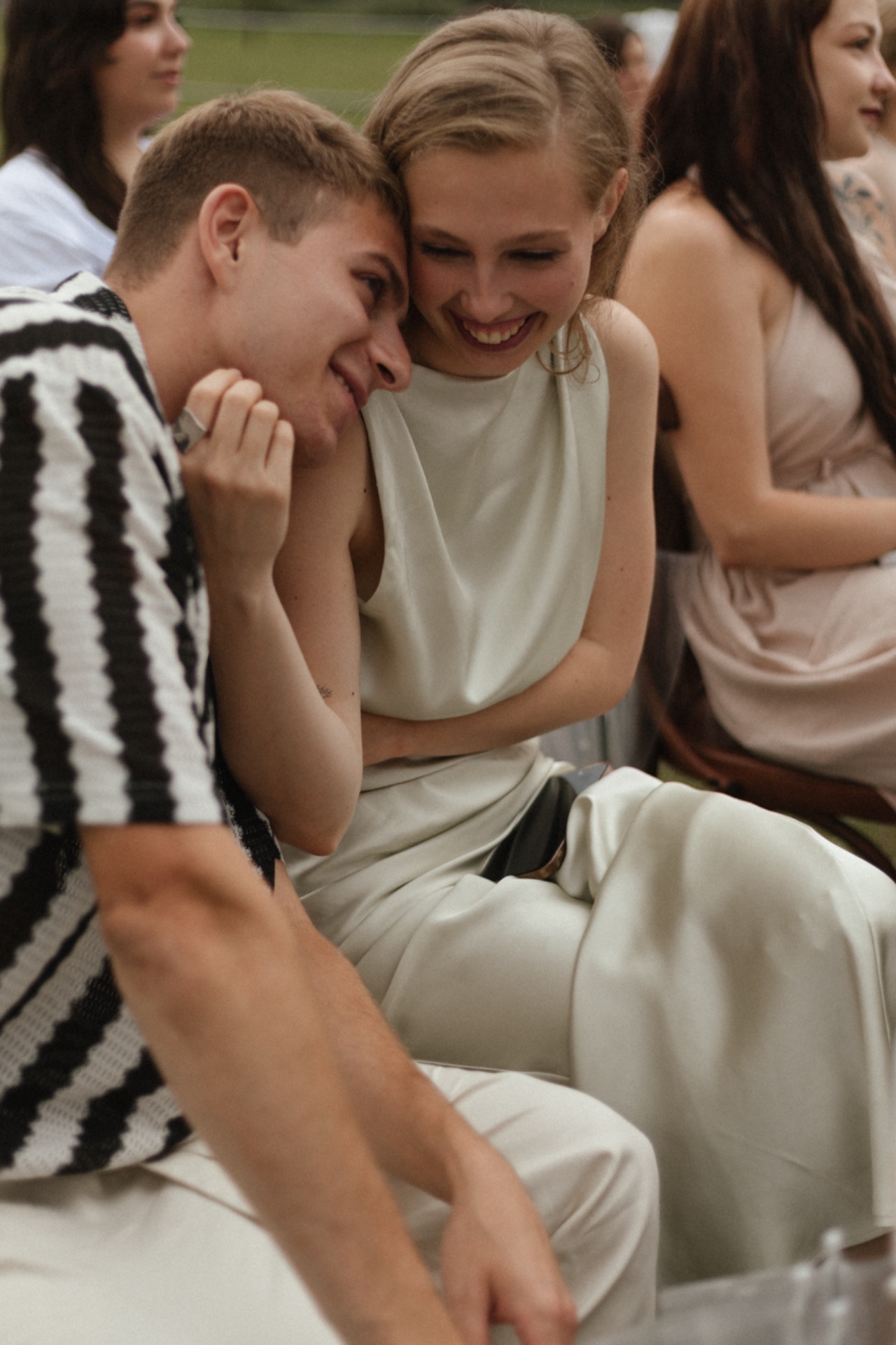 У жениха был льняной костюм в стиле old money и любимые украшения из белого камня.