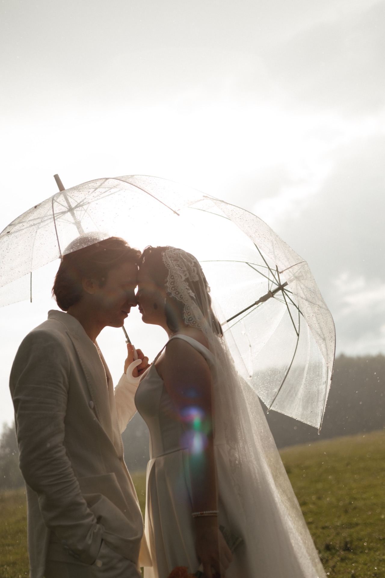 Также запомнилось, как мы фотографировались под дождём и солнцем одновременно — это была настоящая магия природы и нашей любви.