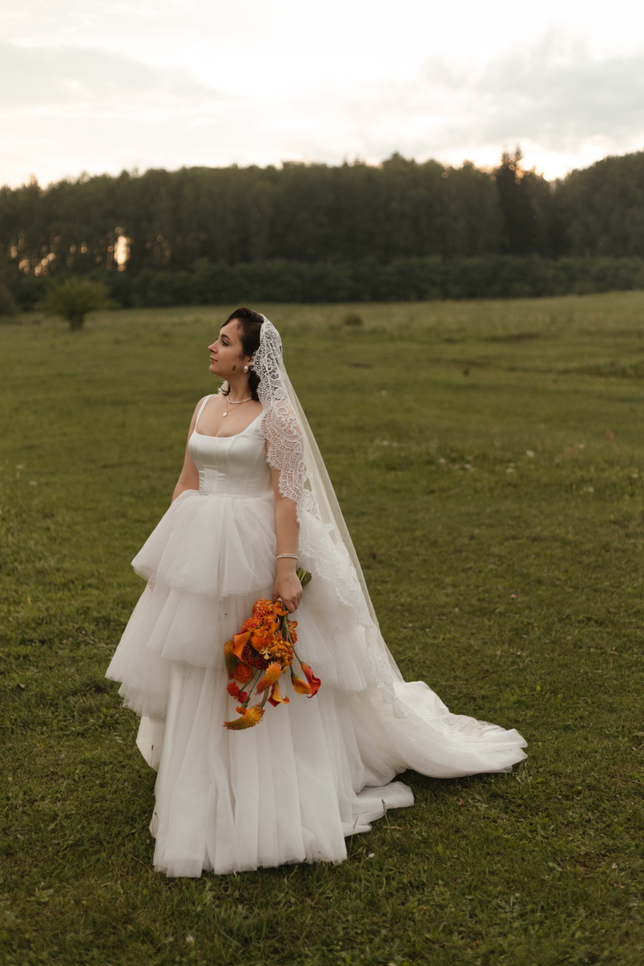 У меня было классическое платье, которое я дополнила золотыми и жемчужными аксессуарами. Я выбрала фату-испанку — именно она, на мой взгляд, завершила образ.