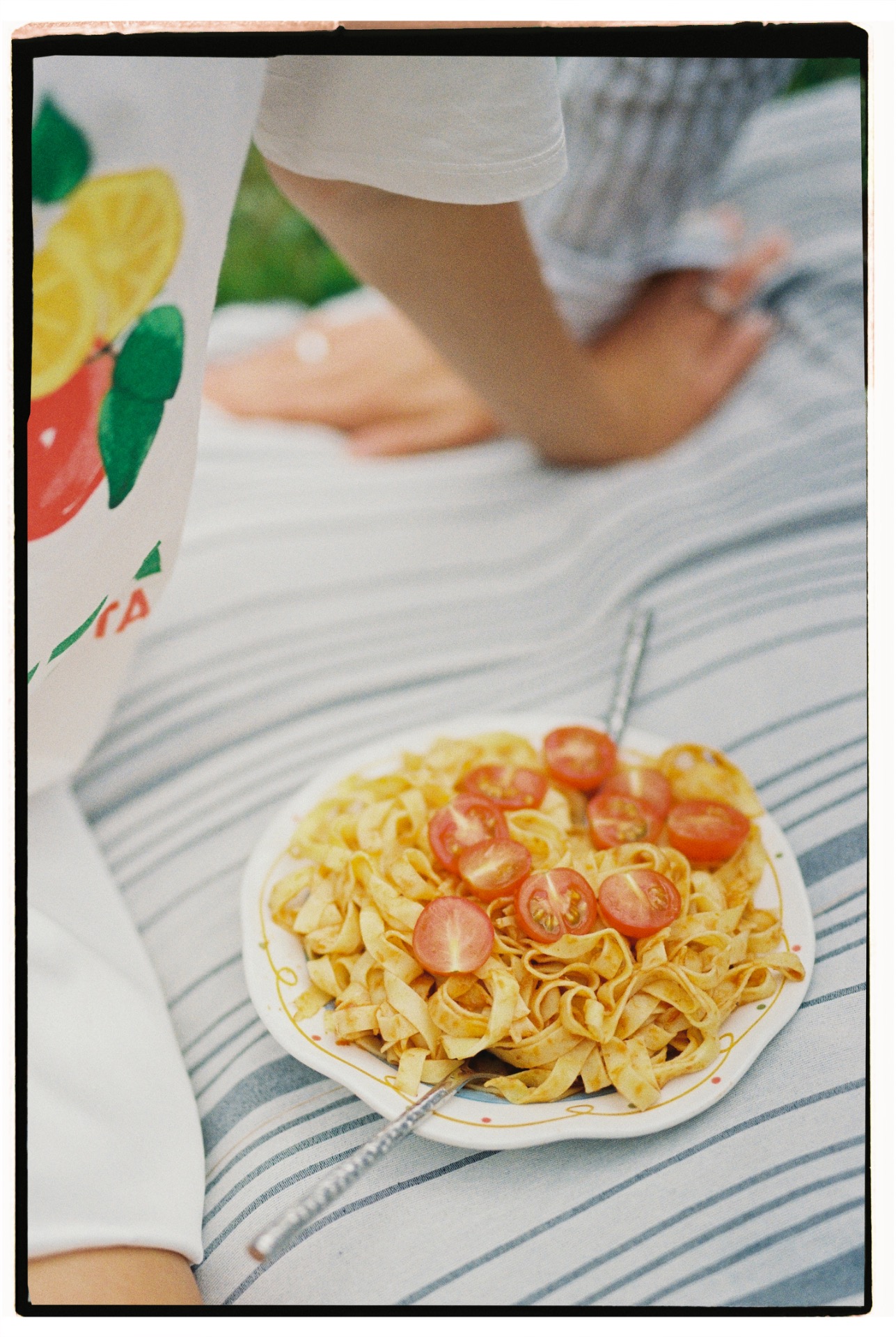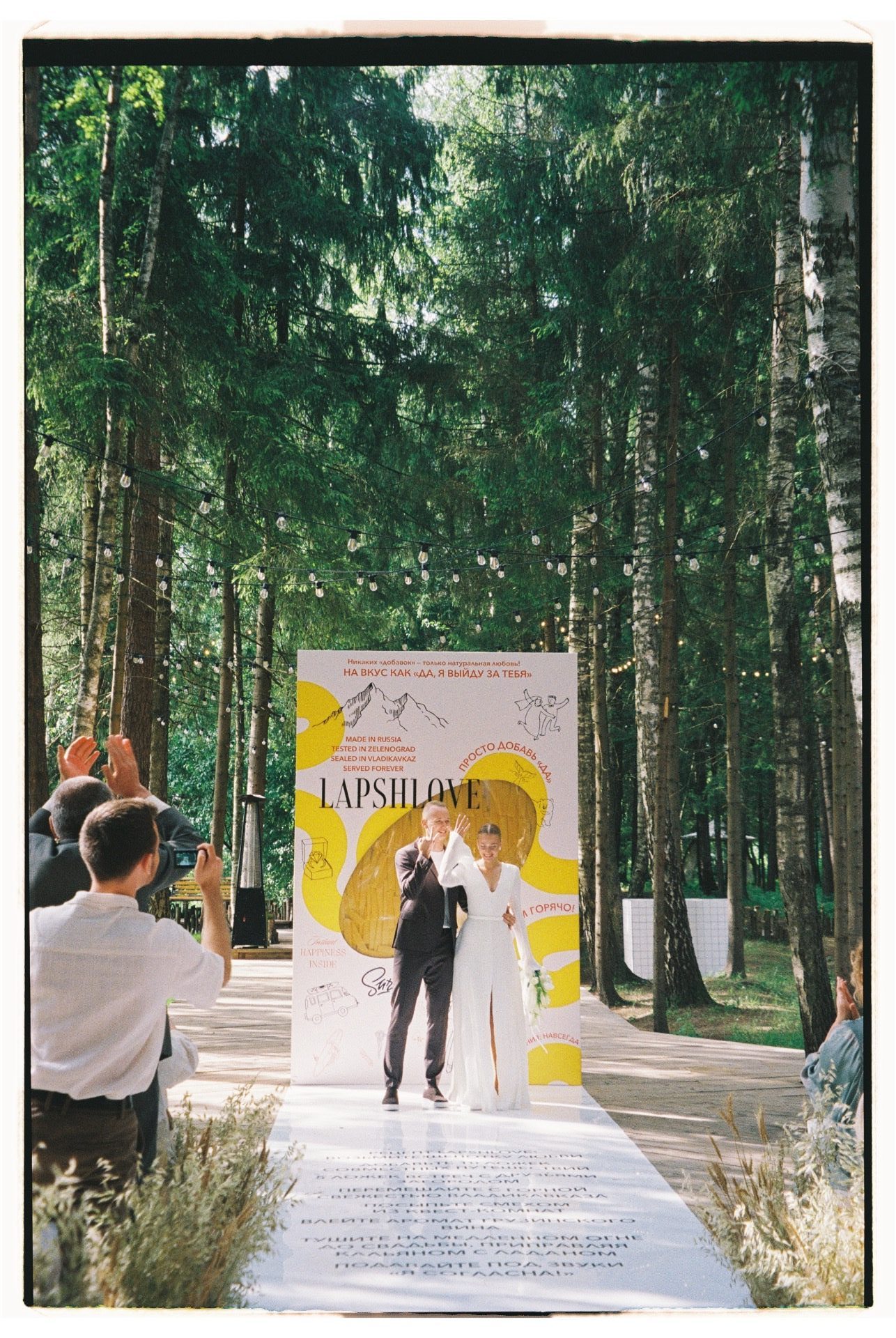Изначально мы хотели сделать свадьбу в сицилийском стиле, но поменяли концепцию, когда углубились в смысл фамилии Димы. Так как мы намеревались стать семьёй Лапшовых, то решили и в свадебной концепции обыграть тему макаронных изделий.