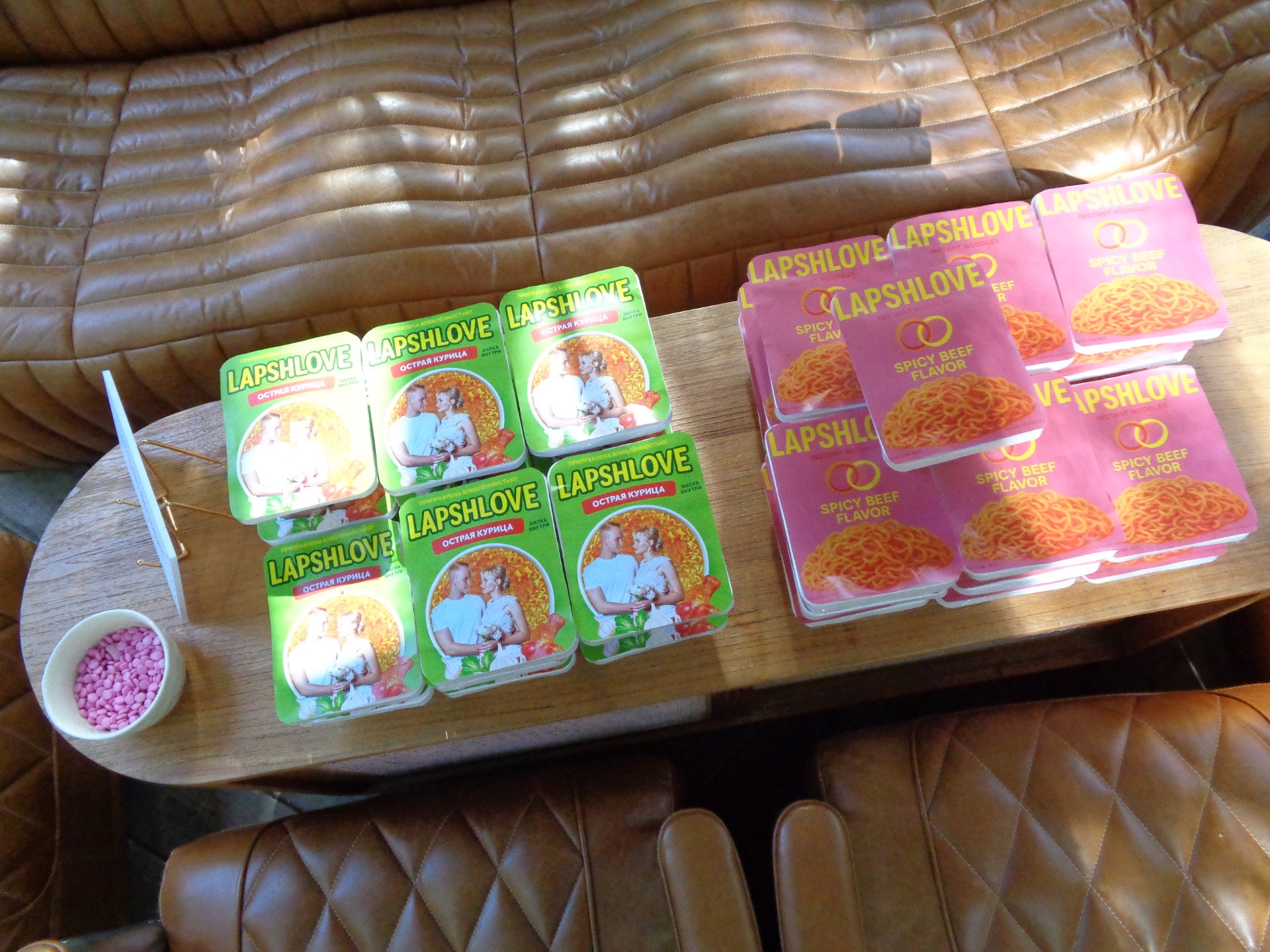В качестве фишек нашей свадьбы мы подготовили кастомные дошираки для гостей с нашими фотографиями, а также поставили тату-бар с переводными татуировками по моим эскизам в макаронной тематике.