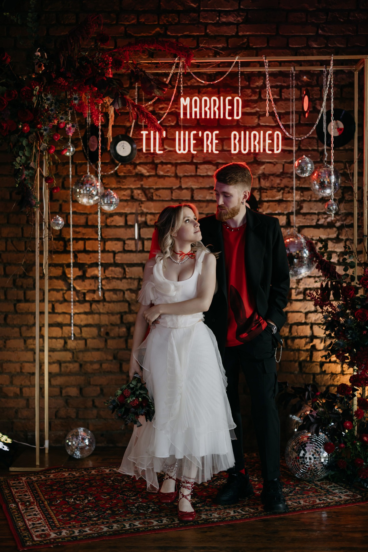 Концепция нашей свадьбы родилась из нашего желания сделать свадьбу-вечеринку, где фокус был бы немного смещён в сторону гостей. Мы хотели собрать всех своих друзей в одном месте и хорошенько тусануть! Поэтому появилась идея свадебной рок-вечеринки. Всё началось с подбора вдохновляющих картинок в Pinterest, оттуда сформировалась и примерная палитра, остальное вытекало из этого.