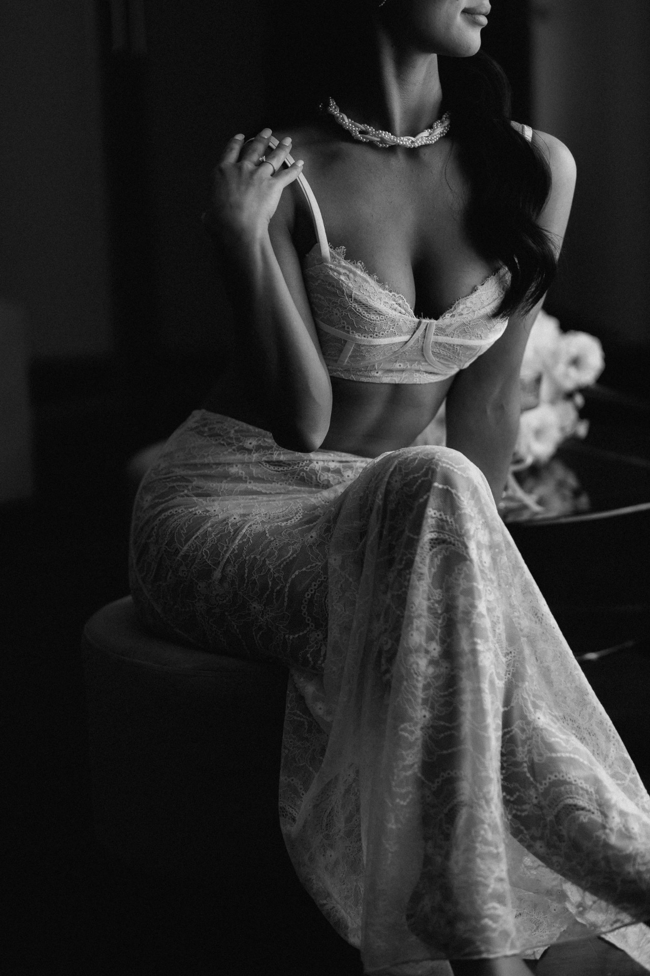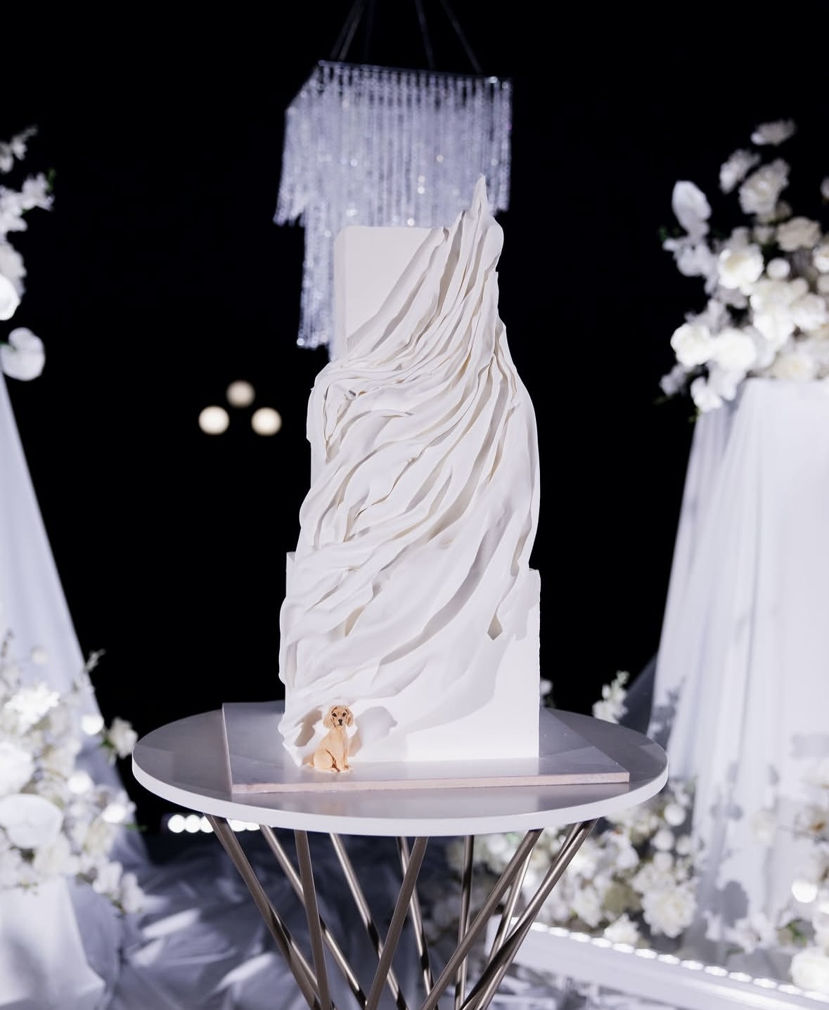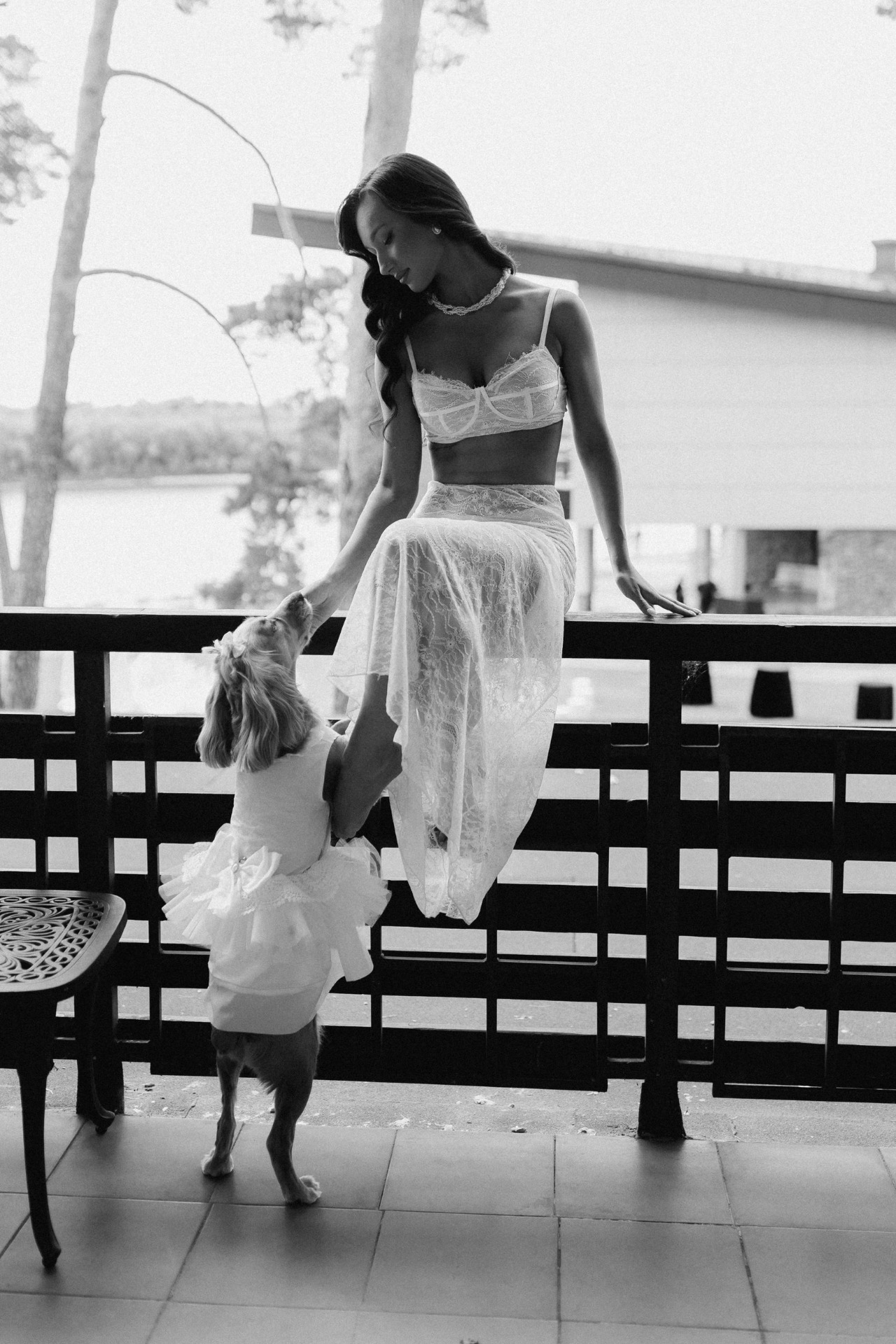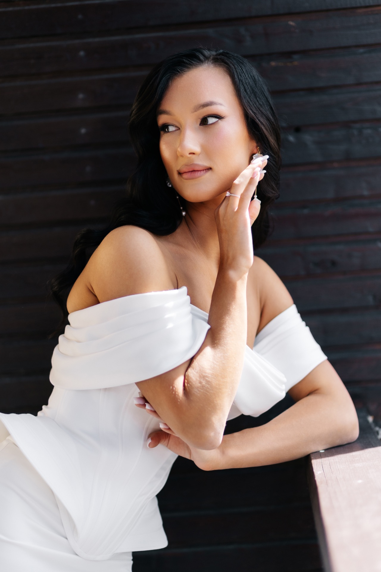 На выездную церемонию — очень эстетичная модель без лишних деталей. На основную часть — красивое платье со шлейфом, и заключительное короткое кружевное платье для выноса торта и нашего финального слова.