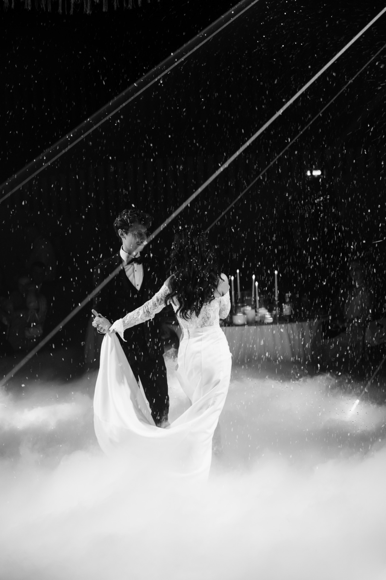 Банкет прошёл очень весело, все танцевали и смеялись весь вечер. Традицию с первенцем мы разыграли с помощью голубых и розовых шайб. А завершился вечер презентацией торта под фейерверки и мыльные пузыри из пистолетов, которые мы раздали нашим маленьким приглашённым.