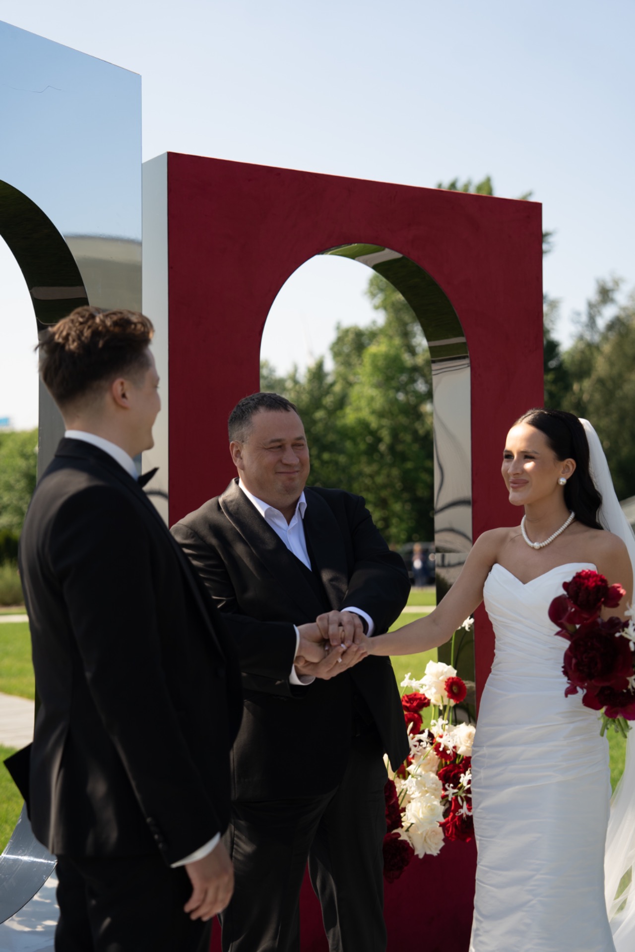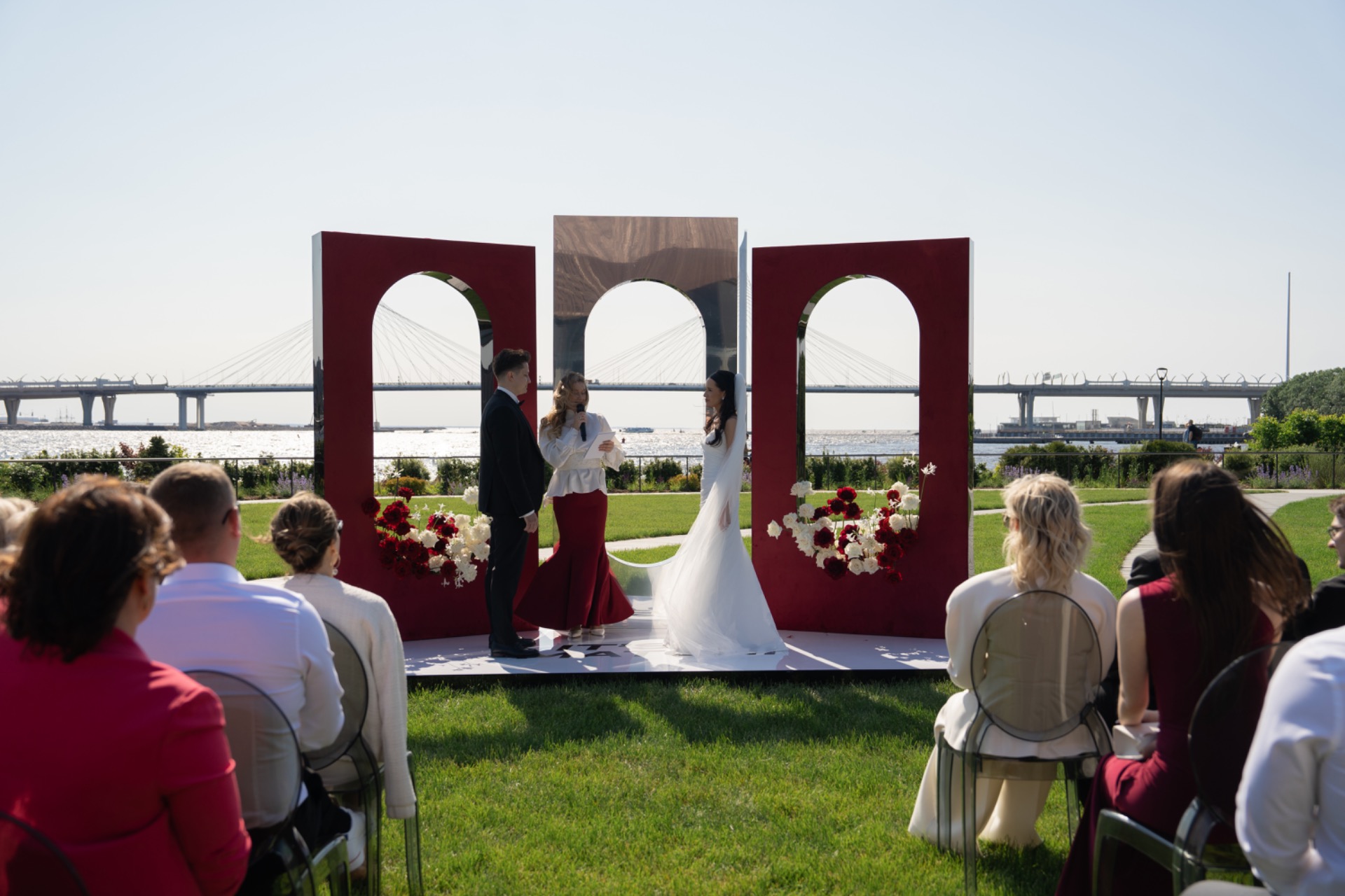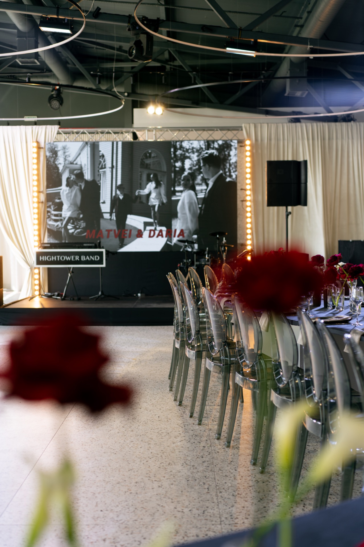 Палитру мы выбрали сами, я с самого начала знала, что хочу красно-бордовые оттенки, ведь это цвета любви и страсти. Всё остальное, включая выбор флористики и деталей, мы доверили нашим прекрасным декораторам.