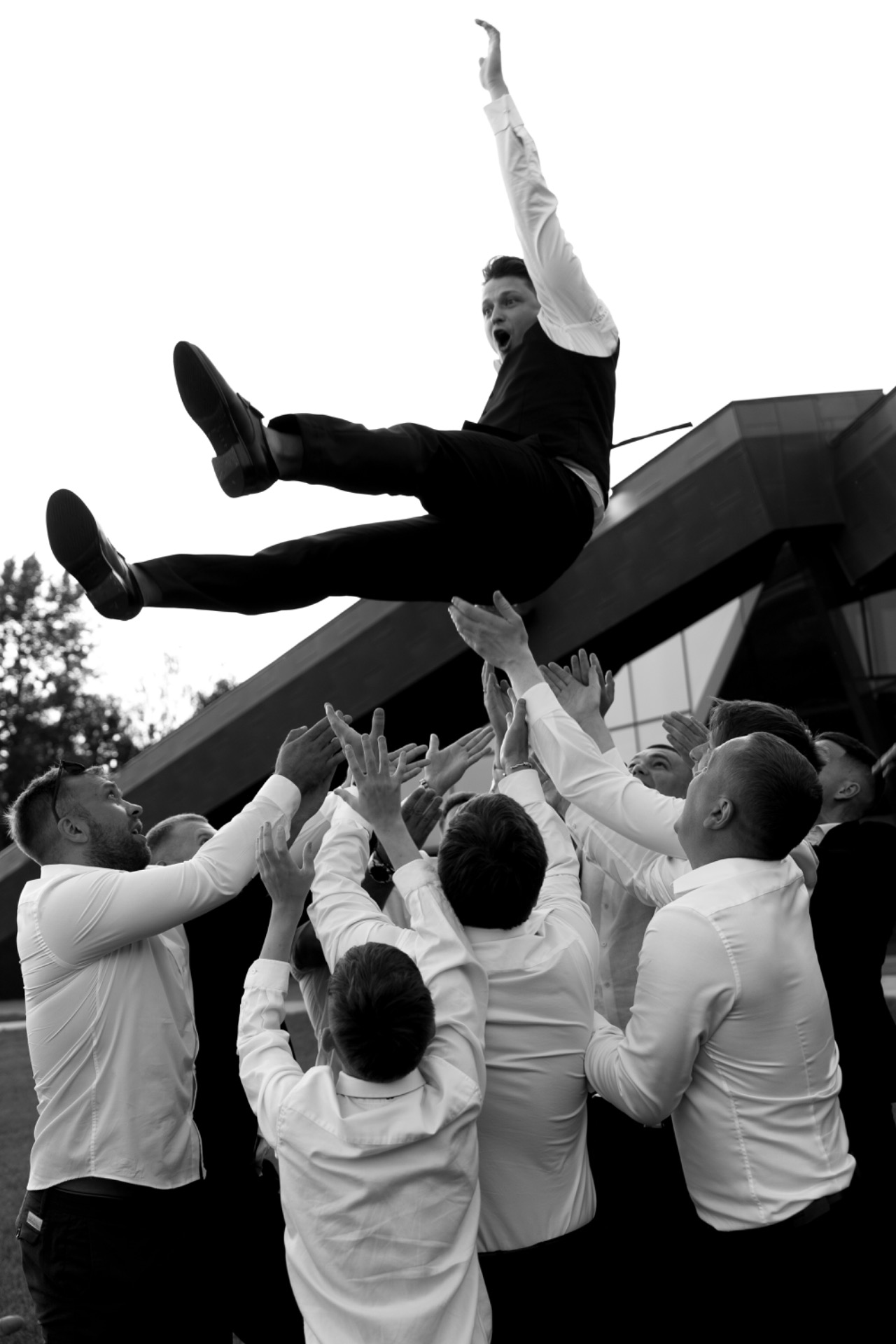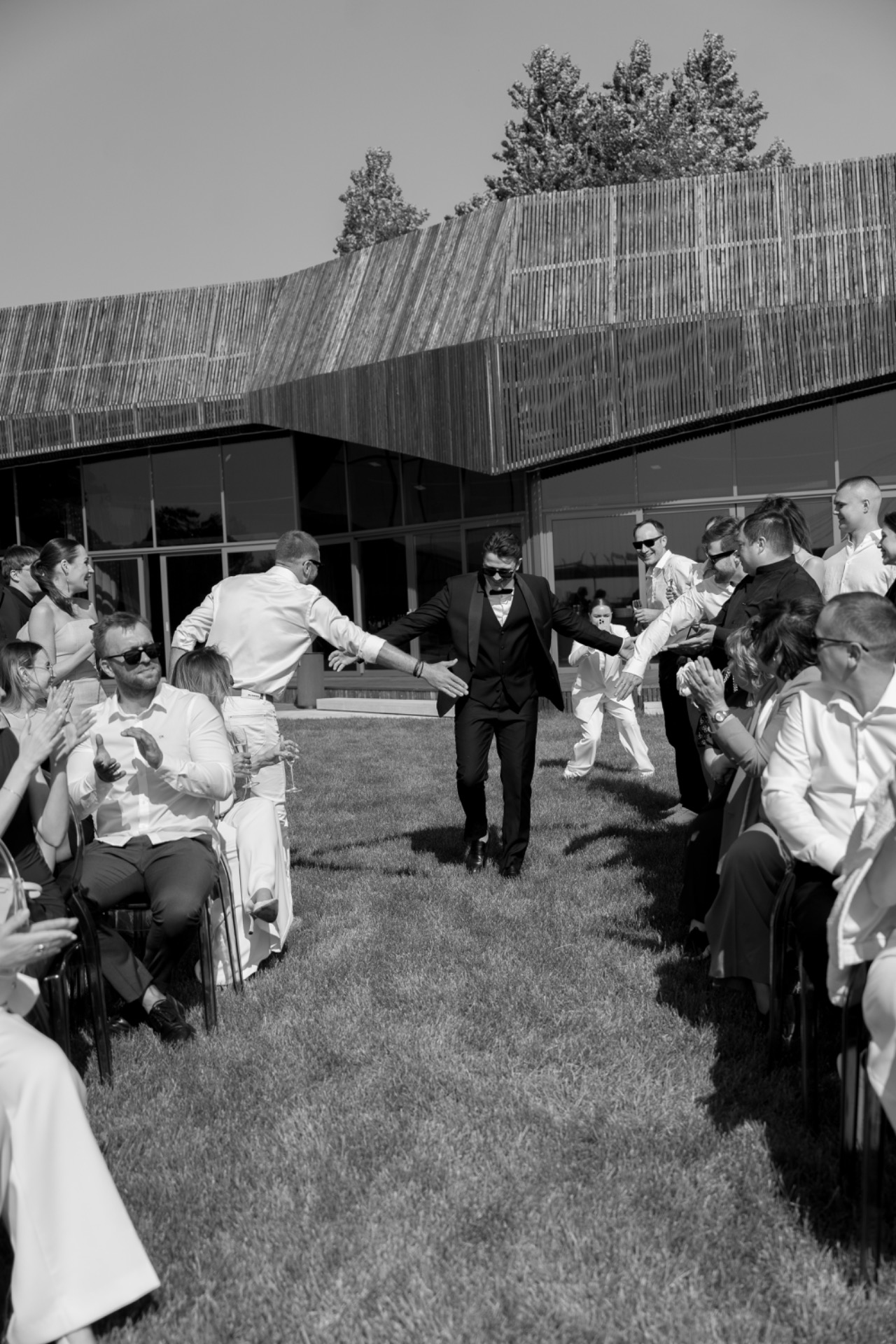 Самое трогательное в нашем дне — это, конечно, церемония. Тёплые слова гостей, проникновенный SDE-ролик, и, как вишенка на торте, предложение руки и сердца от нашего лучшего друга своей любимой прямо на нашей свадьбе!