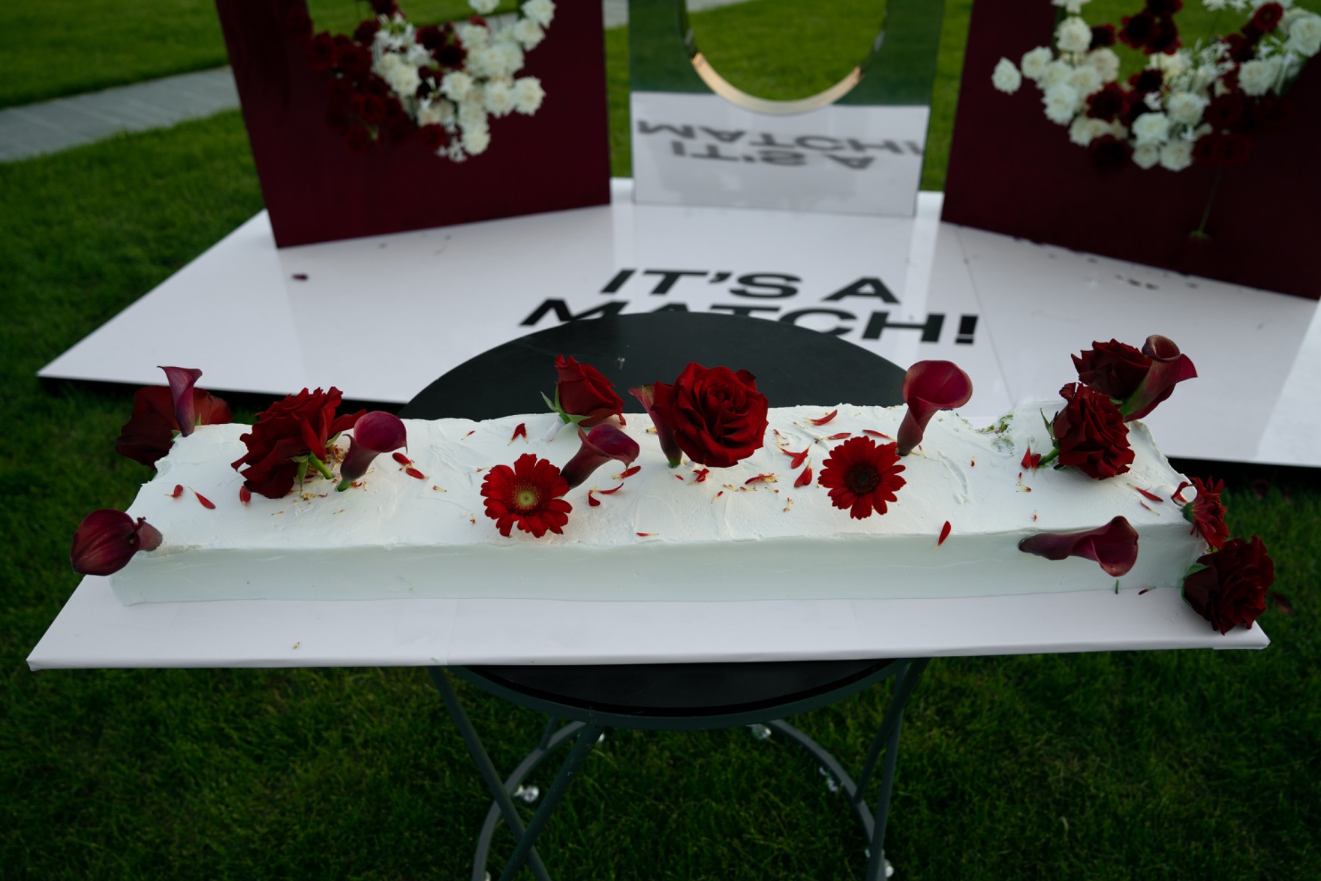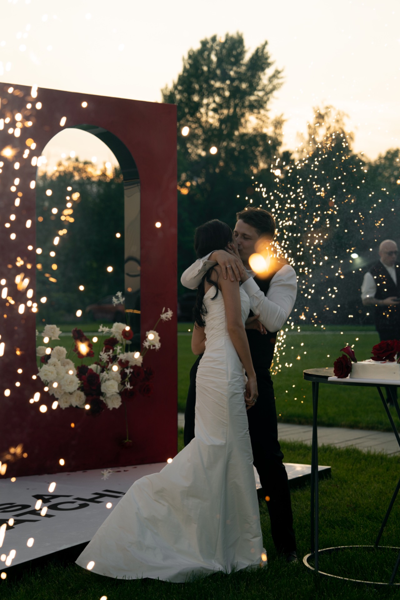 Завершением вечера стала подача красивейшего торта под брызги холодных фонтанов.