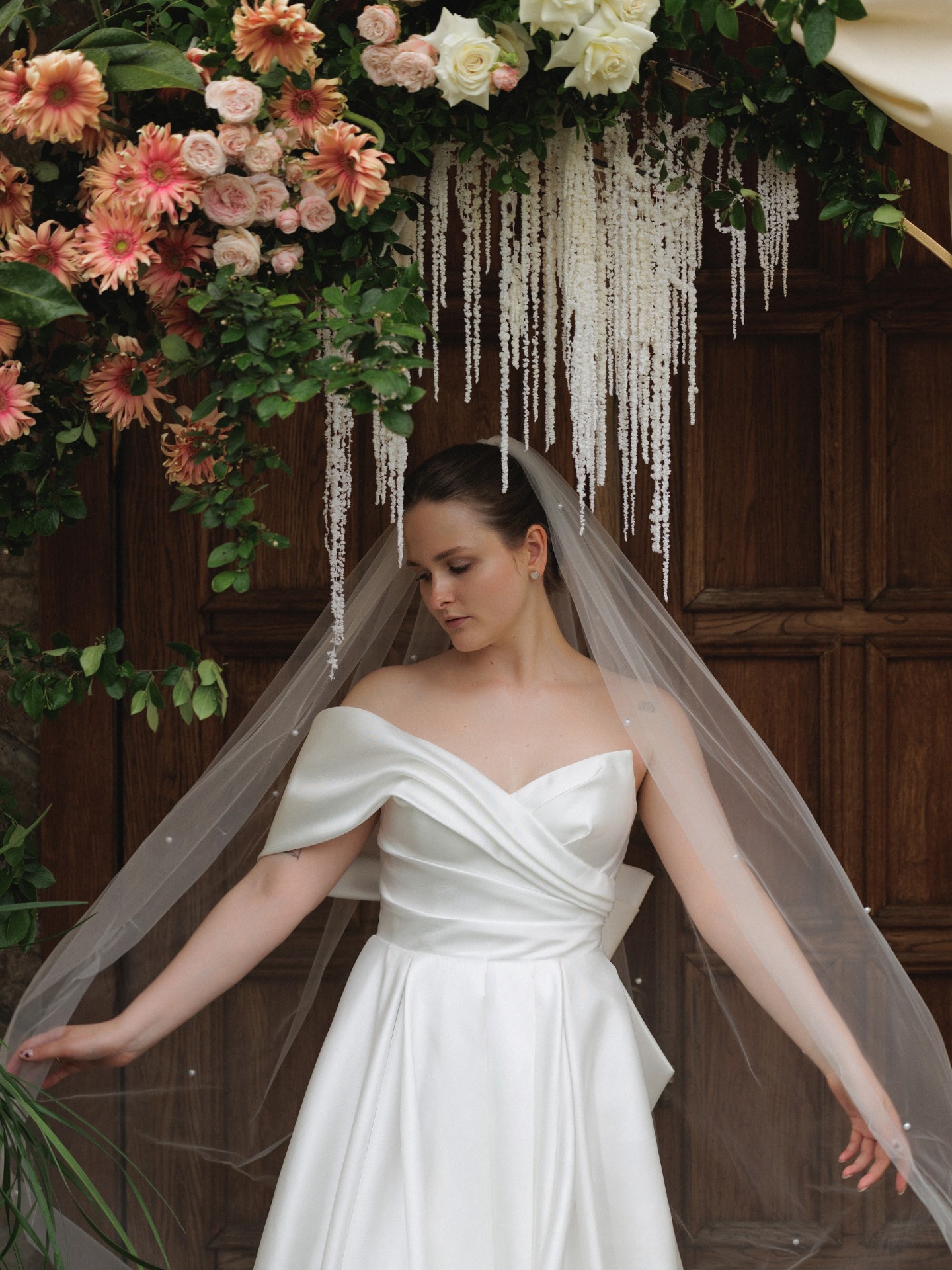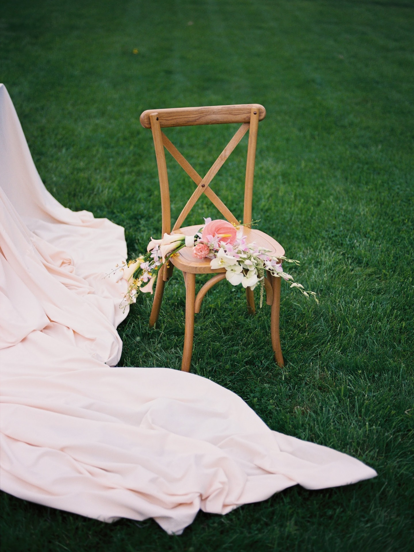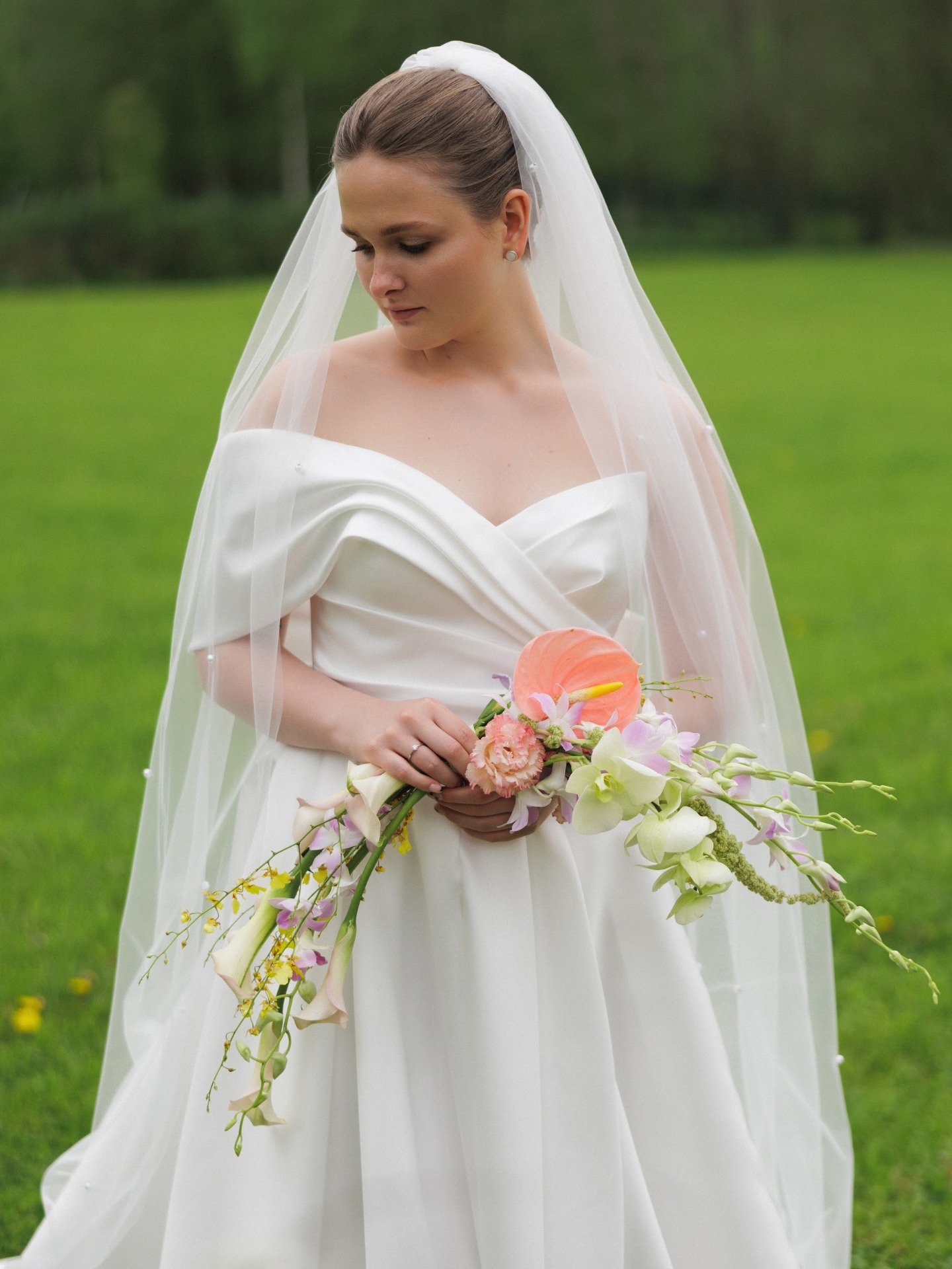 Мои букеты тоже были особенными. Я выбрала нежный фермерский вариант для первого дня и каскадный, из орхидей и антуриума, для праздника.