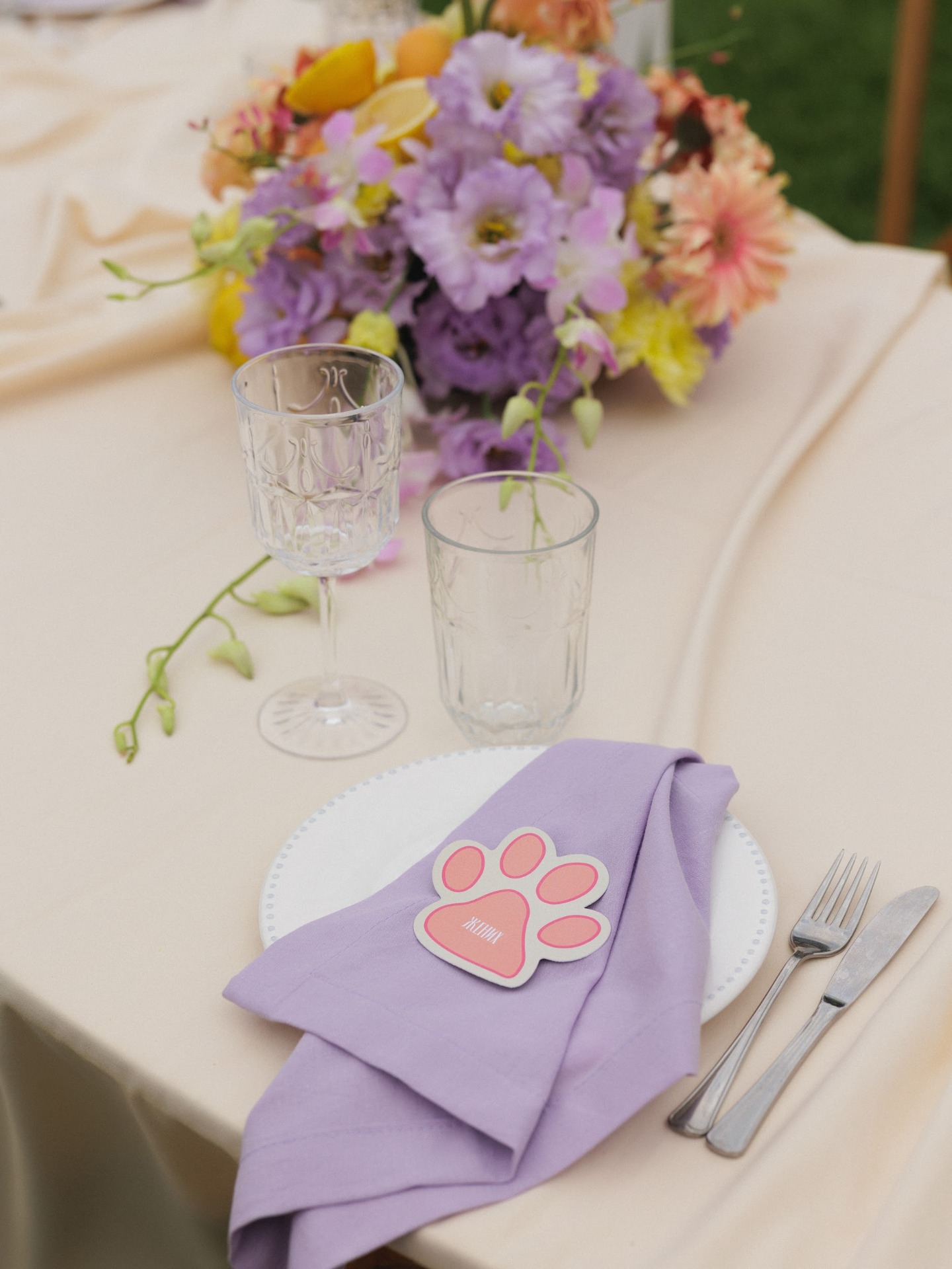 Каждая деталь отражала маленькие факты о нас: карточки рассадки в форме лапки собаки, полароиды с йога-референсами, стол для пинг-понга, саксофонист с любимым джазом, LEGO-человечки для гостей.