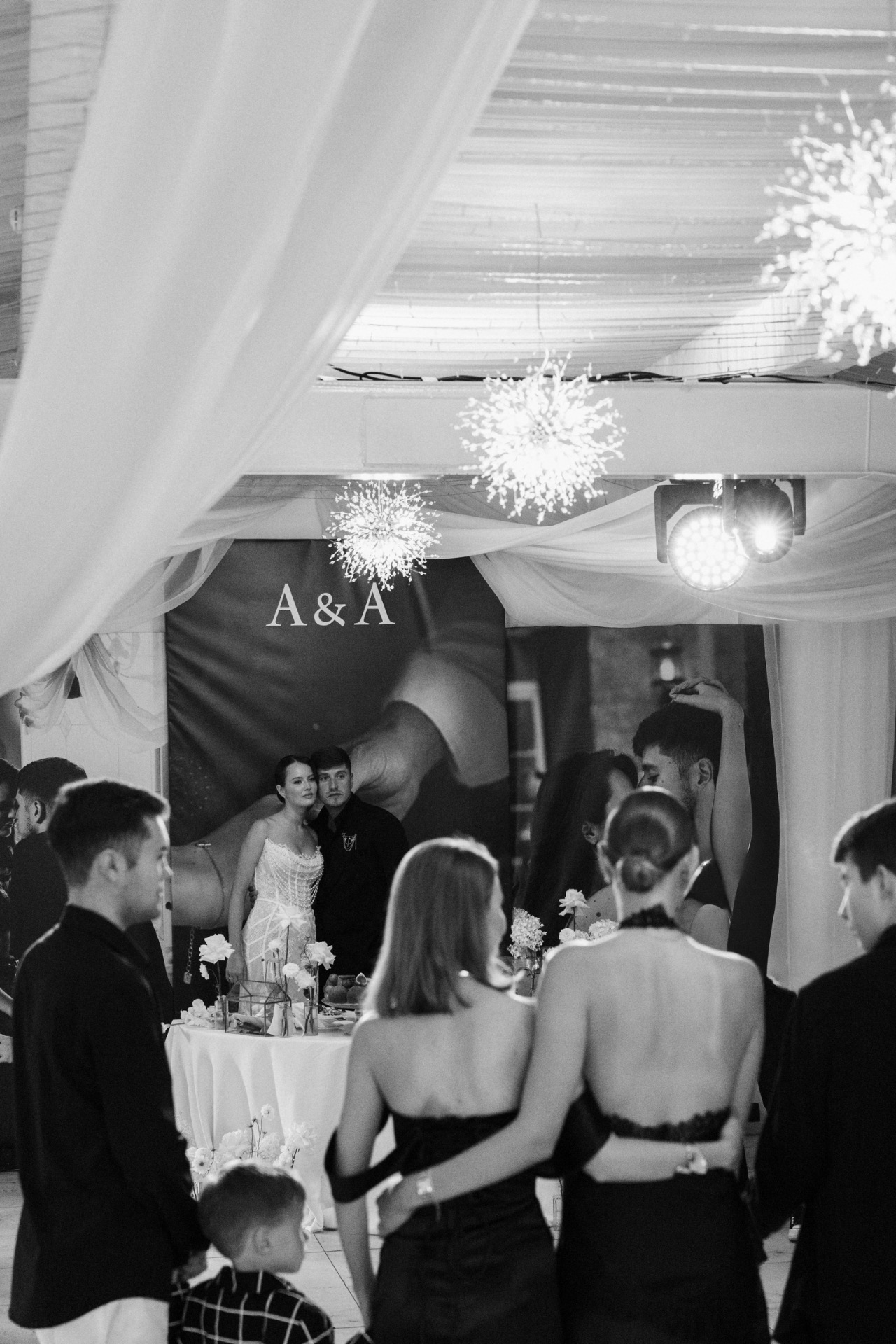 Дресс-код для гостей я разделила на два направления: total black для женщин и black&white для мужчин. Это оказалось очень стильным и удачным решением.