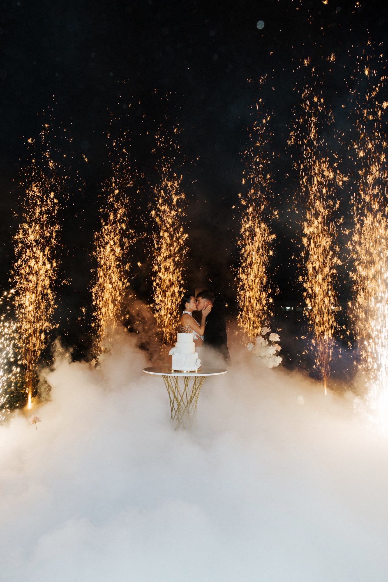 Особенными моментами стали наш свадебный танец, разрезание торта под бенгальские огни и холодные фонтаны.
