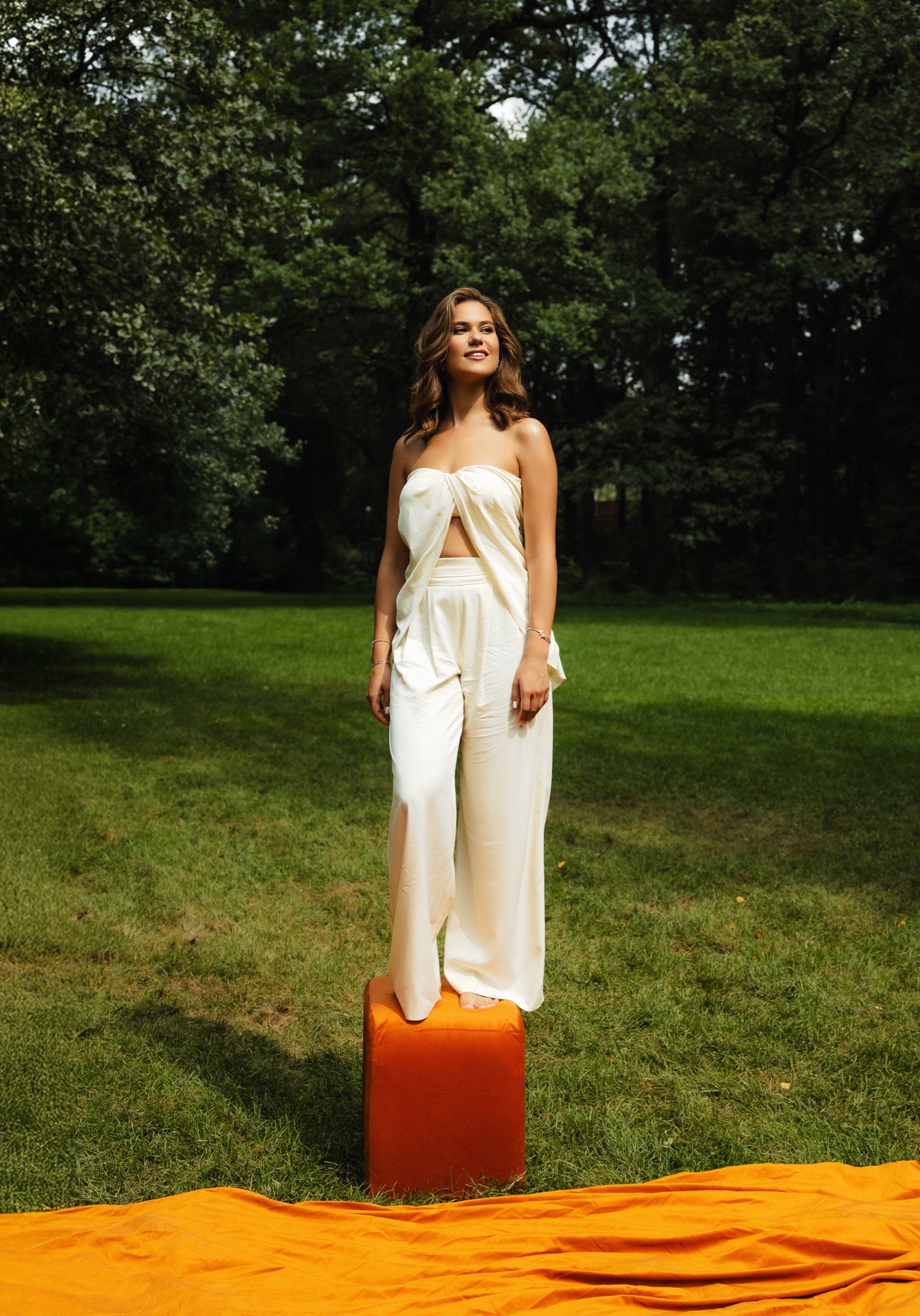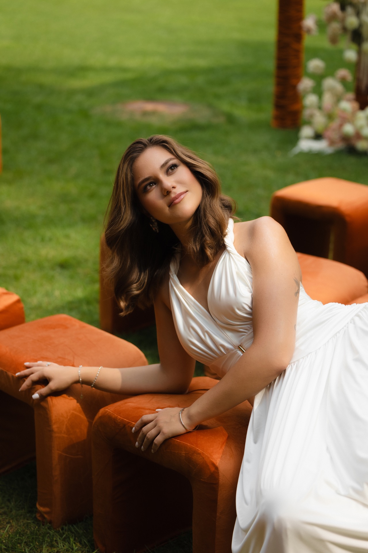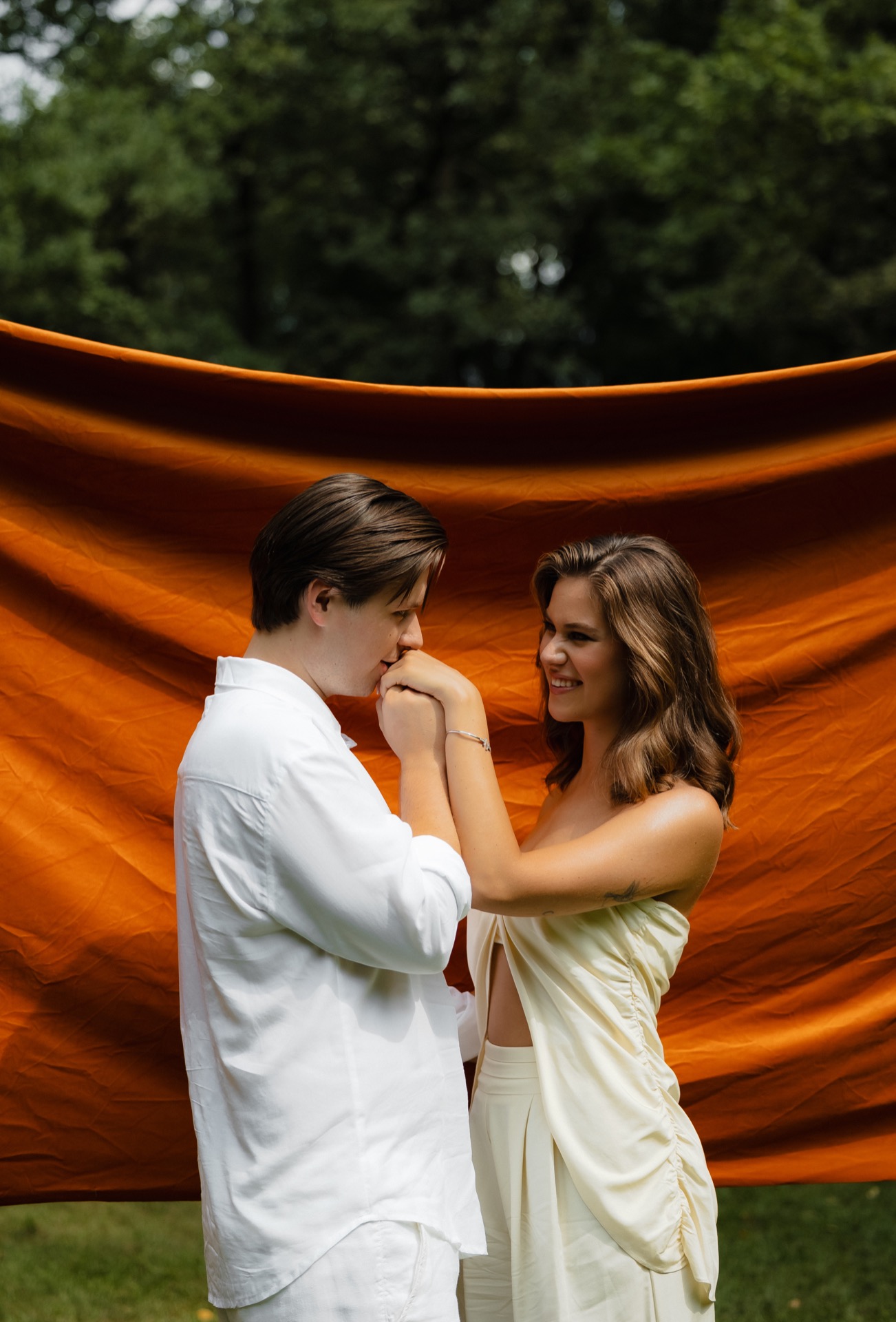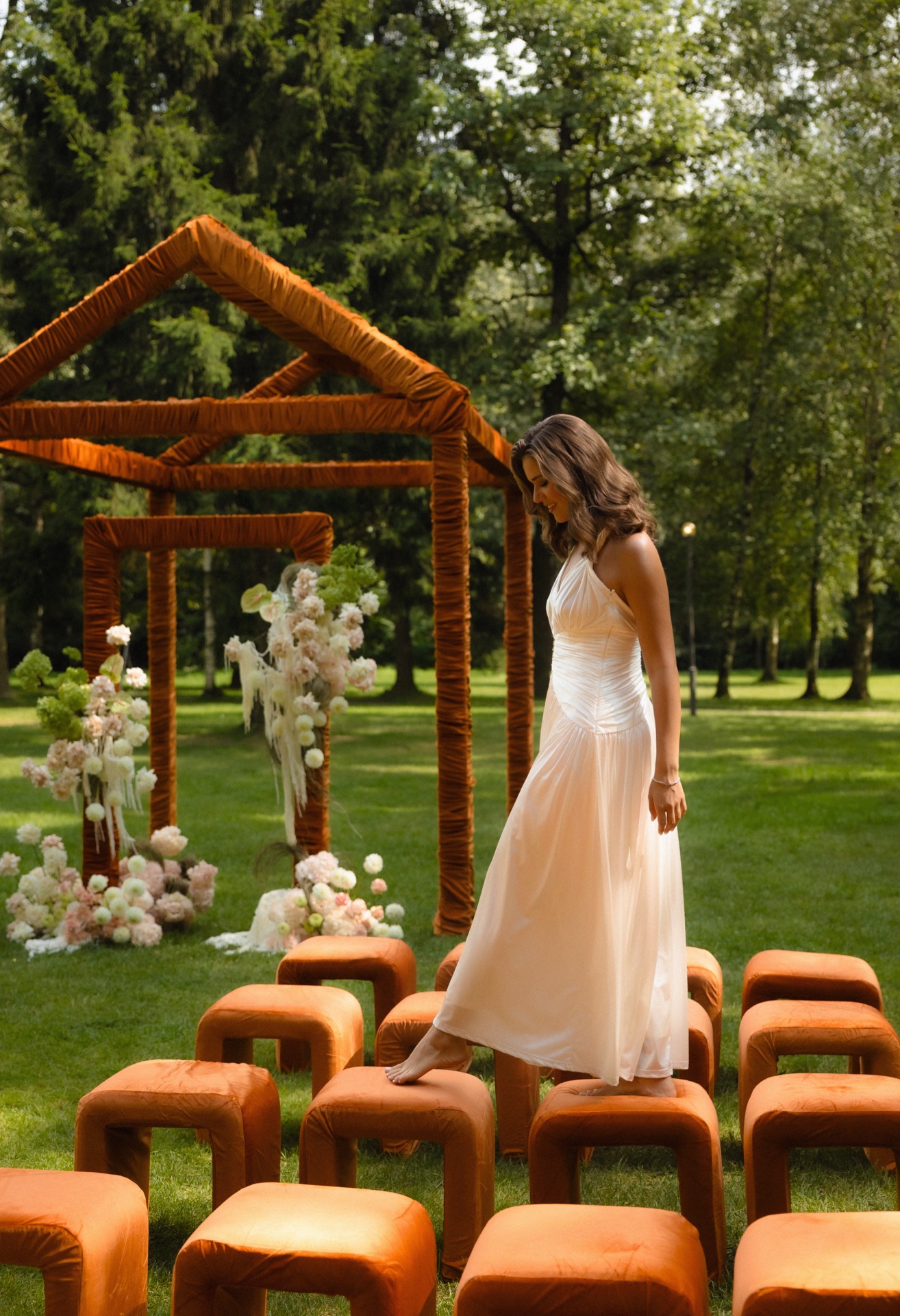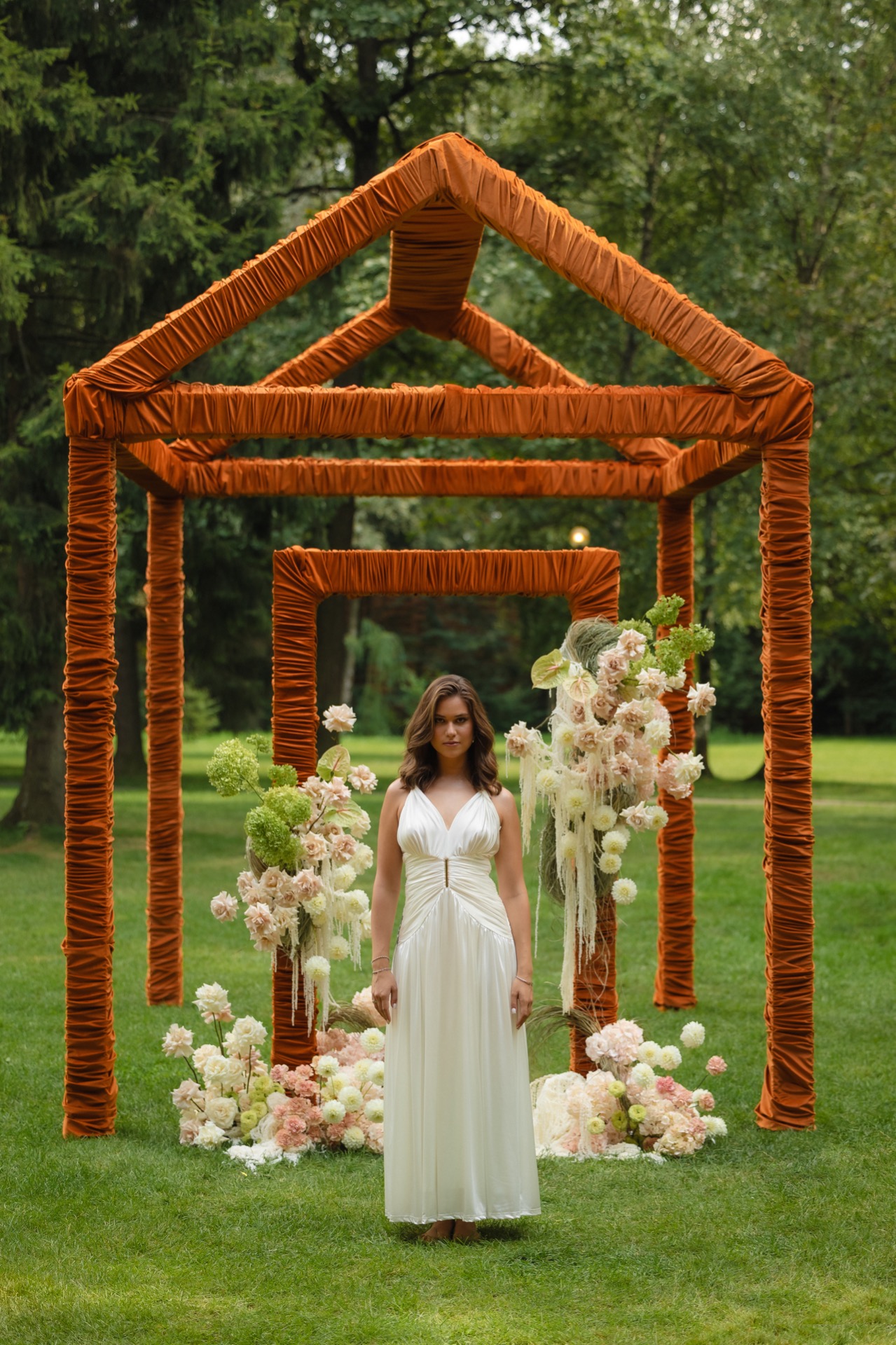 Главным визуальным решением стал оранжевый цвет — смелый, насыщенный и энергичный, он лёг в основу оформления, флористики и стилистических акцентов. Особенной деталью стали овощи в декоре — необычное, но тёплое и человечное решение, символизирующее заботу, дом и совместный быт.