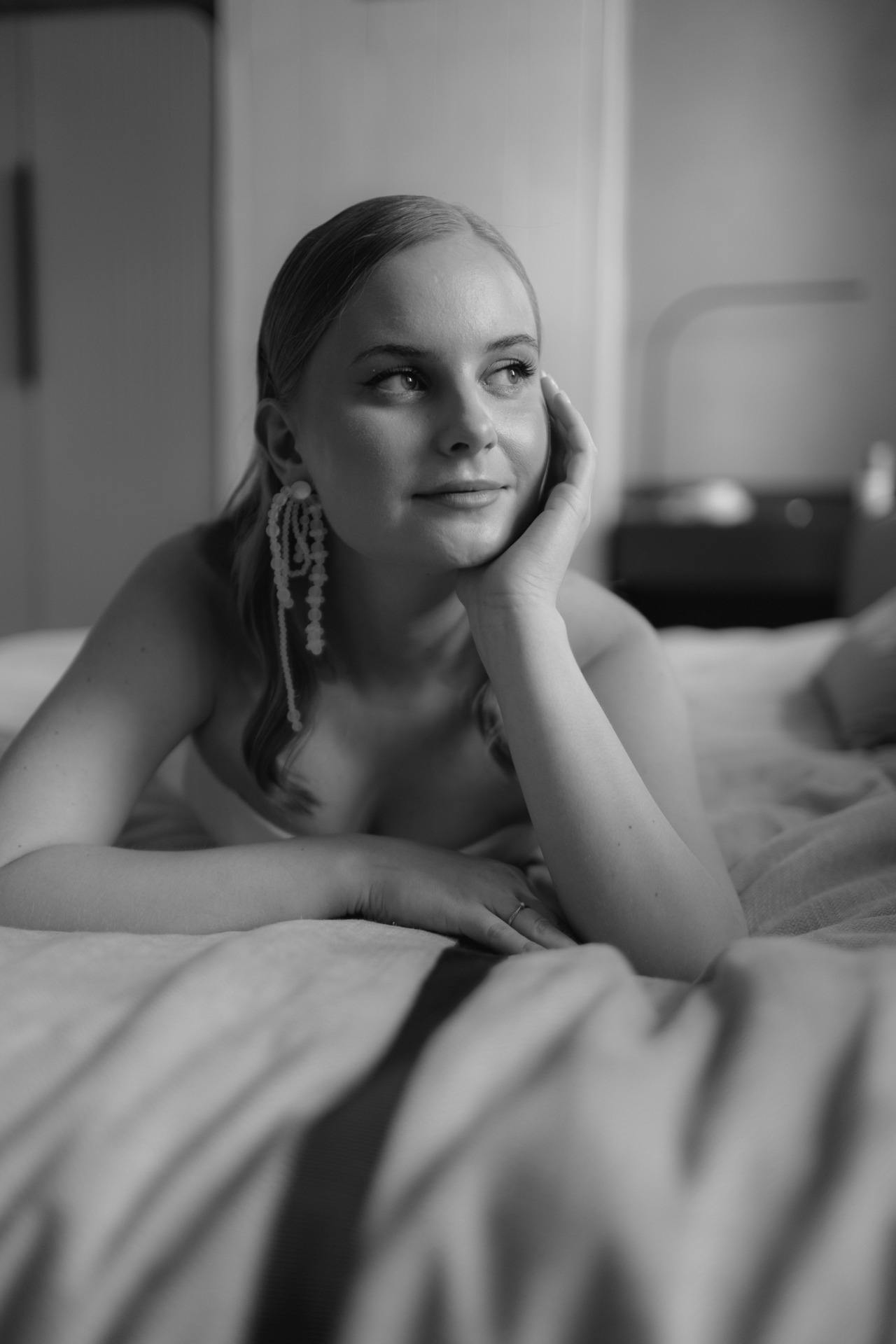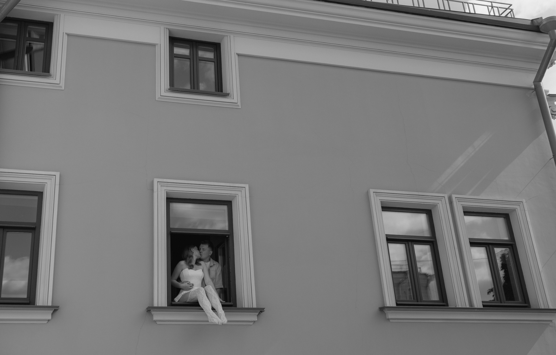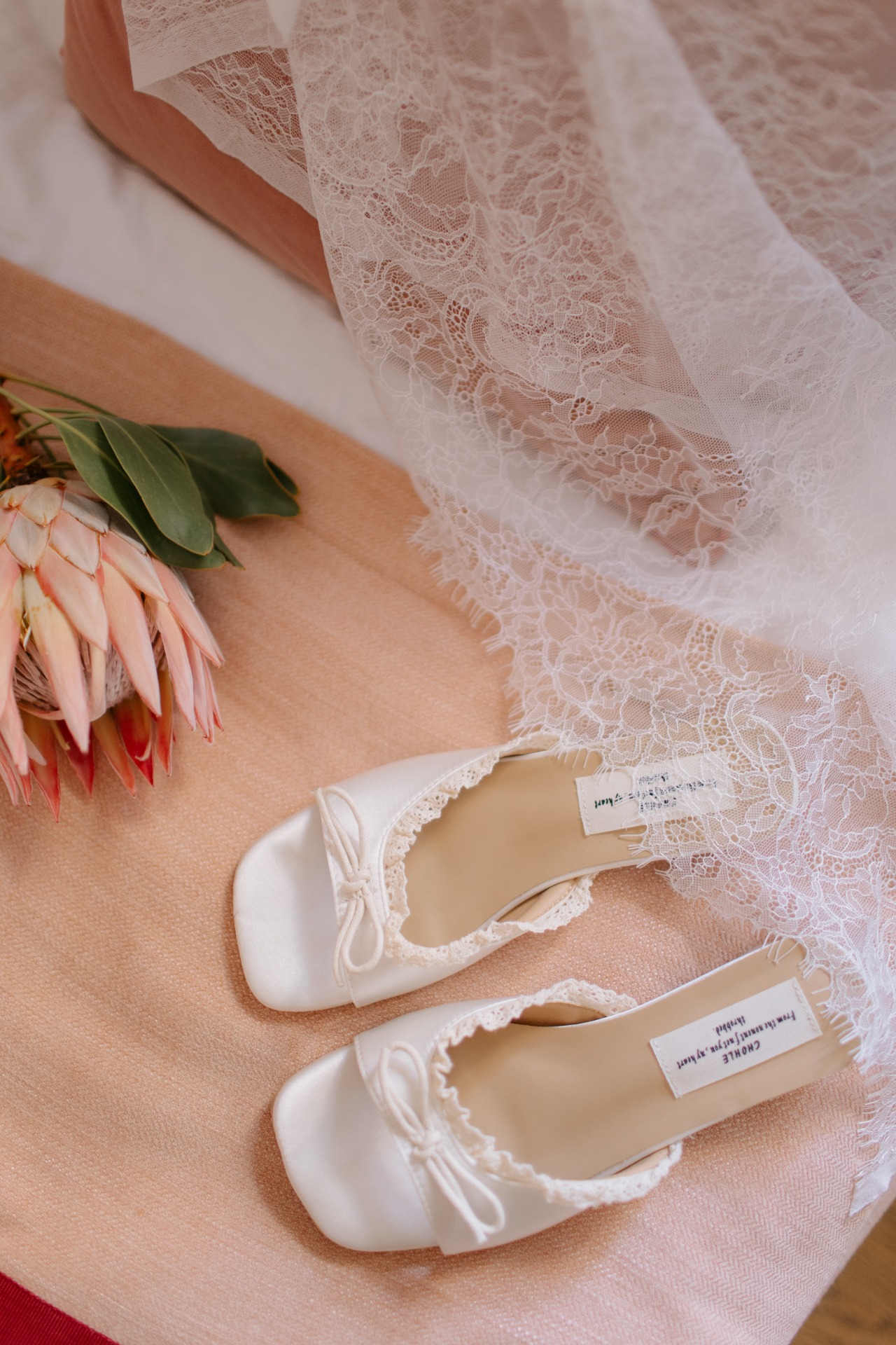 Утренние образы были подобраны под интерьер Twelve Reasons: у меня — кружевной корсет и объёмные шорты, а у Ильи — муслиновый костюм. Изюминкой этих образов стали отрез кружева и протея.