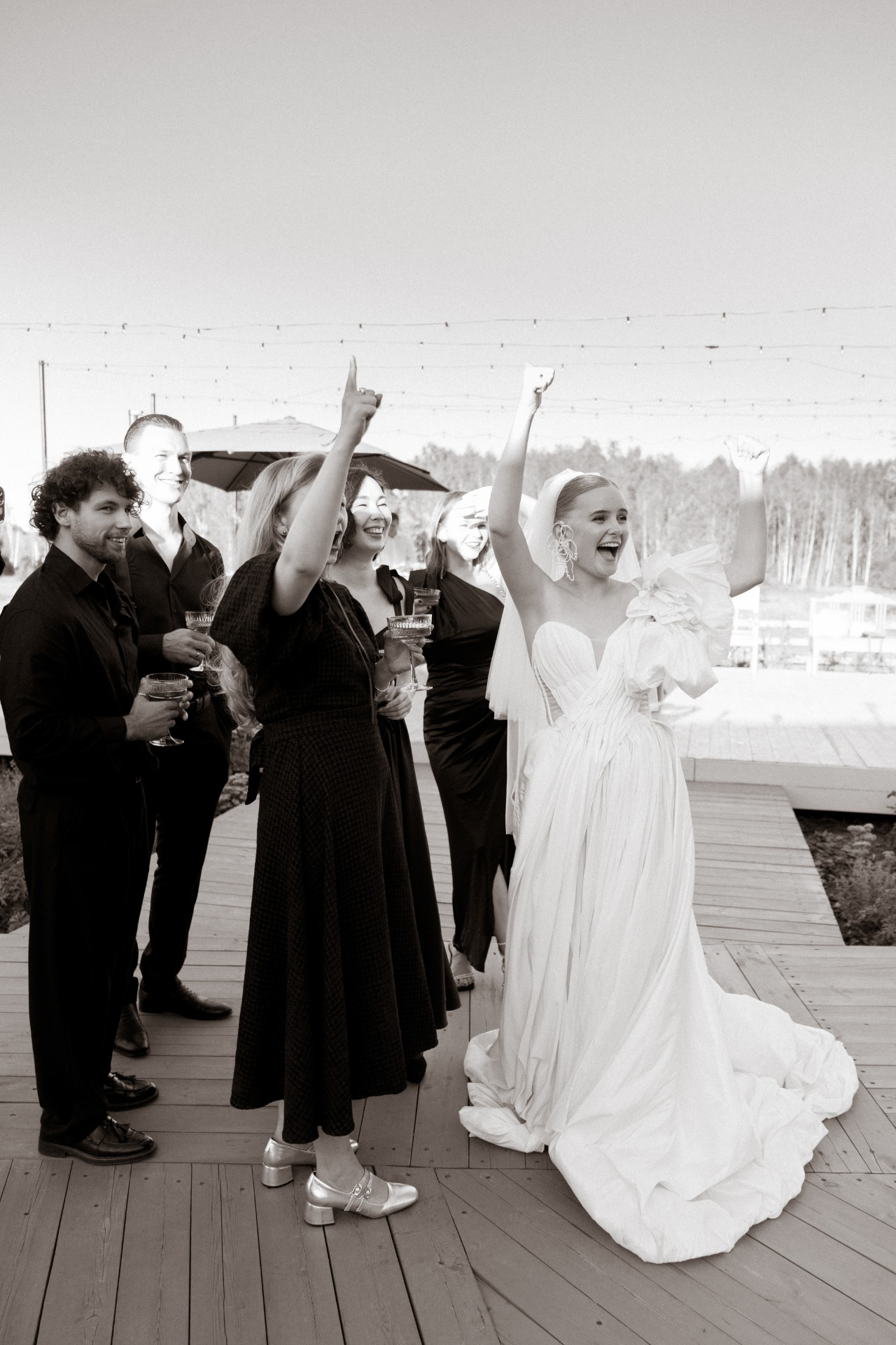 Вместо броска бутоньерки мы устроили гонку за пивным бочонком, а поймавшая мой букет гостья получила сертификат в «Золотое яблоко».