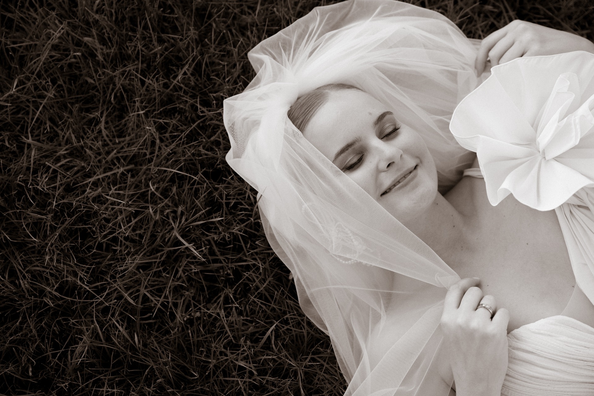 То самое платье я искала долго: случился мэтч в шестом по счёту свадебном салоне «Кураж» — с необычным асимметричным платьем из тафты и шёлка. Я дополнила его моносерьгой, которую сплела сама. Илья был в восторге, когда я вышла к арке!