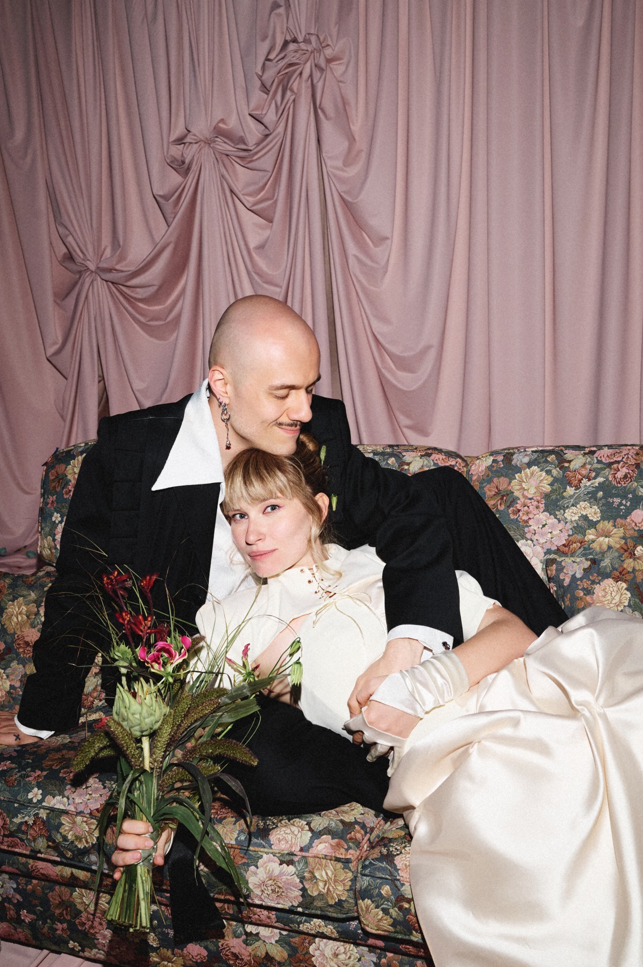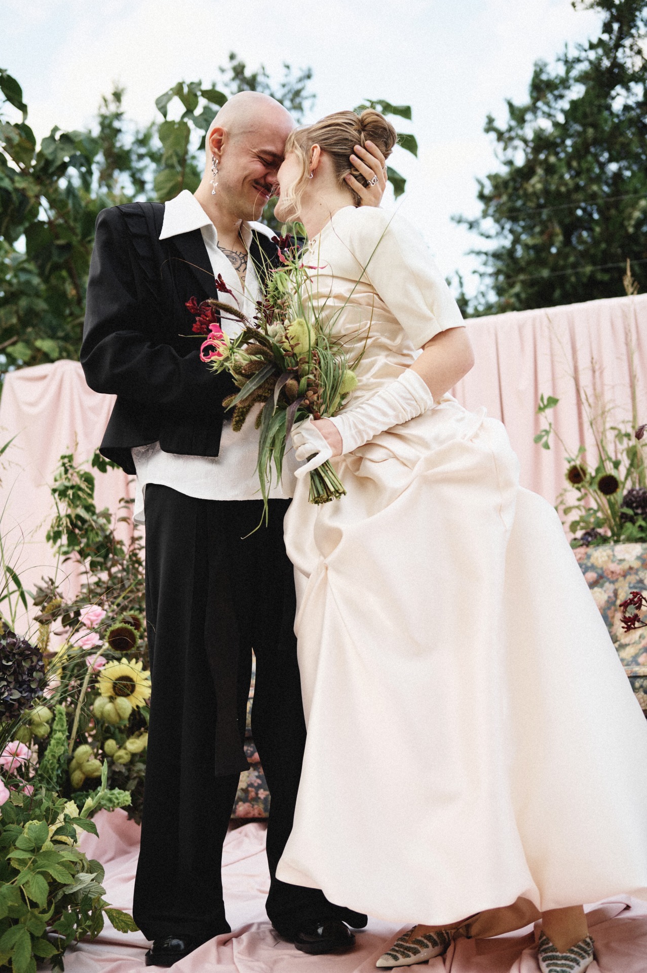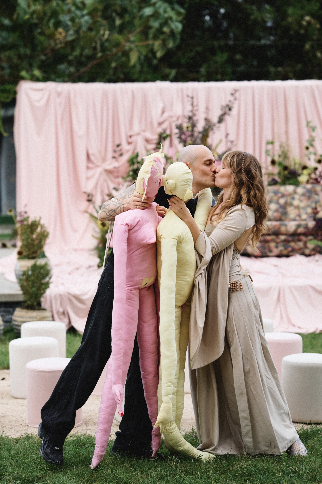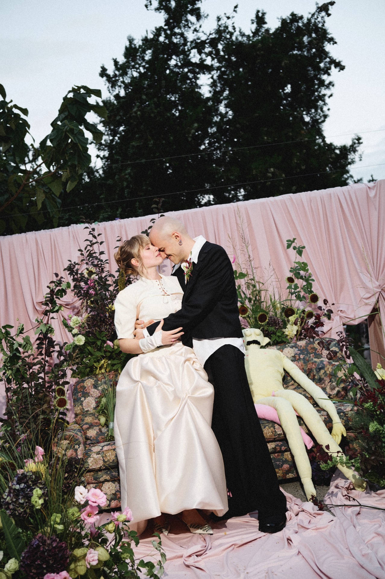 Когда мы начали подготовку, одно мы знали сразу: церемония будет на диване. Всё остальное постепенно выстроилось само собой в нашей креативной паре вместе с проджектом Разалией. Она очень точно подметила, что многие детали нашей истории связаны с домиком, и в этот момент мы поняли: ощущение дома действительно самое важное для нас. Его мы ищем вокруг и друг в друге. Так родилась наша концепция «Мы в домике».