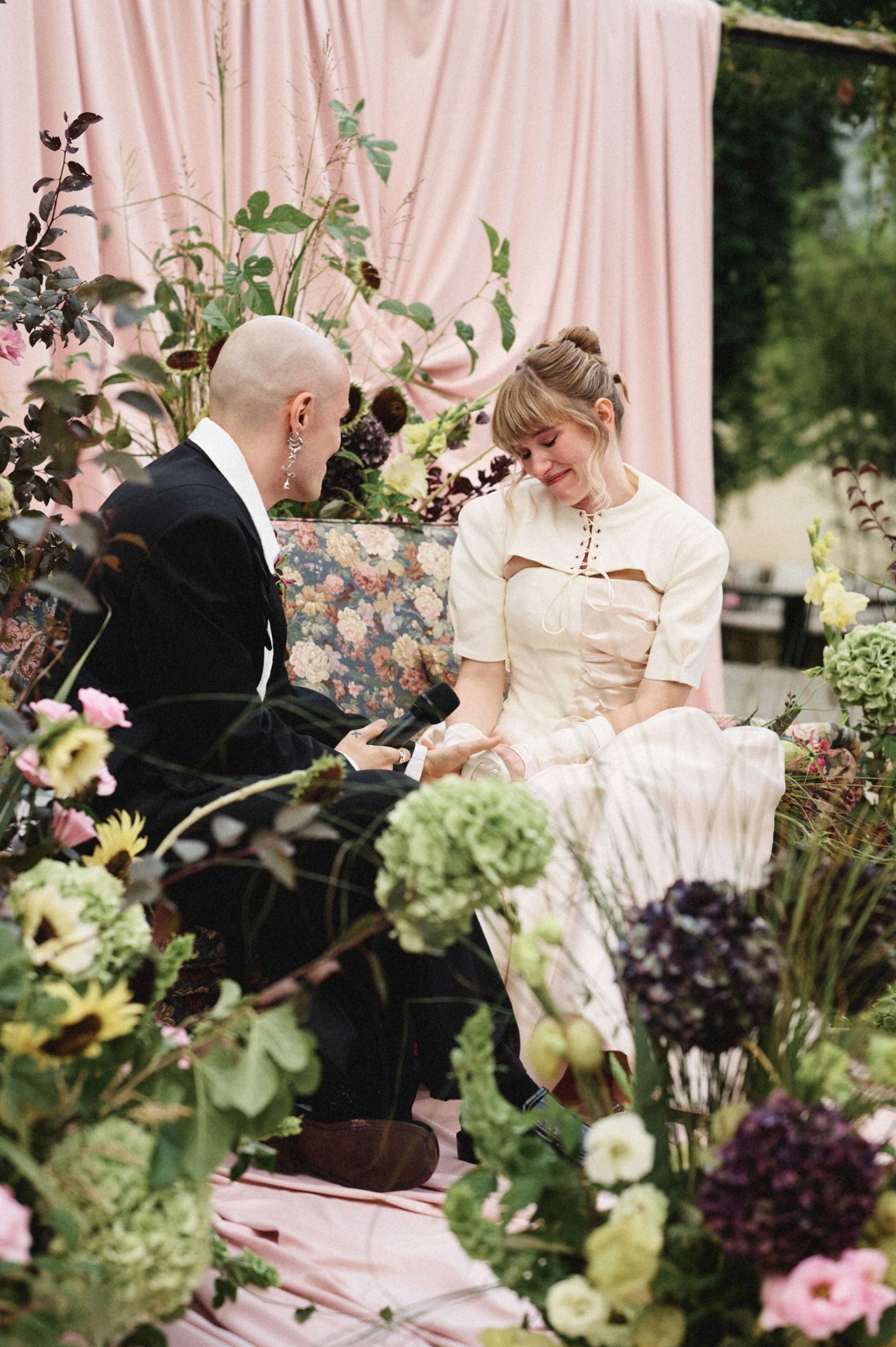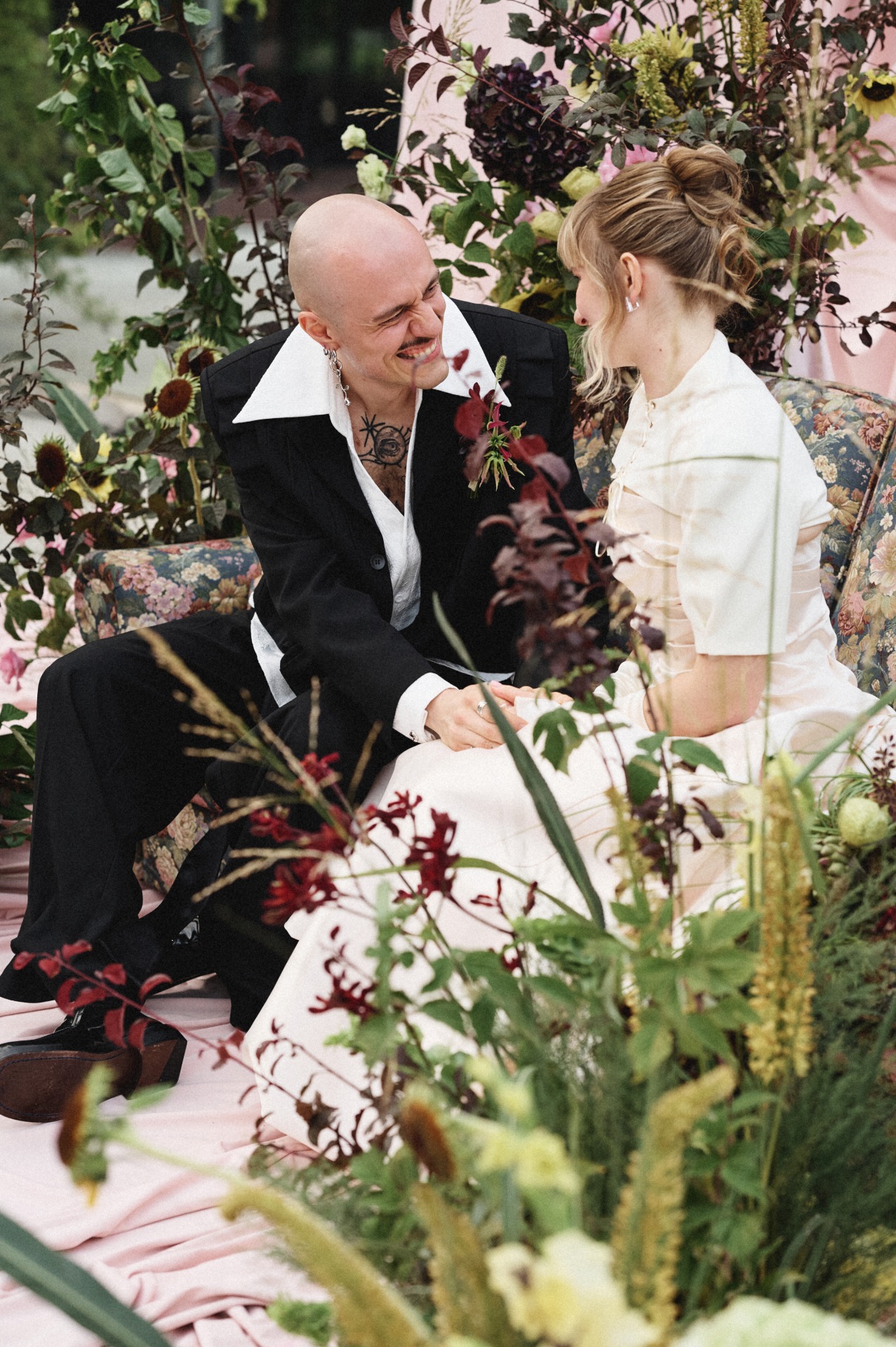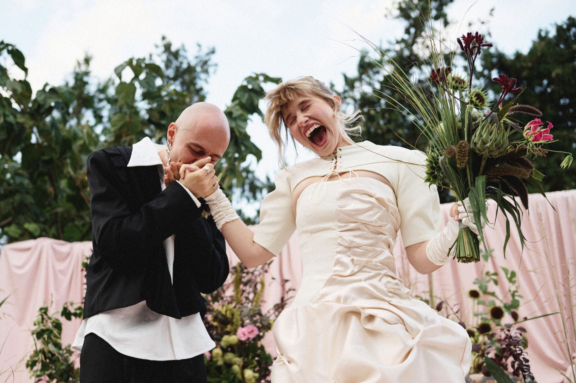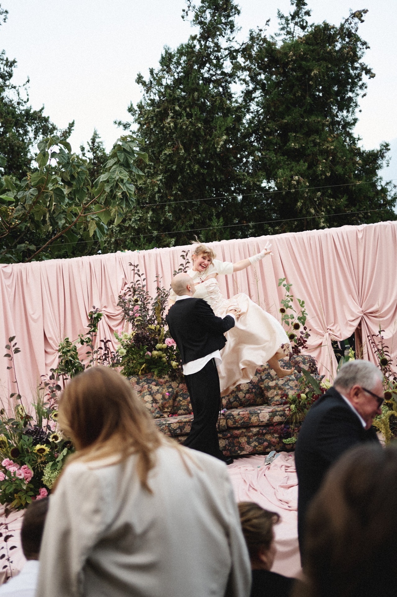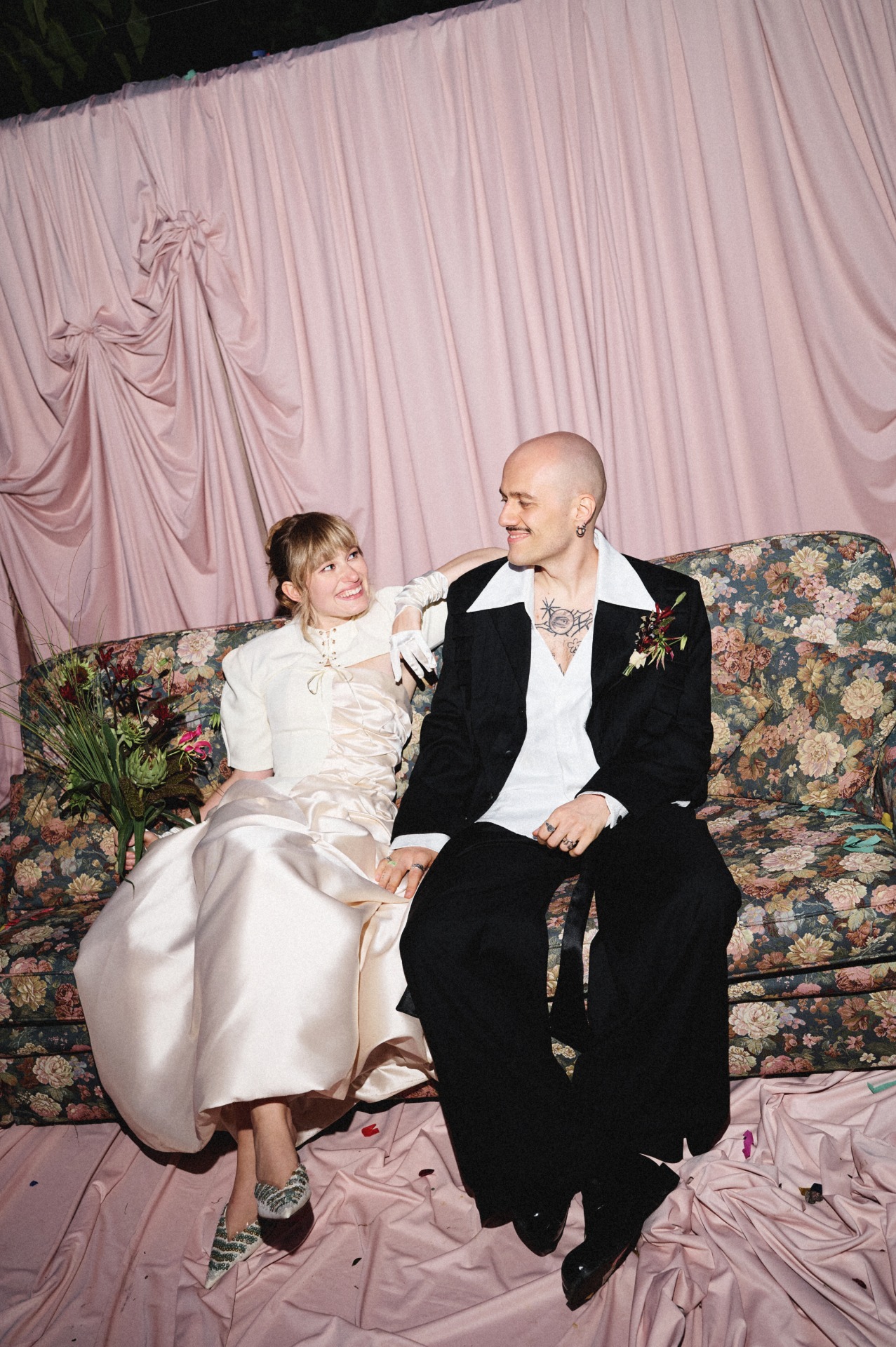 Когда мы начали подготовку, одно мы знали сразу: церемония будет на диване. Всё остальное постепенно выстроилось само собой в нашей креативной паре вместе с проджектом Разалией. Она очень точно подметила, что многие детали нашей истории связаны с домиком, и в этот момент мы поняли: ощущение дома действительно самое важное для нас. Его мы ищем вокруг и друг в друге. Так родилась наша концепция «Мы в домике».