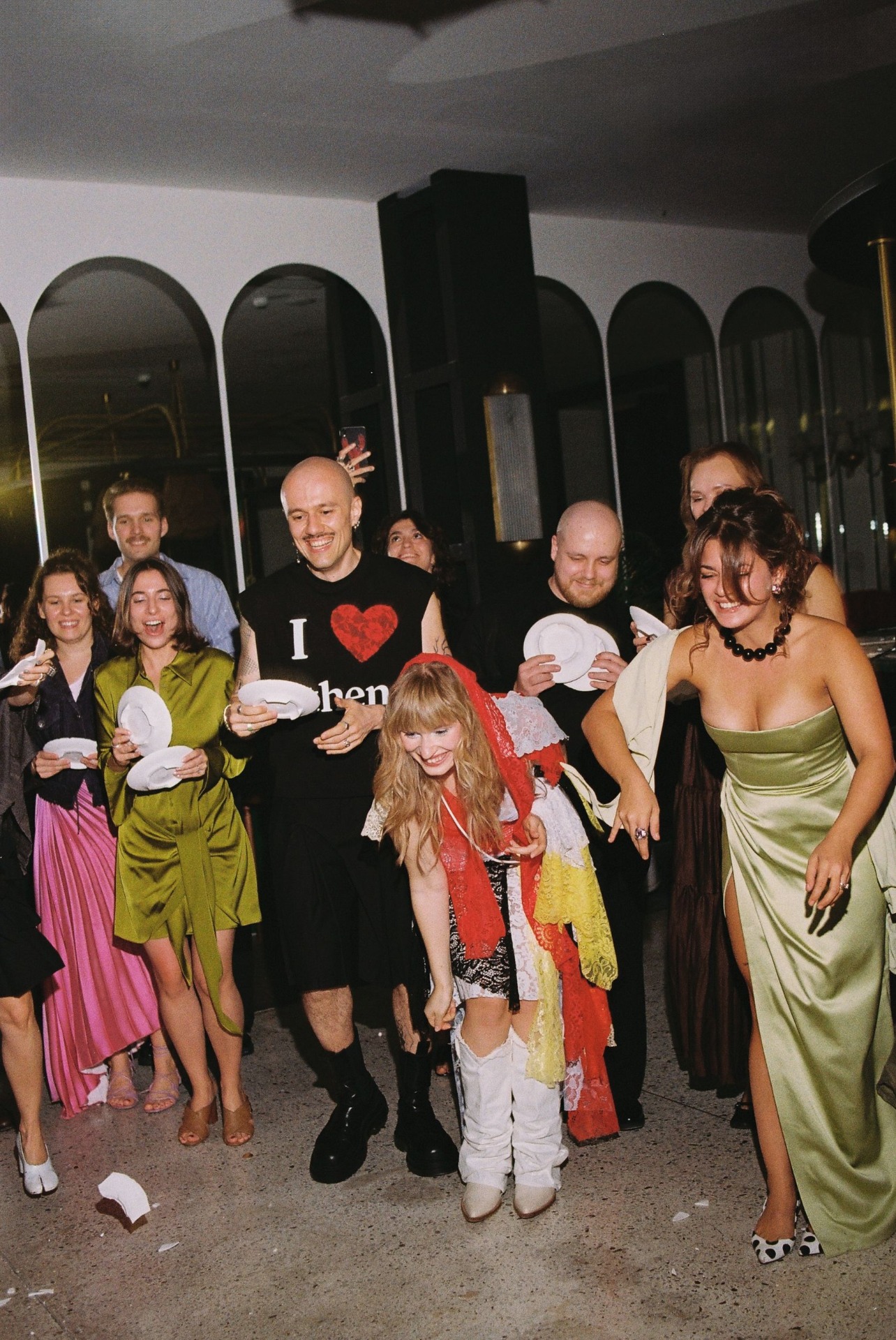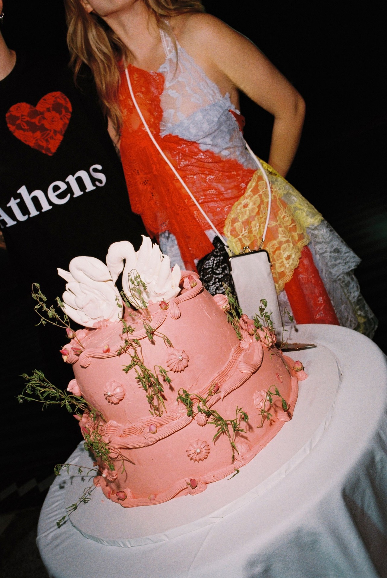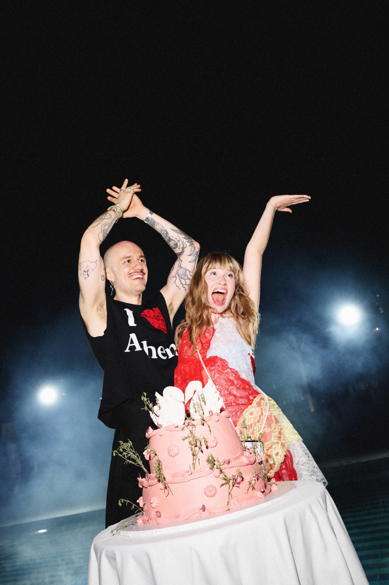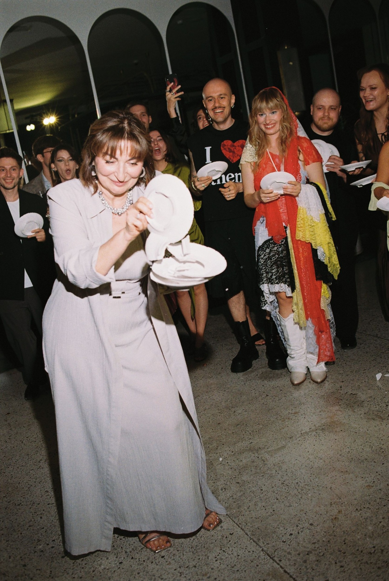 После ужина и тостов от самых близких все вышли на танцпол, чтобы станцевать «Сиртаки». А как иначе, ведь у меня греческие корни. Следуя традиции, после танца все пятьдесят пять гостей разбивали тарелки — получилась такая групповая терапия, которая стала одним из самых ярких моментов вечера. Дальше всё было как в тумане: торт, бросание букета, танцы, сольное выступление Виталика, нашего друга — и вот кто-то уже прыгает в бассейн, несмотря на прохладную погоду.