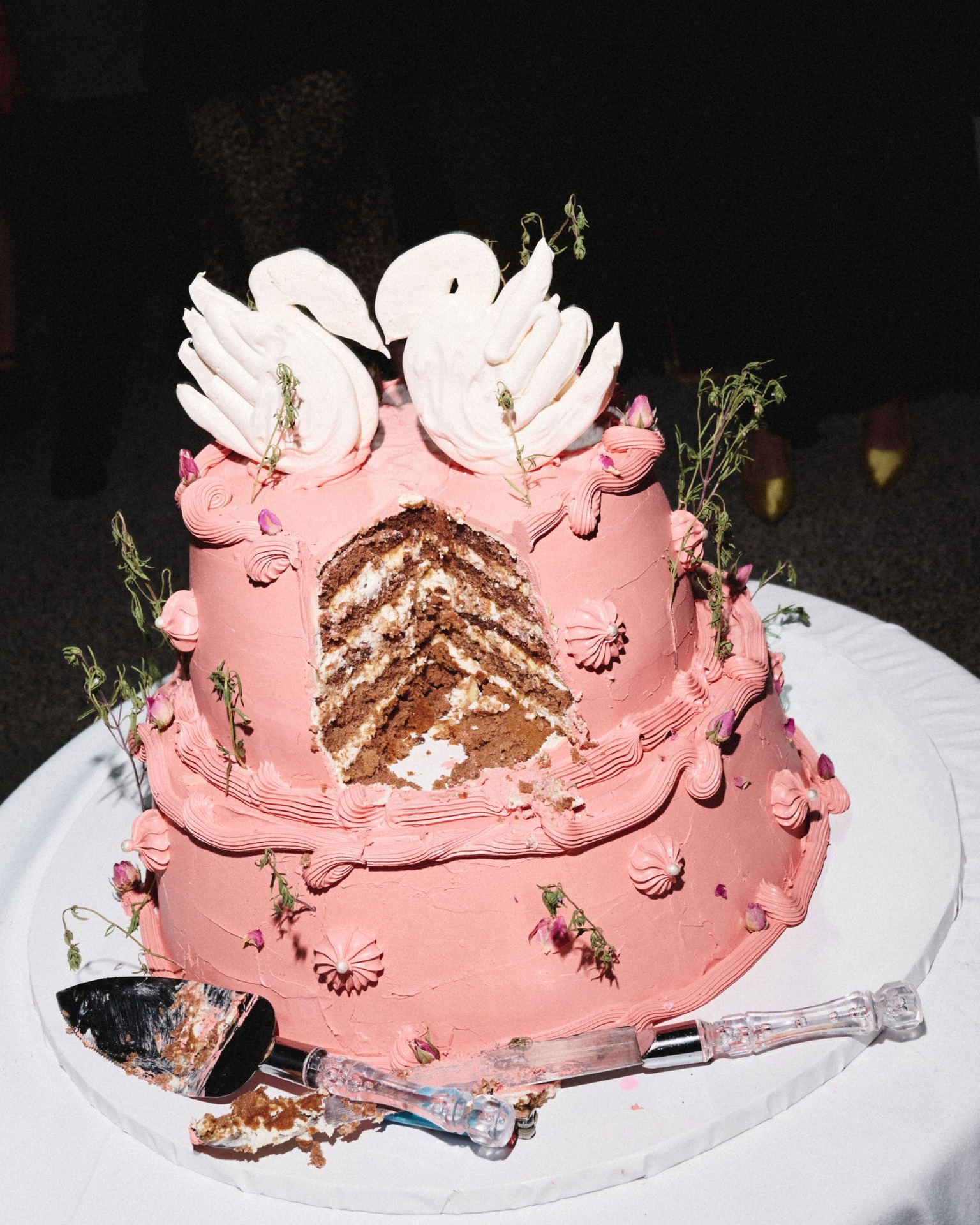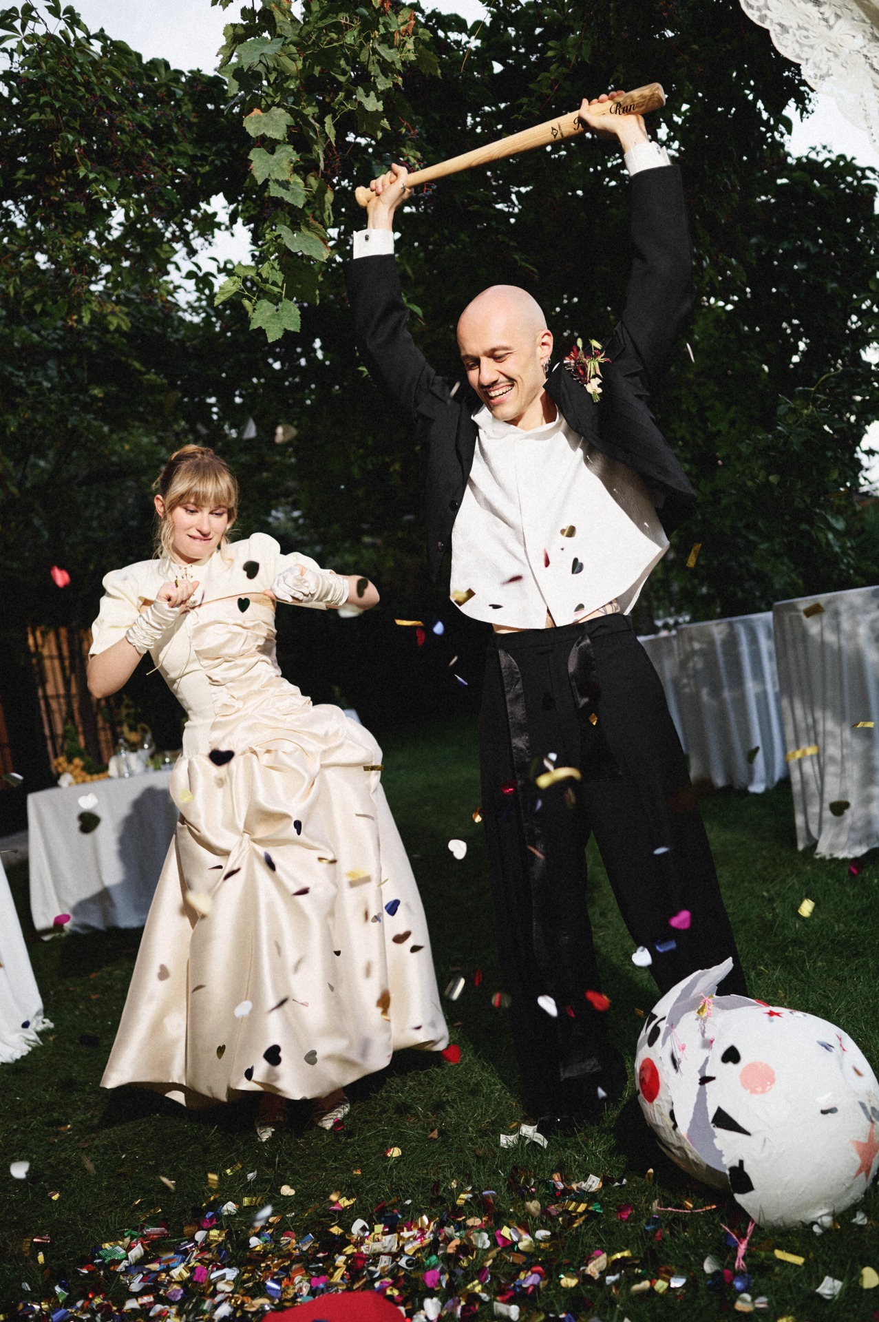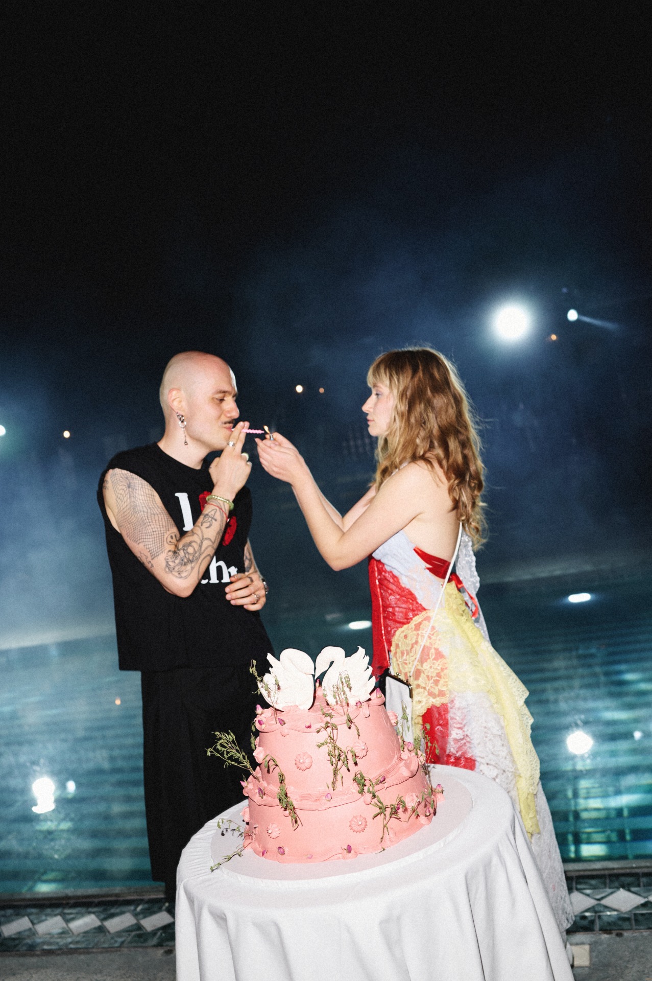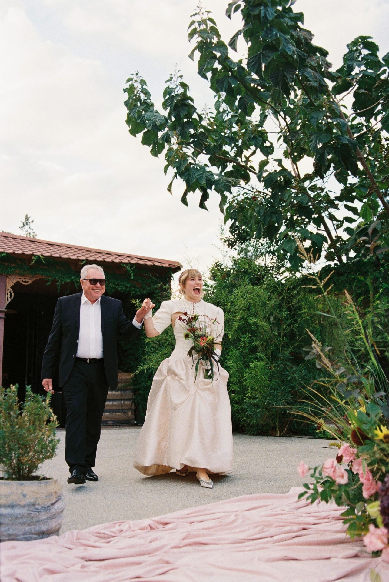 После ужина и тостов от самых близких все вышли на танцпол, чтобы станцевать «Сиртаки». А как иначе, ведь у меня греческие корни. Следуя традиции, после танца все пятьдесят пять гостей разбивали тарелки — получилась такая групповая терапия, которая стала одним из самых ярких моментов вечера. Дальше всё было как в тумане: торт, бросание букета, танцы, сольное выступление Виталика, нашего друга — и вот кто-то уже прыгает в бассейн, несмотря на прохладную погоду.