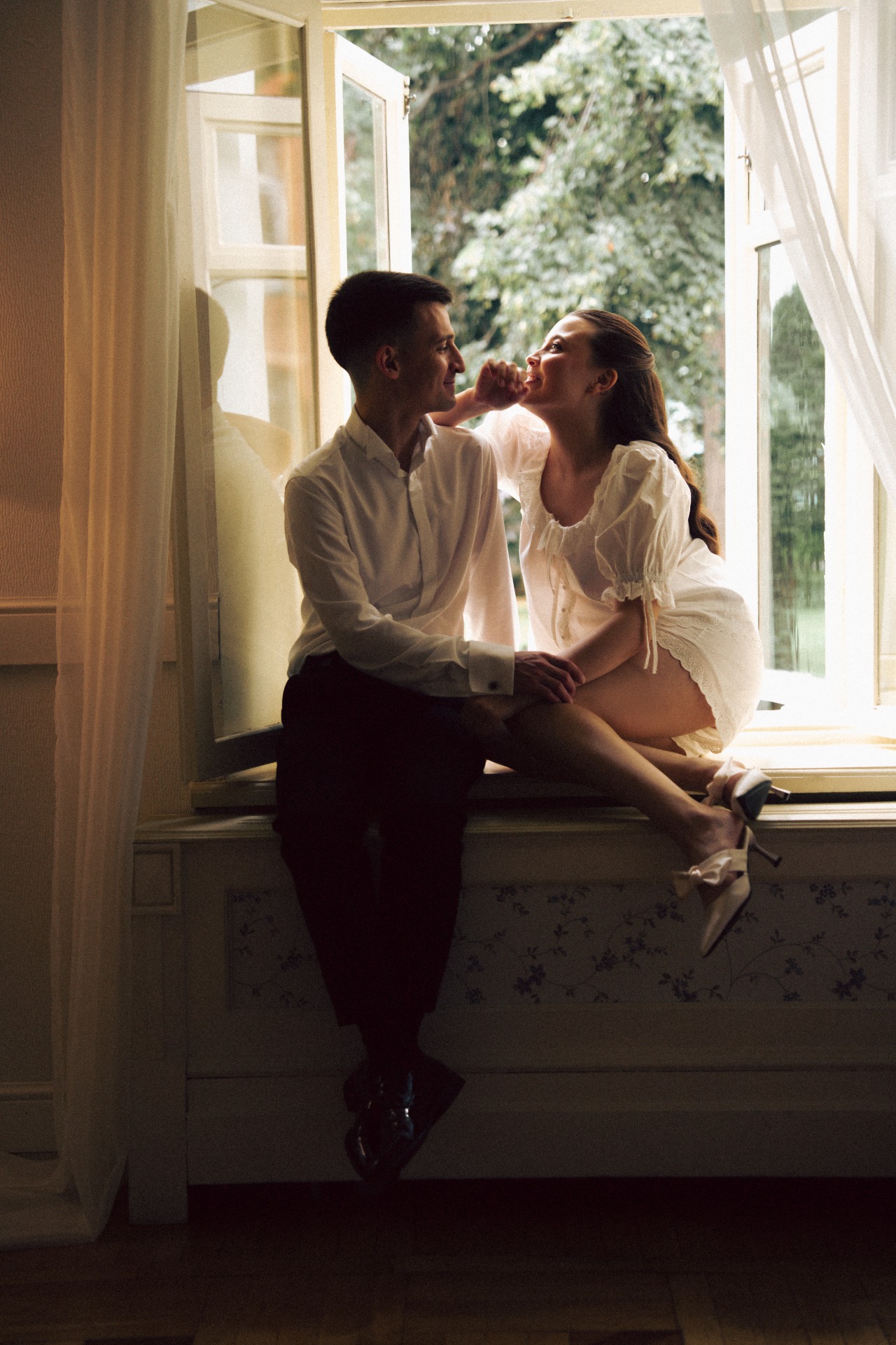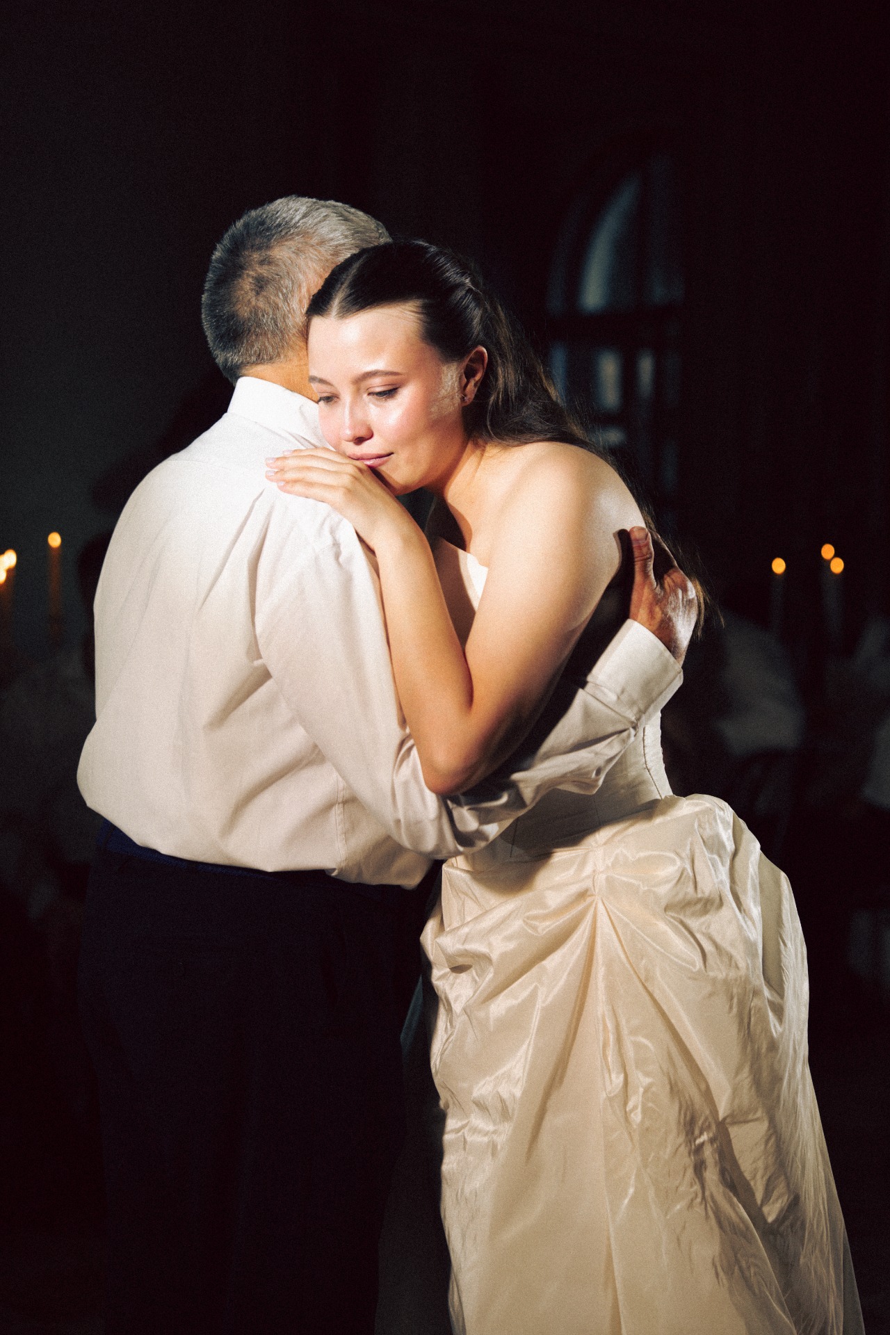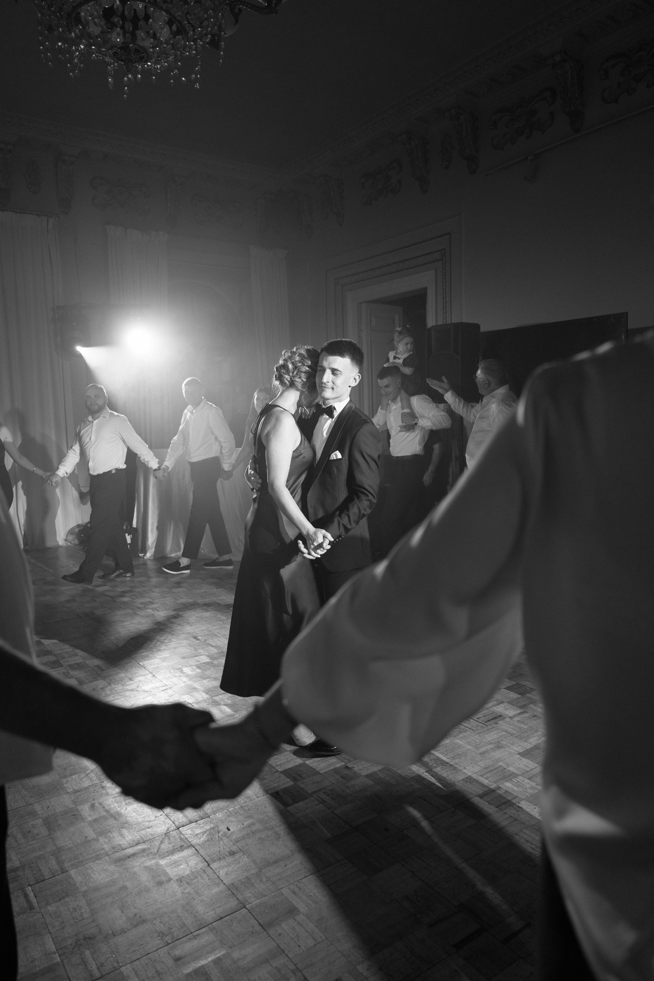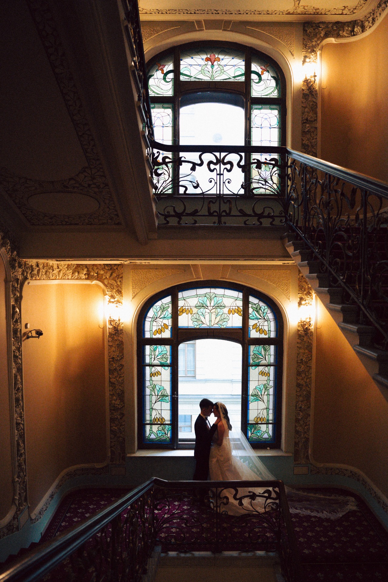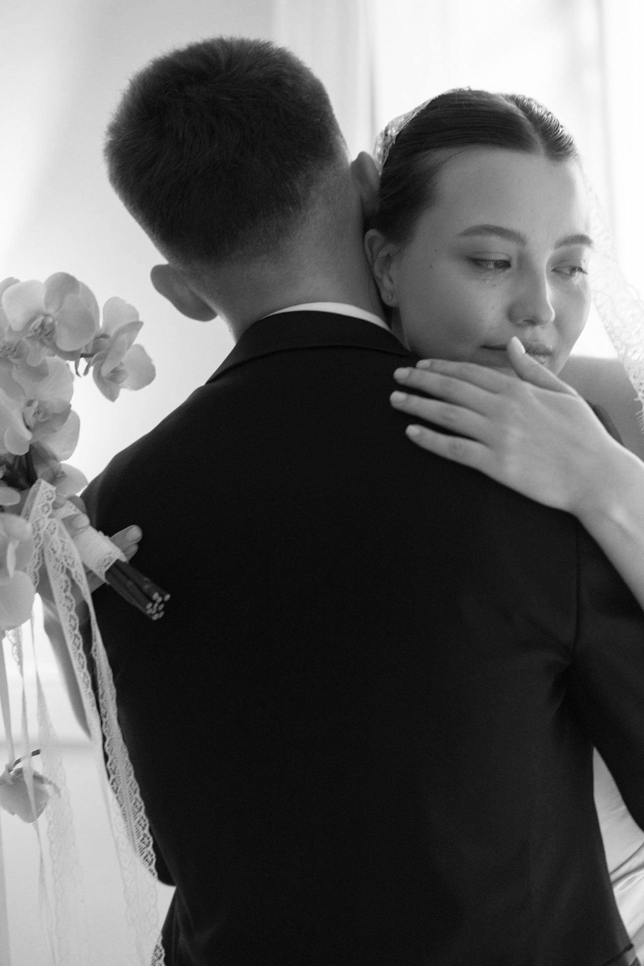Наша церемония заключения брака прошла в гостинице «Националь» с видом на Кремль и Манежную площадь, в окружении семьи. До церемонии мы провели небольшую съёмку на лестнице и в коридорах гостиницы, встречали гостей и очень волновались. Потом были трепетные «да», слёзы и поздравления от родных.