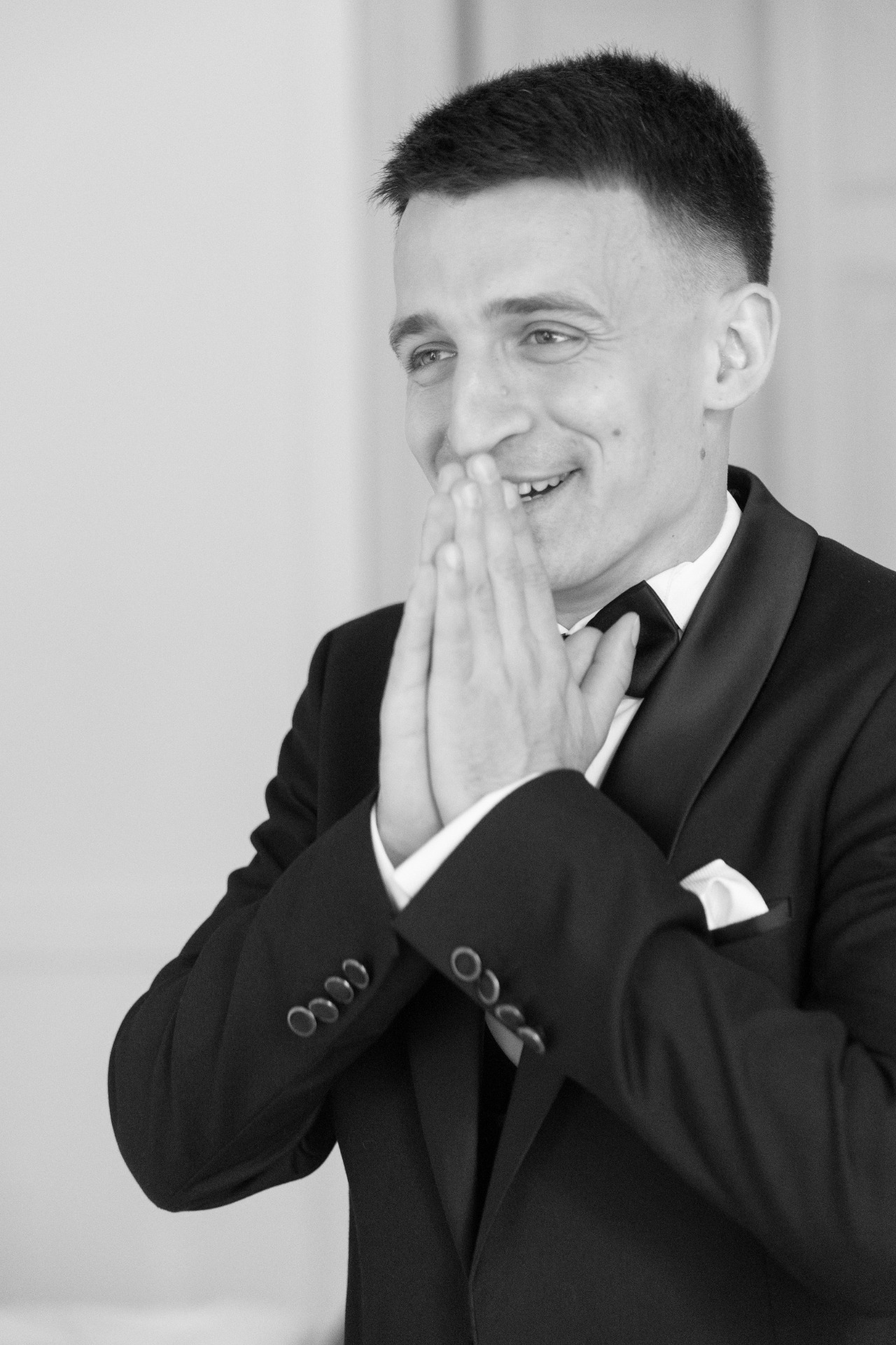 С образом Артёма всё было гораздо проще: он хотел классический смокинг black tie. Мы не хотели покупать костюм на один вечер и решили взять его в прокат. Нашёлся он, конечно, после множества примерок в салоне suittie.ru.