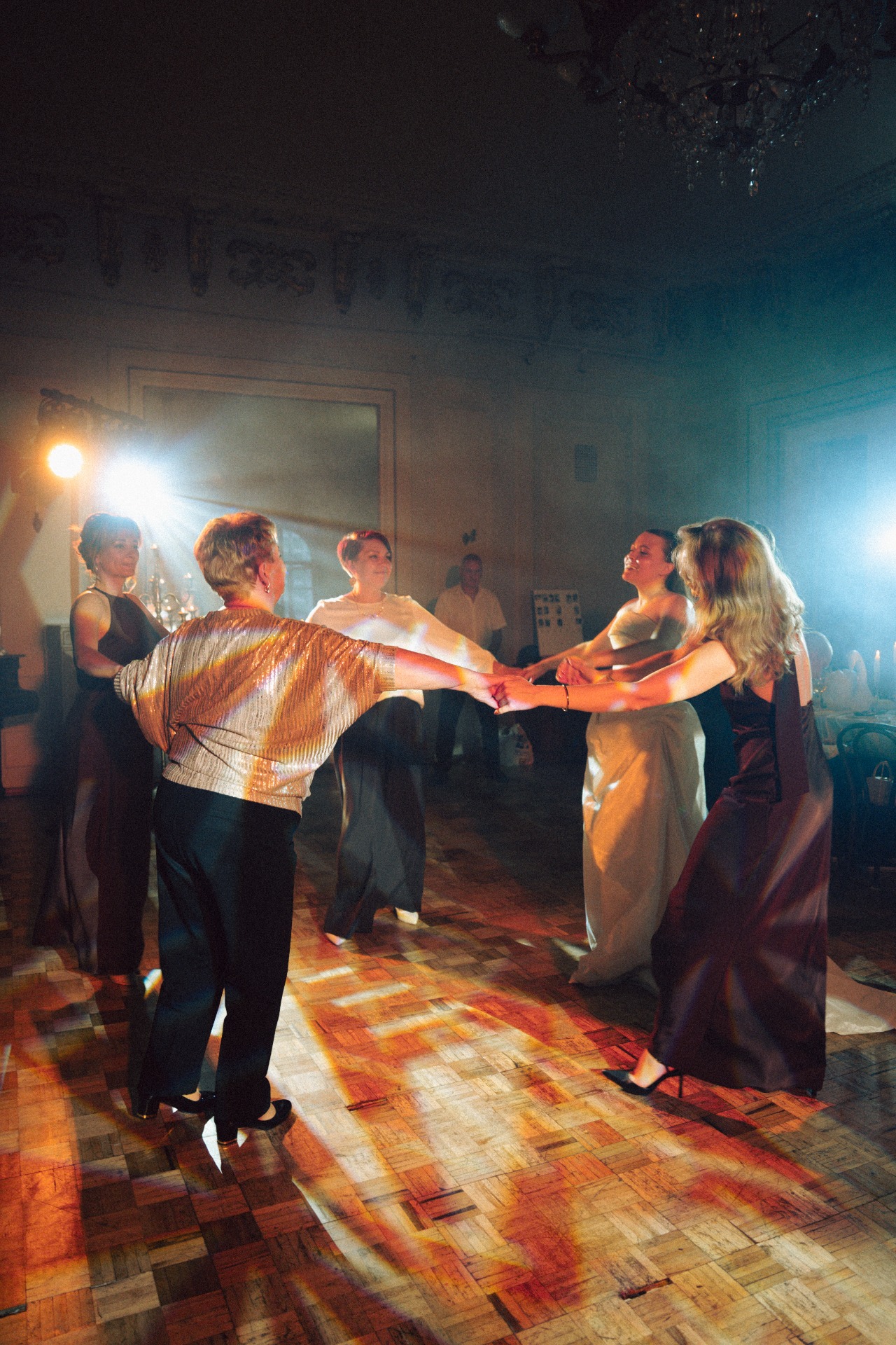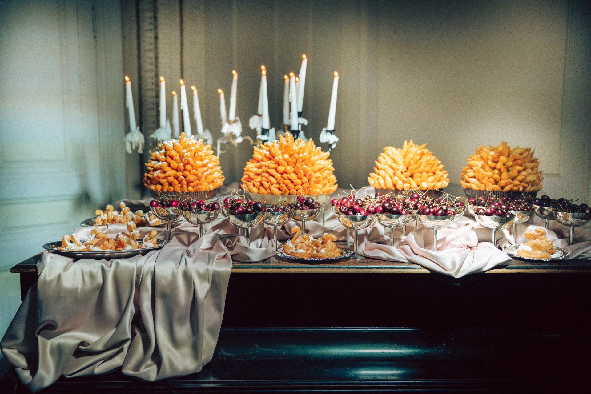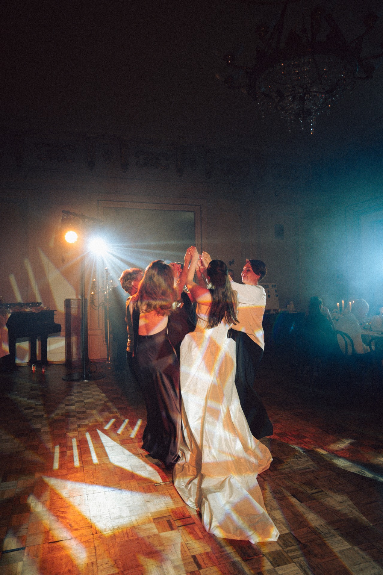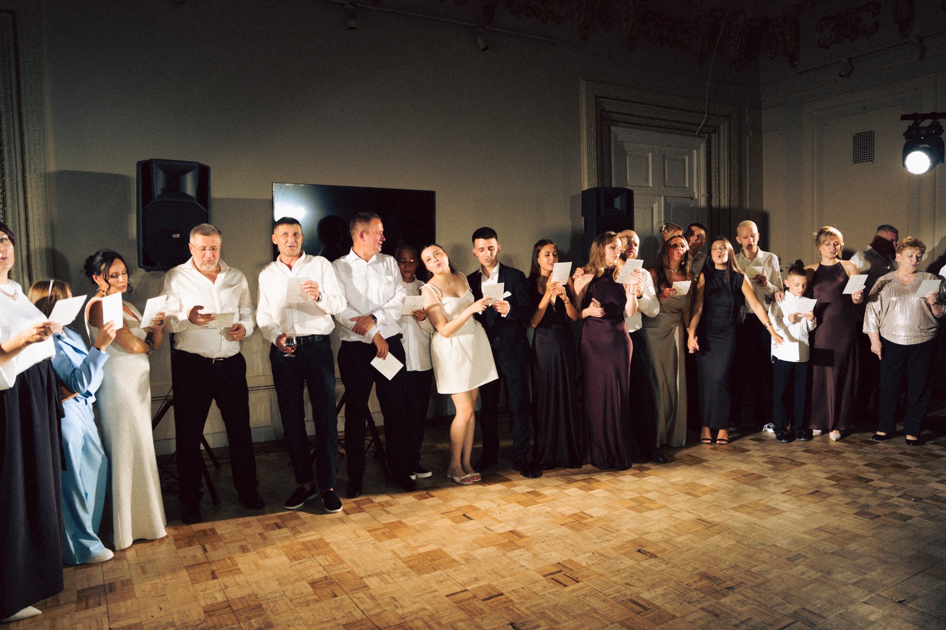 Сам ужин прошёл в особняке XIX века на Новой Басманной, в залах проекта 21kult.ru. С монтажом декора были небольшие шероховатости, поэтому мы проводили время с гостями на велкоме: пили шампанское, делились впечатлениями от церемонии и своими ожиданиями от вечера.