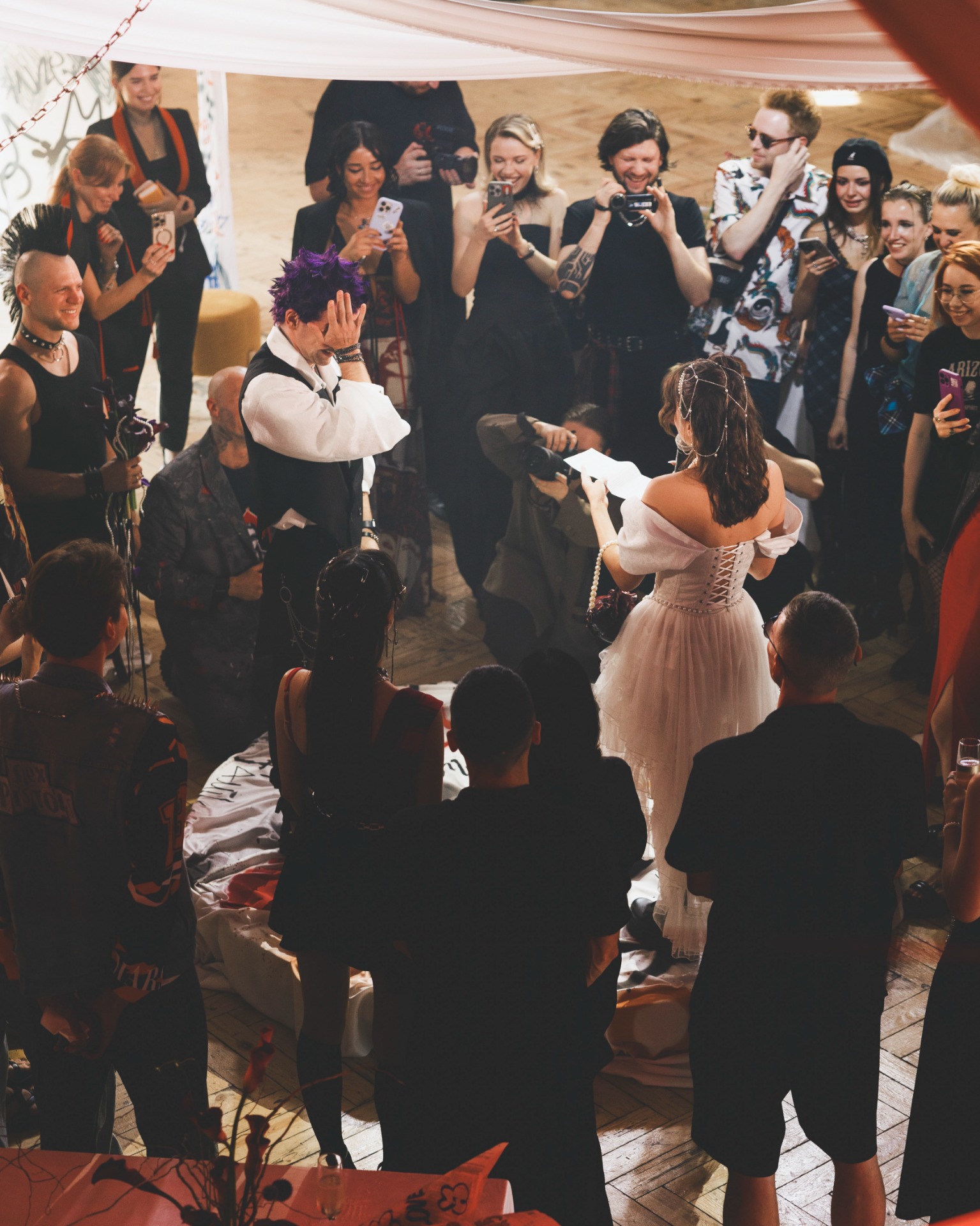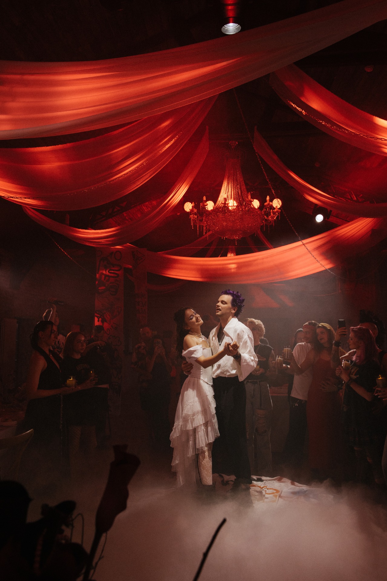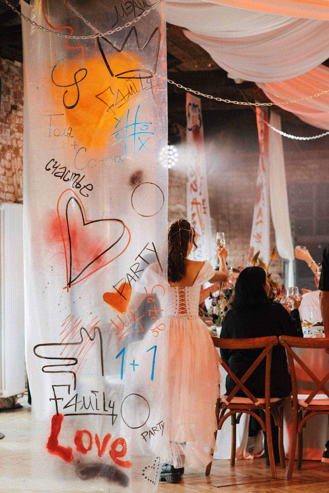 Если опустить детали, то готовиться мы начали в апреле 2025 года, а праздник состоялся 8 июля. В январе мы очень быстро решили, что будем делать панк-свадьбу, и буквально за час придумали декор, а в апреле уже вместе с организатором начали воплощать наши идеи в жизнь.