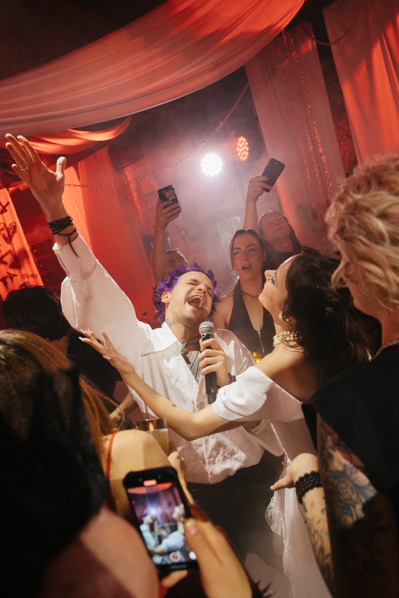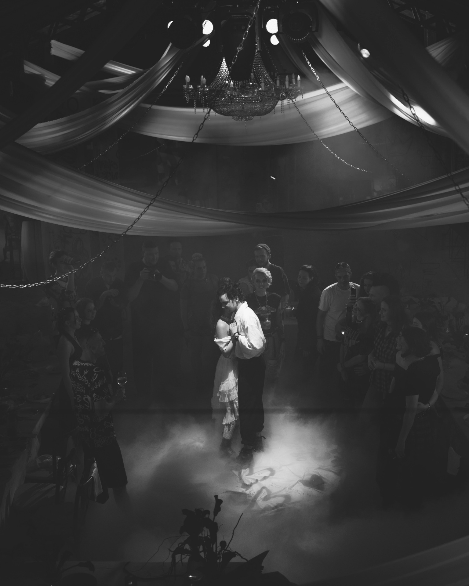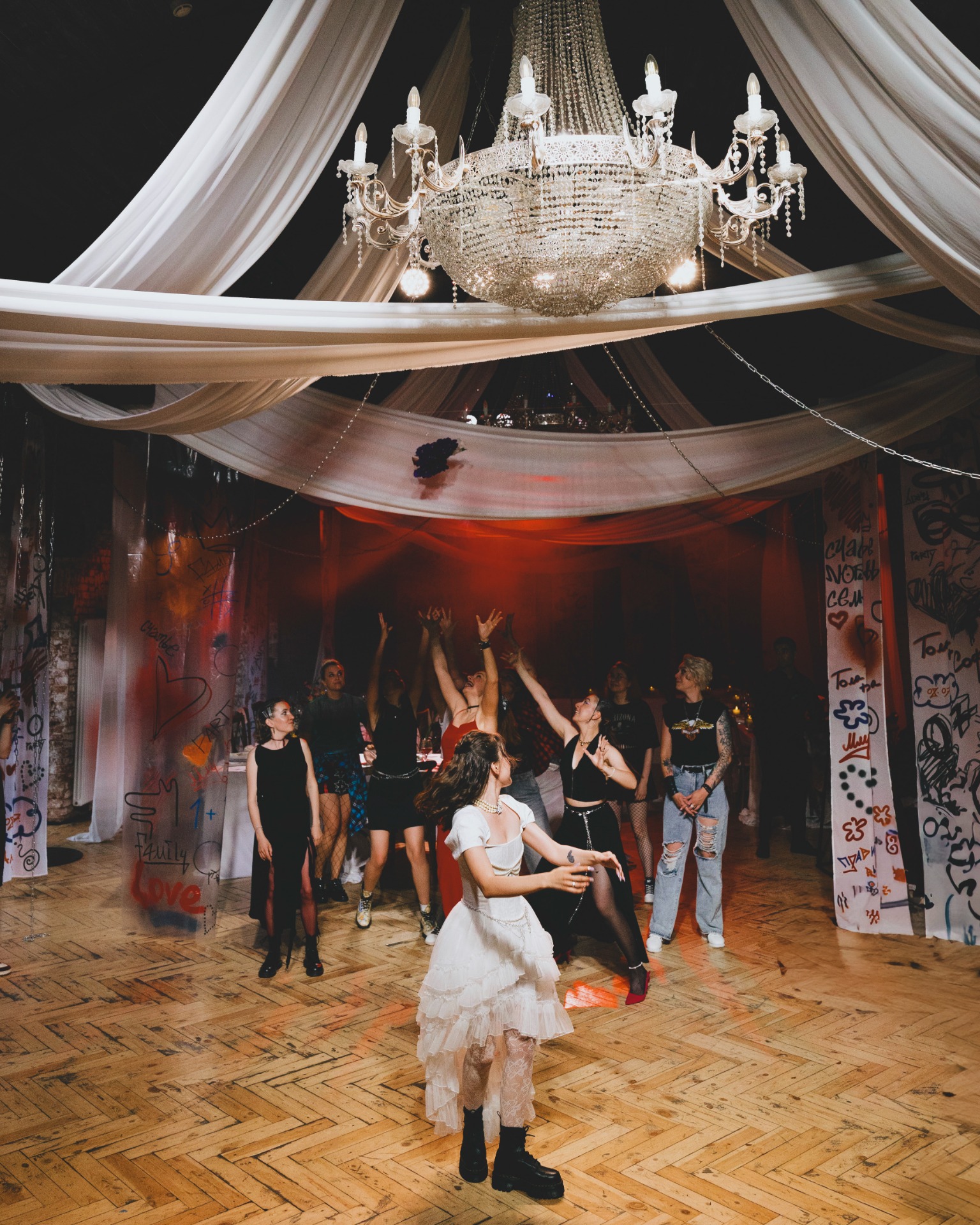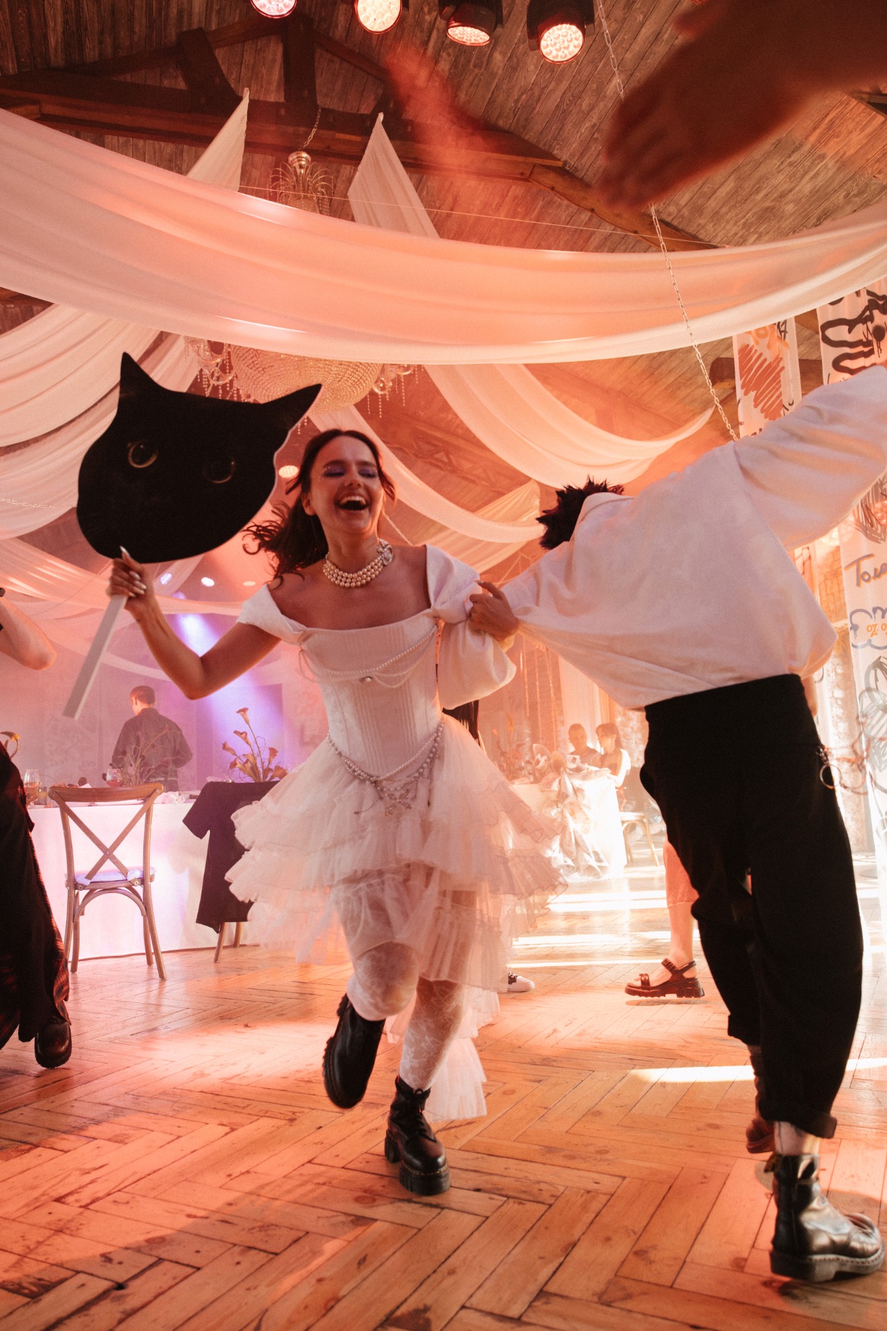 Если опустить детали, то готовиться мы начали в апреле 2025 года, а праздник состоялся 8 июля. В январе мы очень быстро решили, что будем делать панк-свадьбу, и буквально за час придумали декор, а в апреле уже вместе с организатором начали воплощать наши идеи в жизнь.