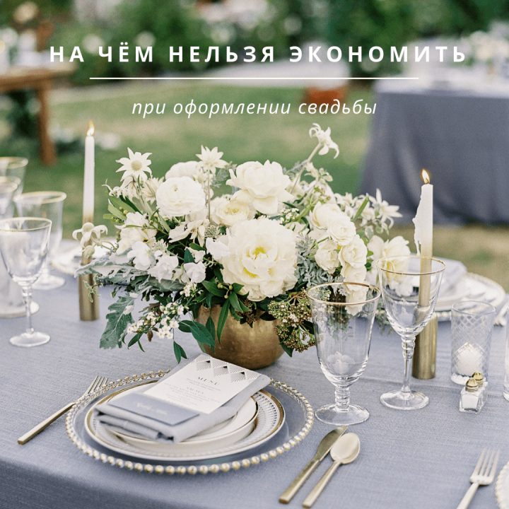 - Если бюджет на декор сильно ограничен – не стоит тратить все деньги на детали: винтажные подсвечники, дорогую полиграфию или индивидуальную сервировку стола.