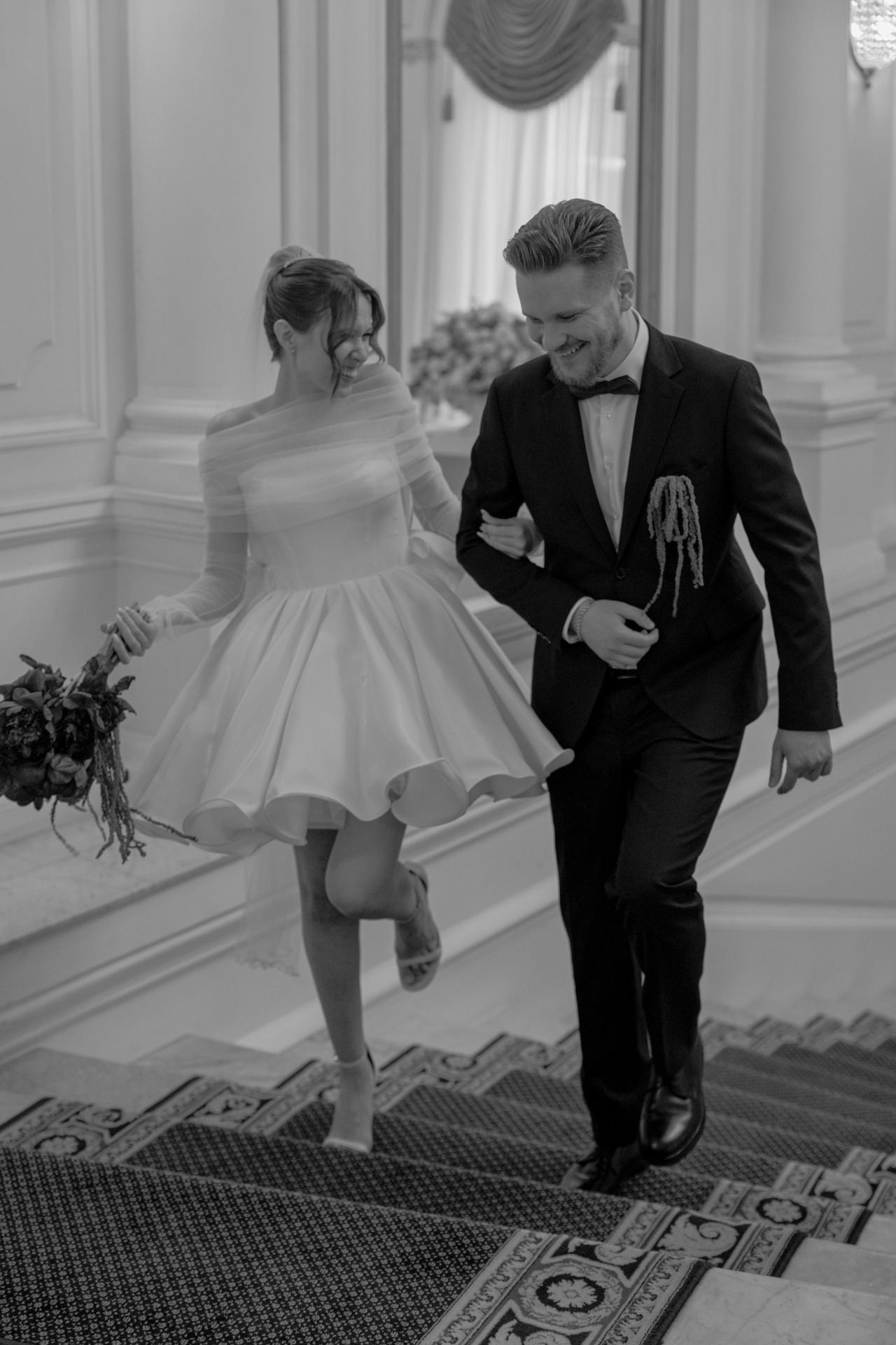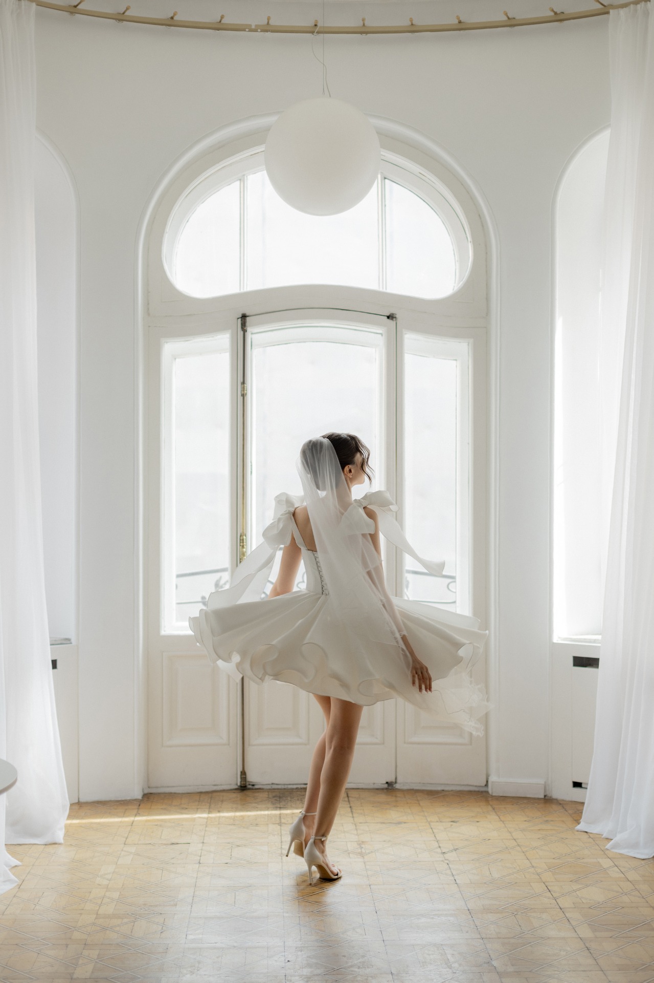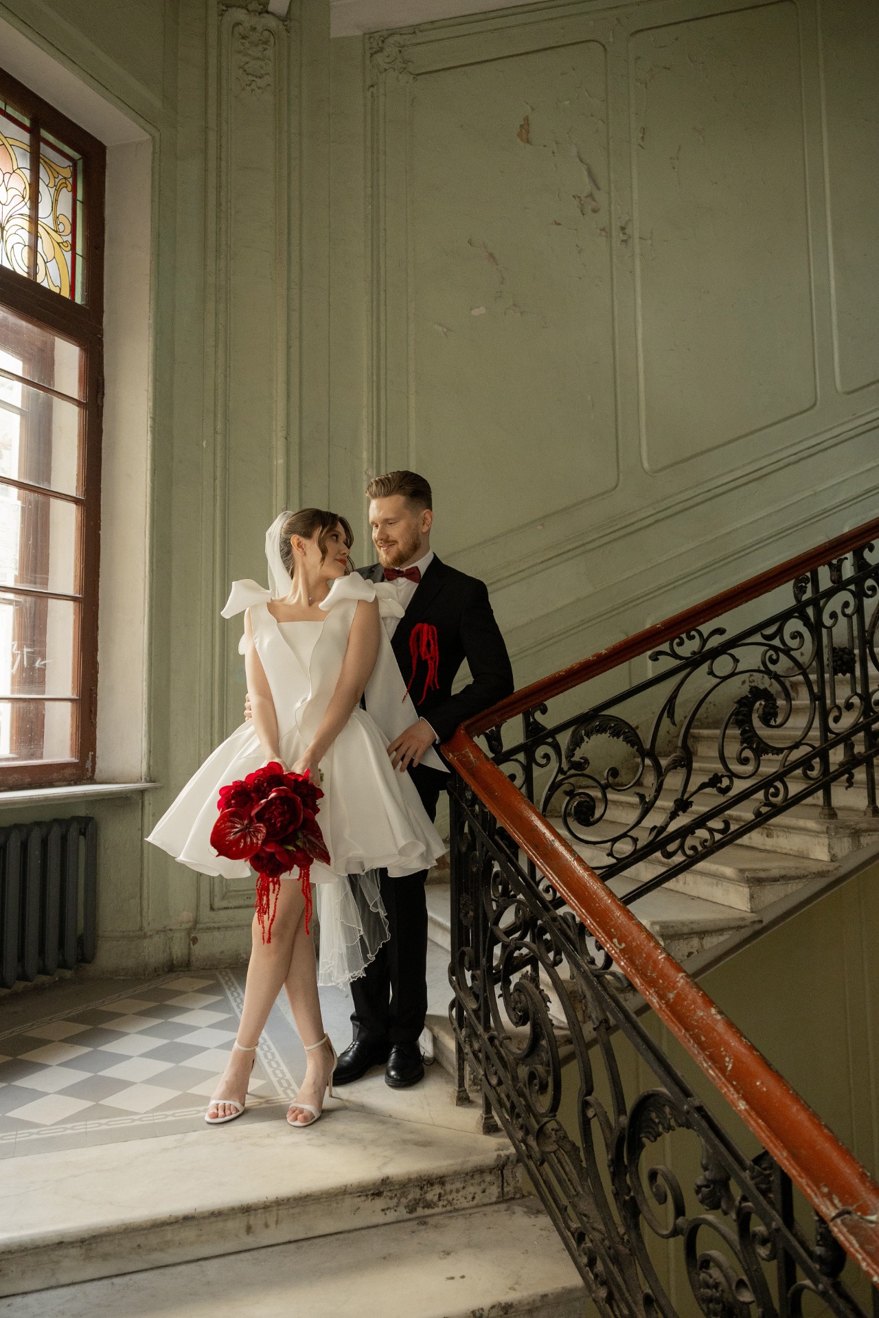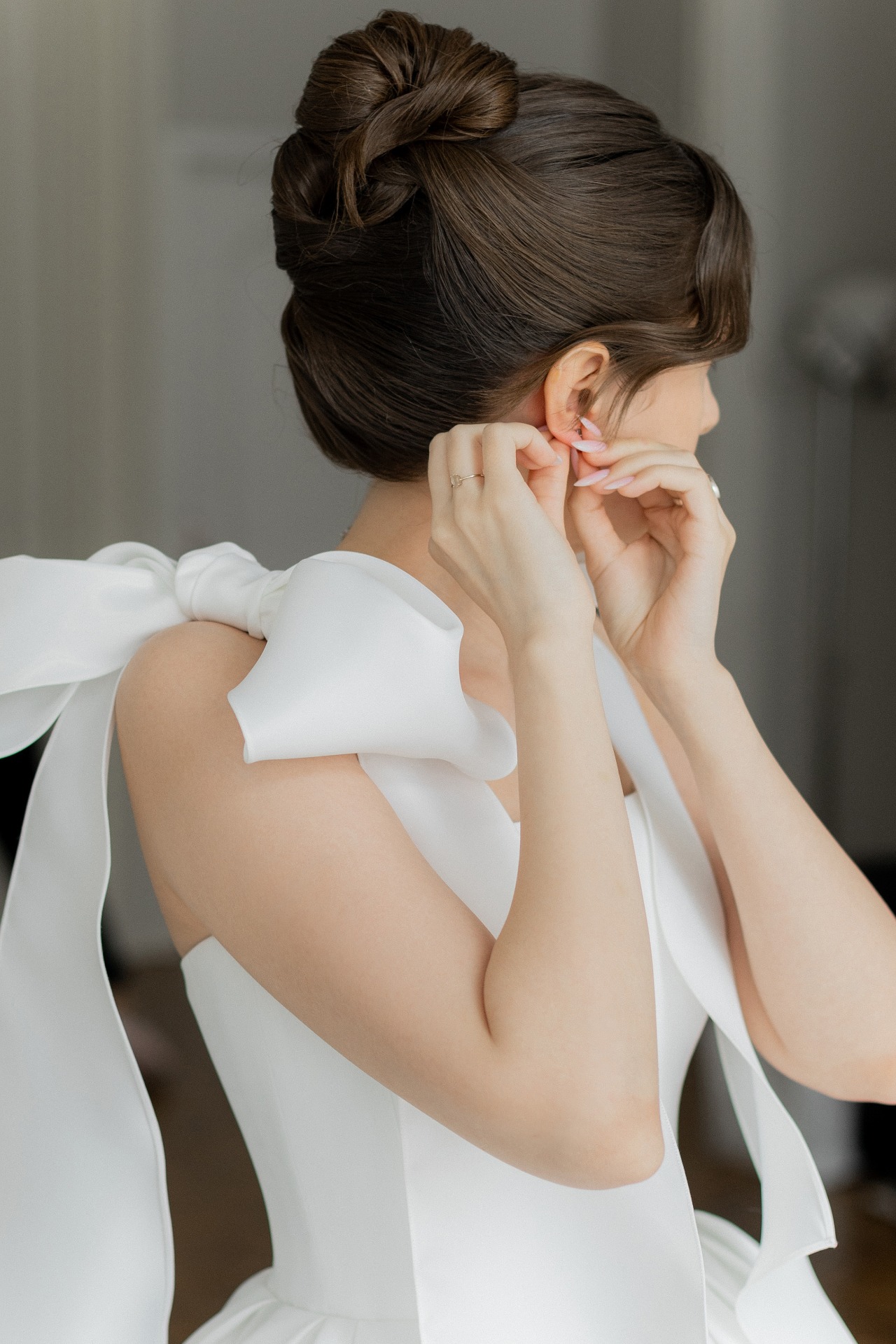 У меня никогда не было чёткой картины своего образа невесты, поэтому я формировала его в течение всей подготовки. Я хотела выглядеть на своей свадьбе естественно и оставаться собой. При этом для меня было важно, чтобы наряд был не только красивым, но и удобным. Я остановила свой выбор на коротком платье, потому что оно отлично отражало меня и мой стиль. Кроме того, я не хотела весь день следить за подолом и носить тяжёлую юбку.