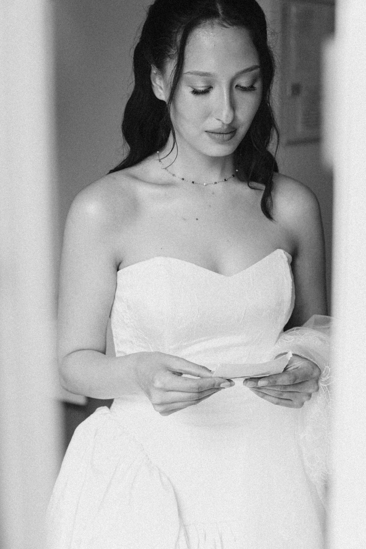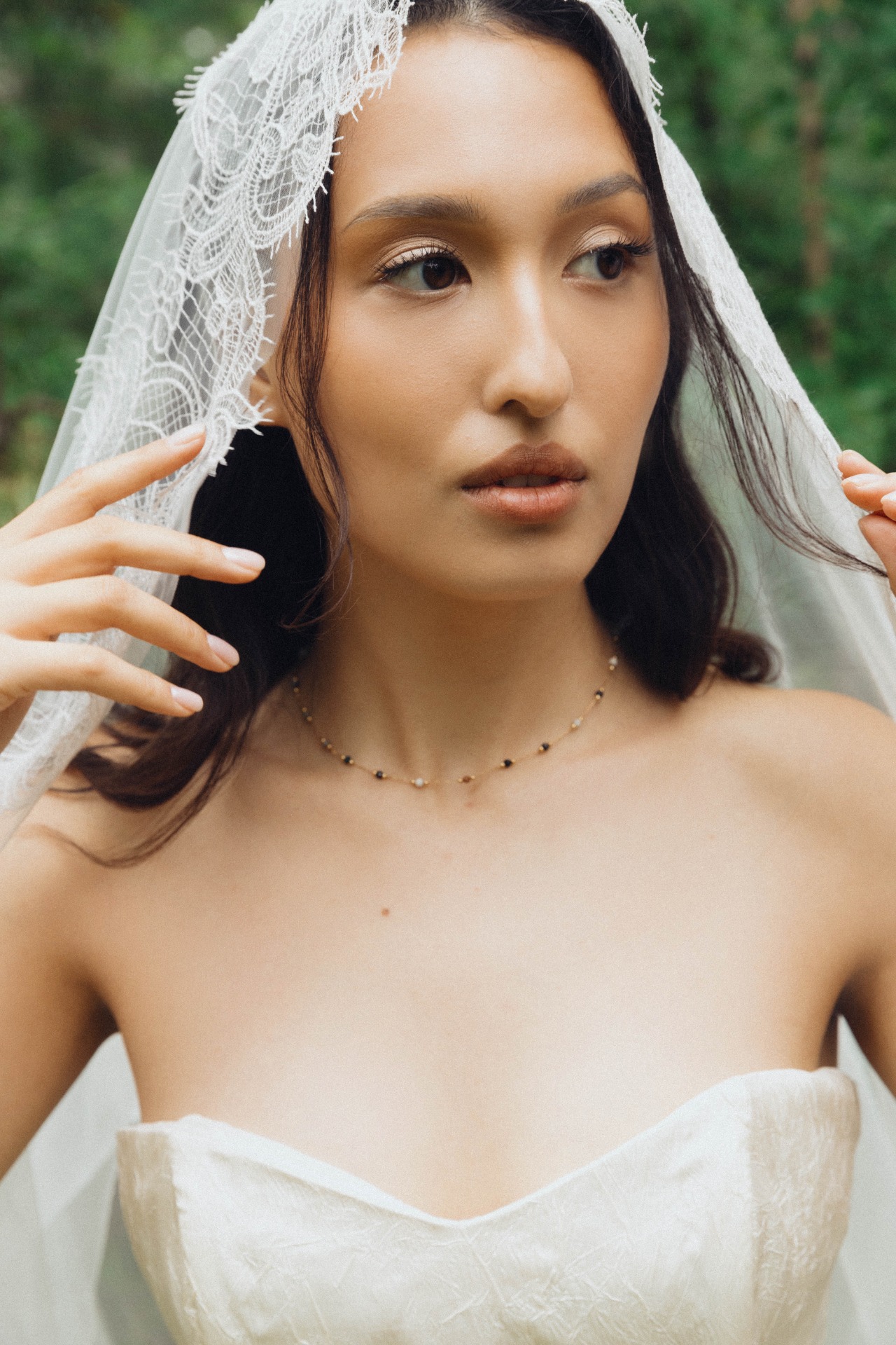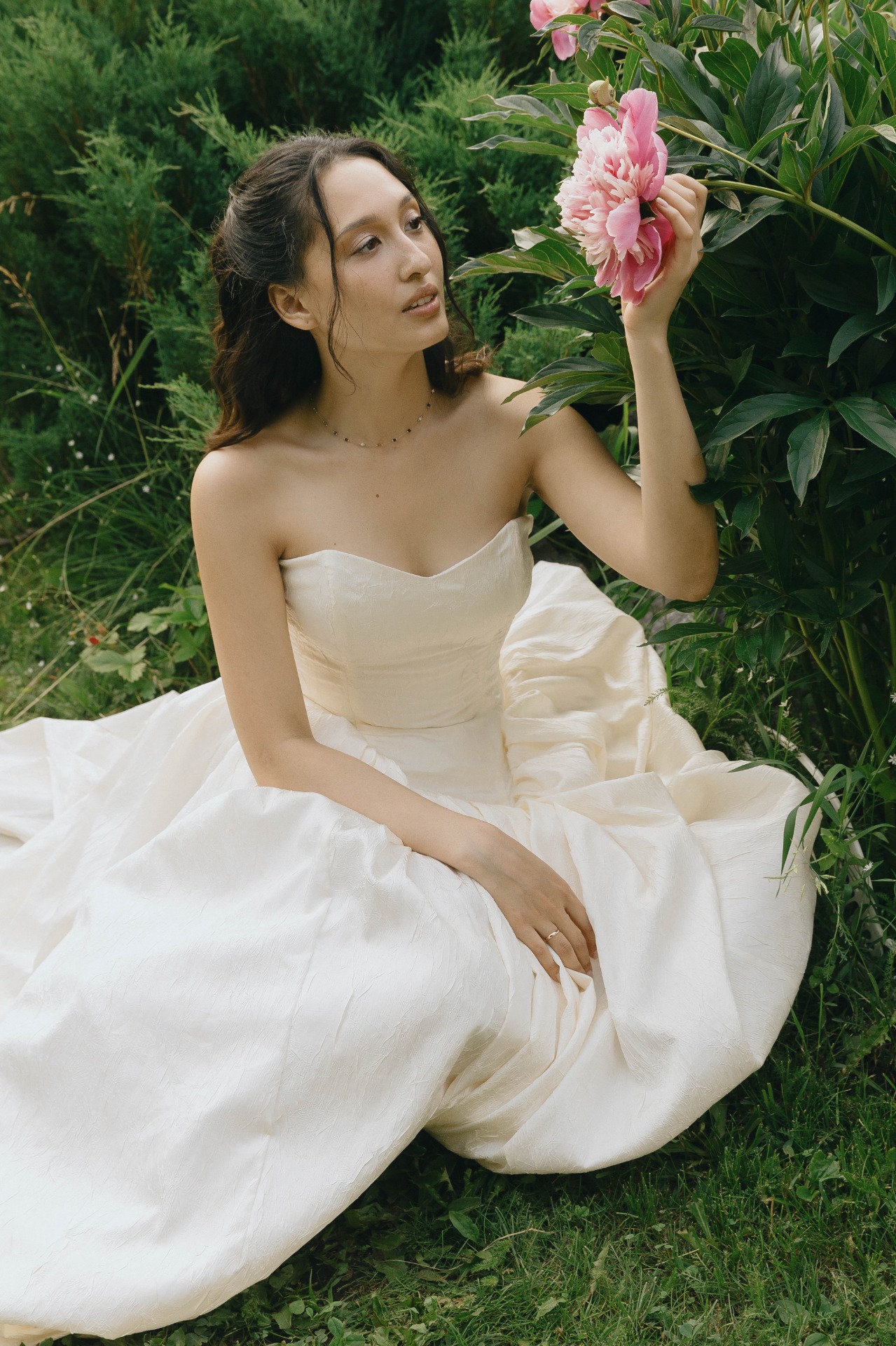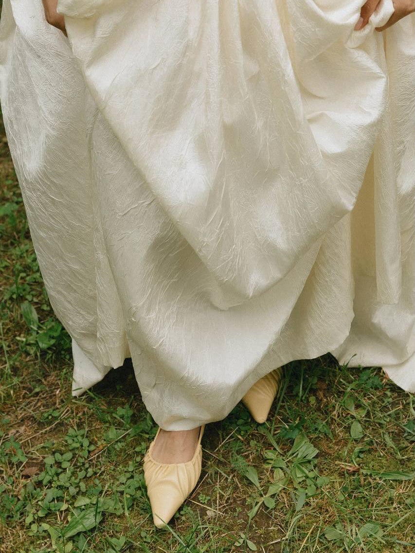 Платье идеально подошло мне по размеру, цвету и фасону, и в нём я чувствовала себя настоящей принцессой! Образ я дополнила кружевной фатой, которой была покрыта моя голова на церемонии, и удобными остроносыми балетками.