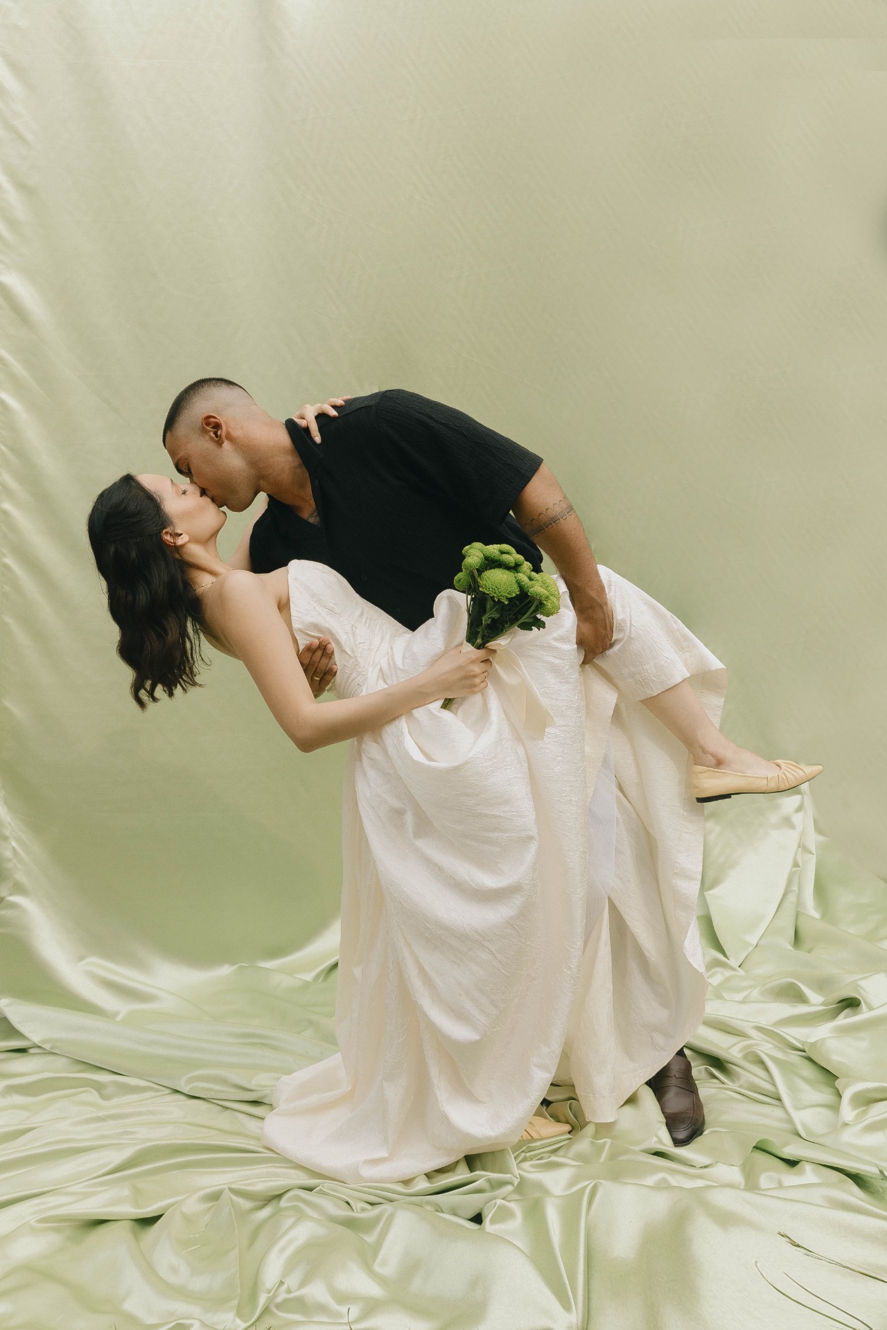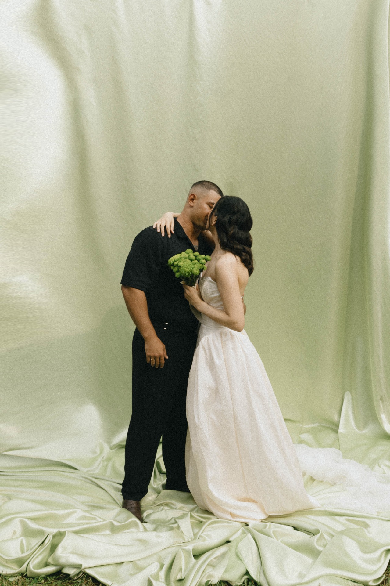 Основным цветом праздника стал зелёный: букет, арка и столы гостей, фуд-декор, полиграфия — всё чудесным образом вписалось в обстановку.