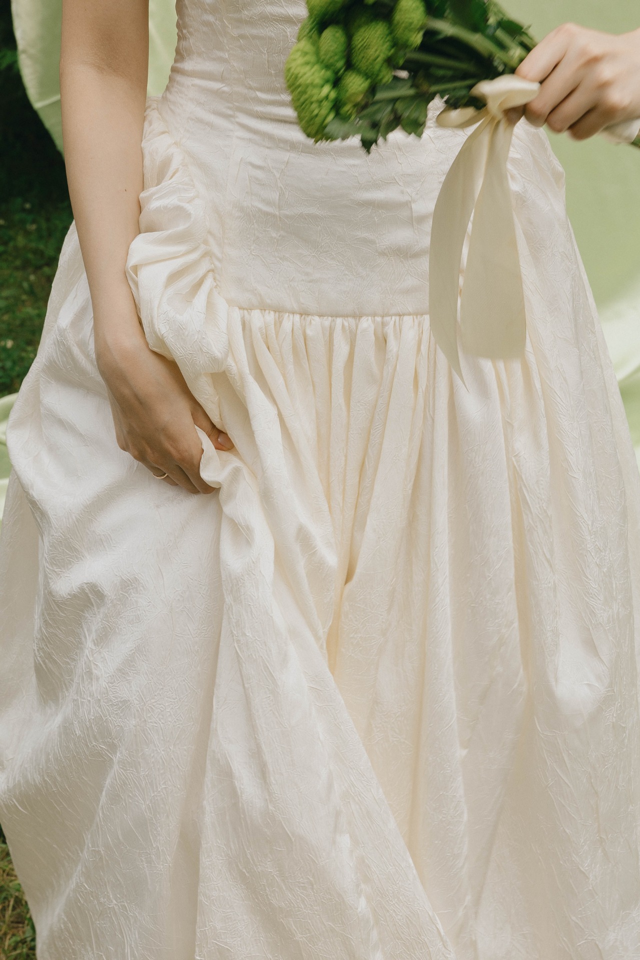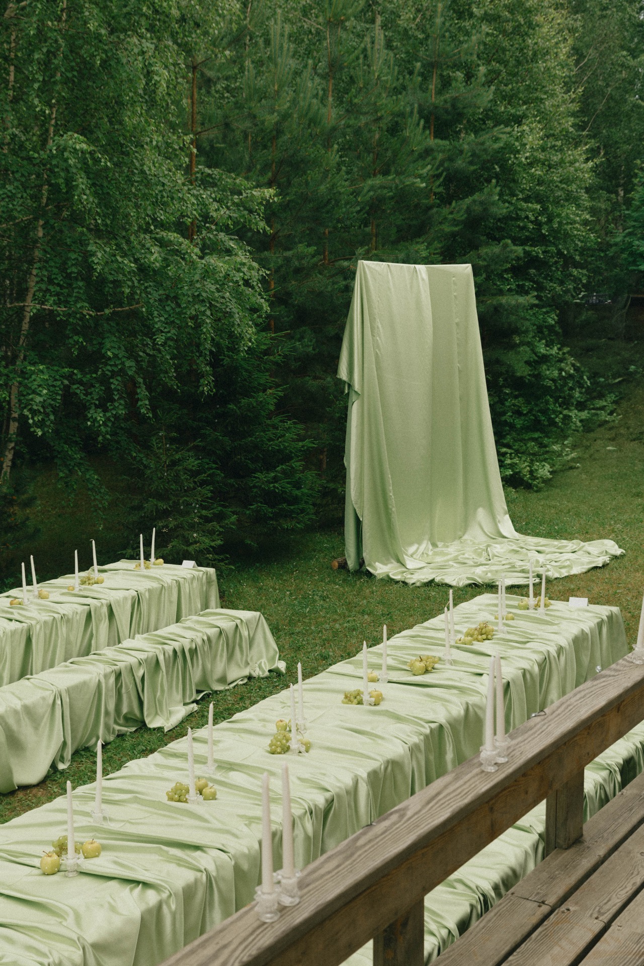 Декором мы занимались вместе с подругами: собирали референсы и составляли списки покупок. Я нашла безумно красивую зелёную ткань и сразу забрала весь рулон — 85 метров! Остальные детали я искала на маркетплейсах и «Авито».