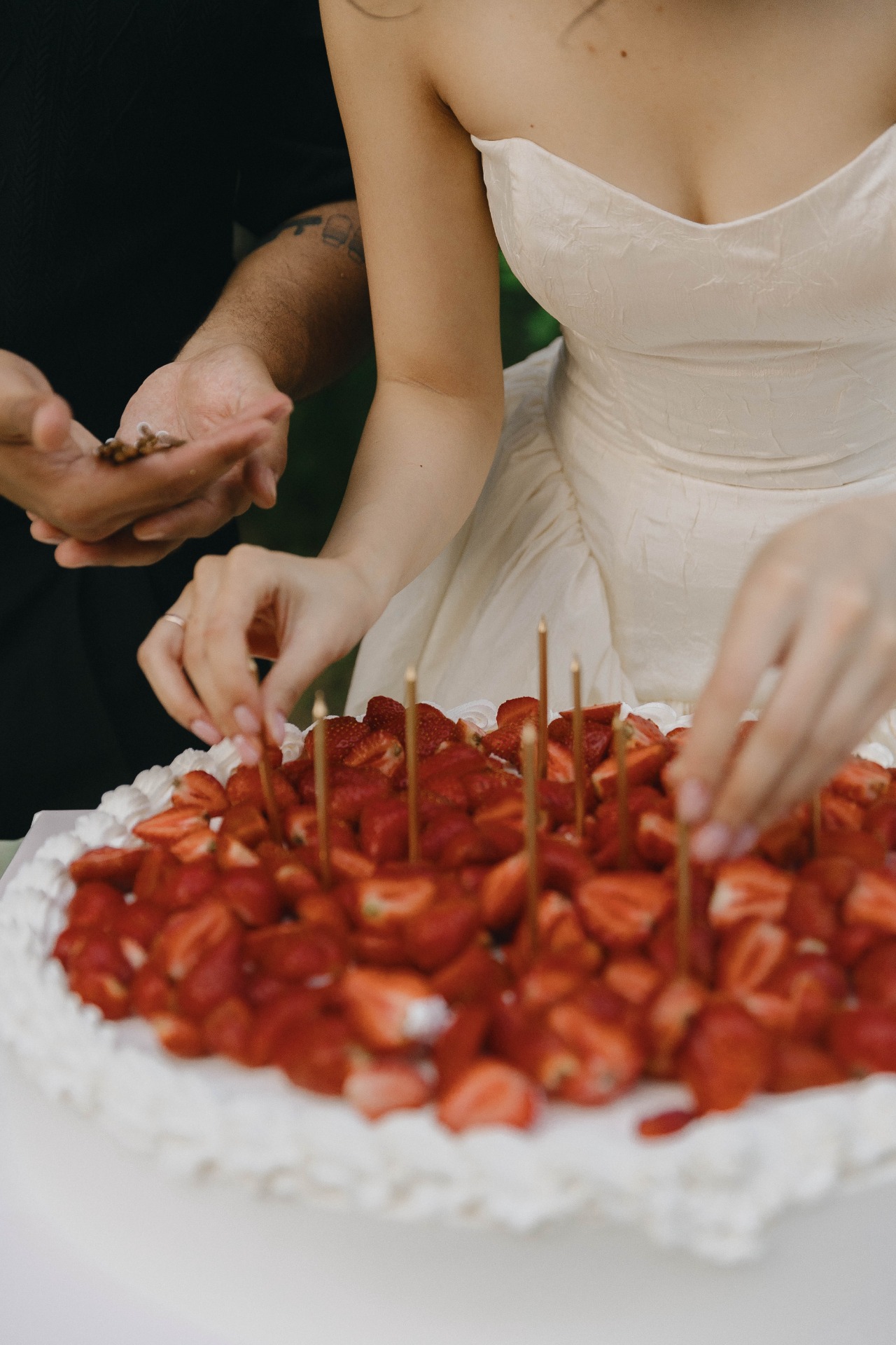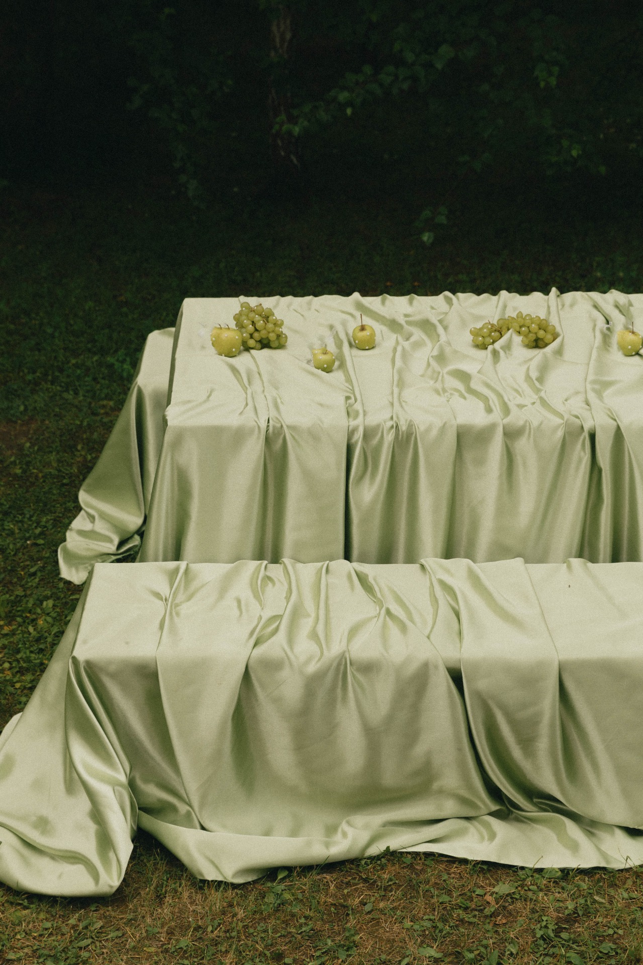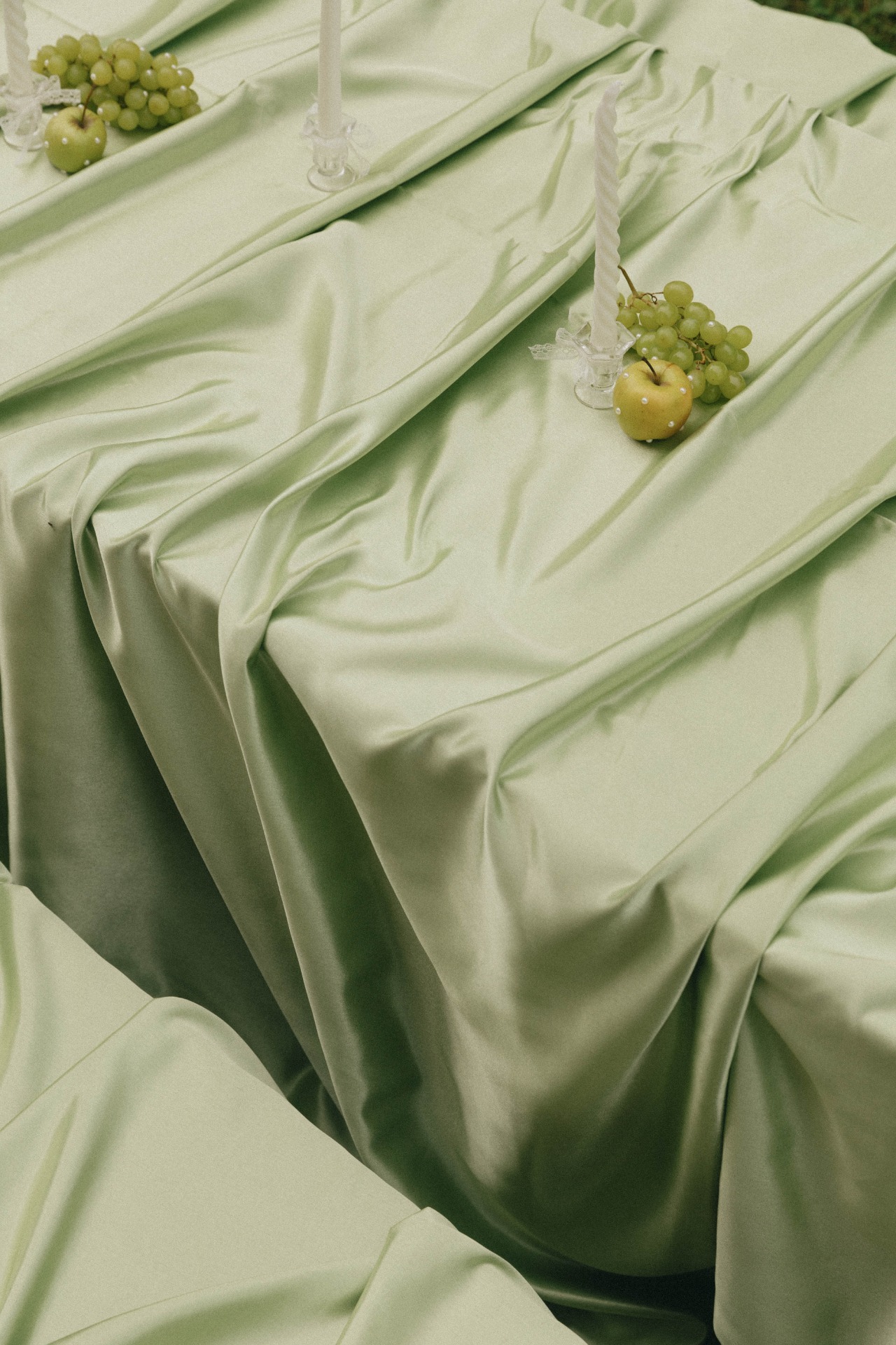 За день до свадьбы мы бегали по рынку в поисках фуд-украшений для столов — винограда и яблок, чтобы потом потратить два часа на обклейку их маленькими жемчужинками.