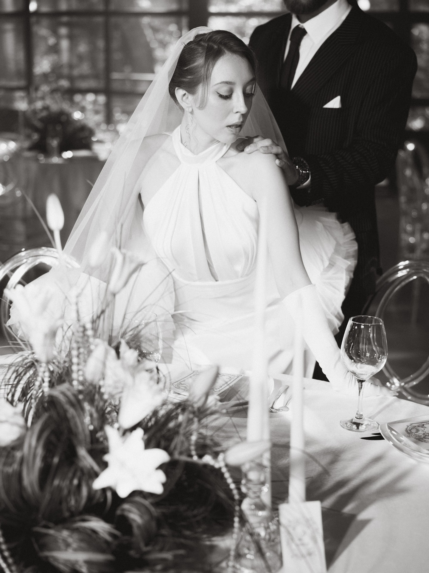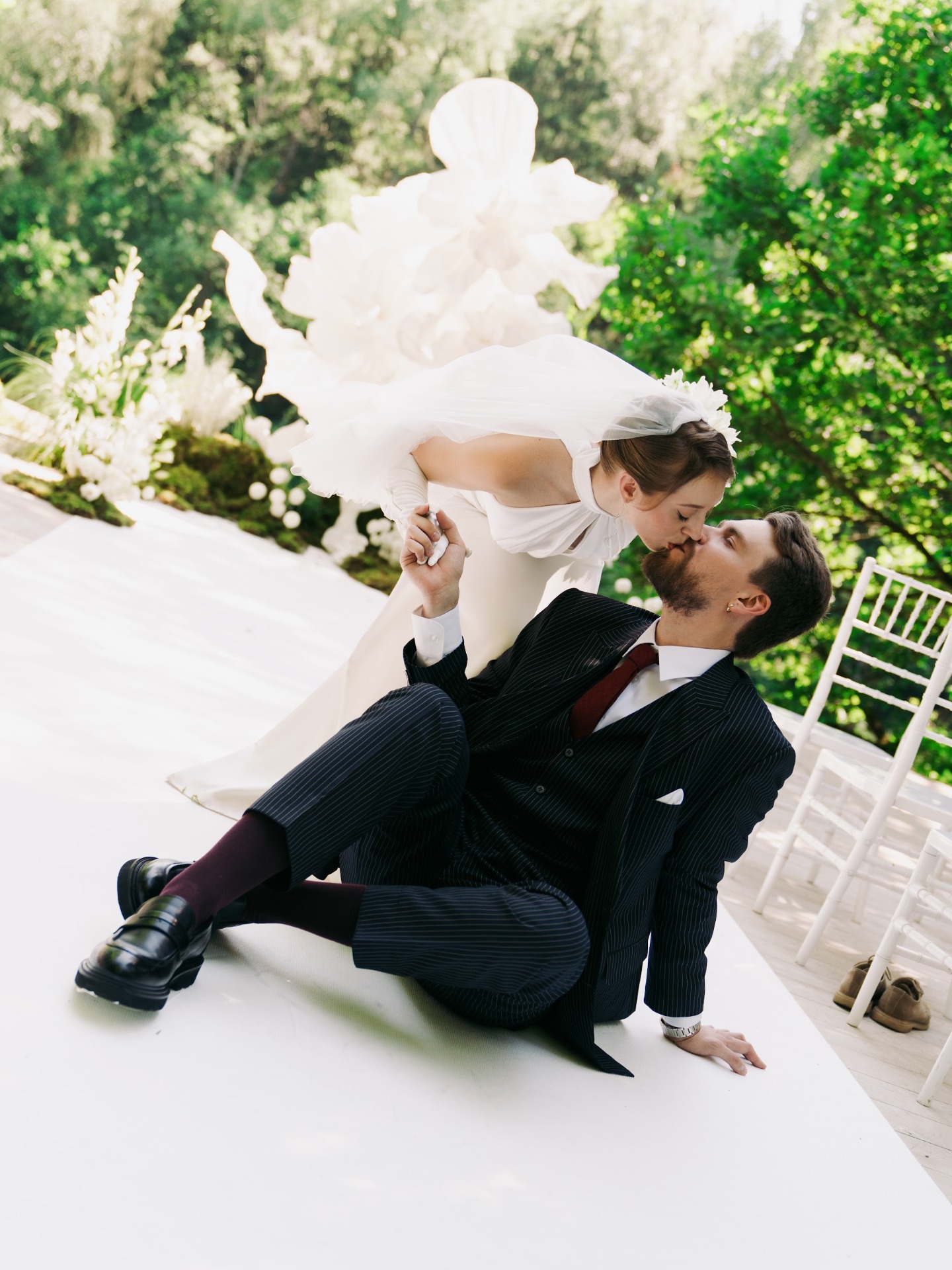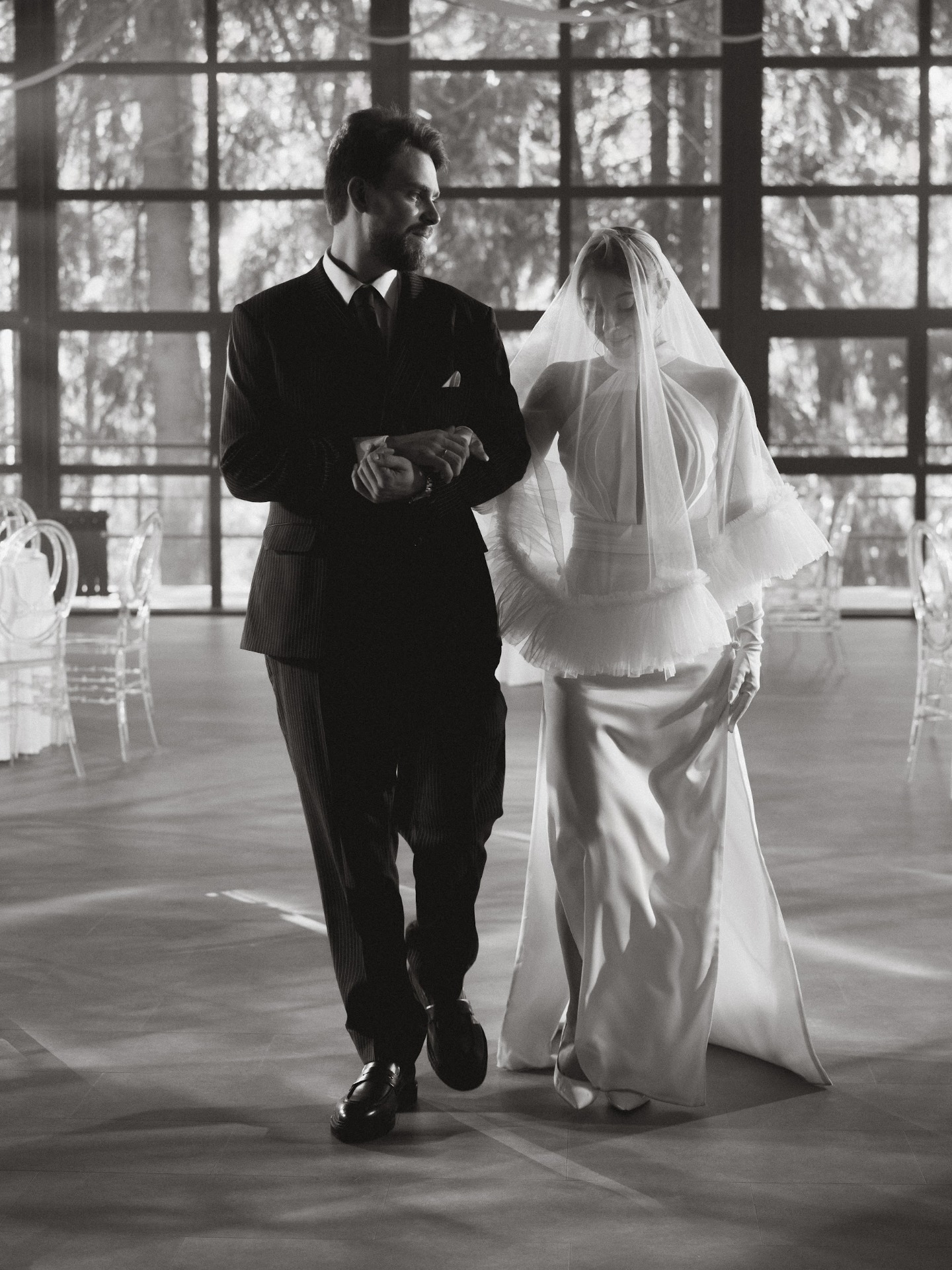 Наши наряды идеально вписались в концепцию, подчеркнув гармонию всего дня. Отдельное спасибо хочу сказать стилисту Алисе Гречкиной за макияж и причёску — они были просто безупречными.